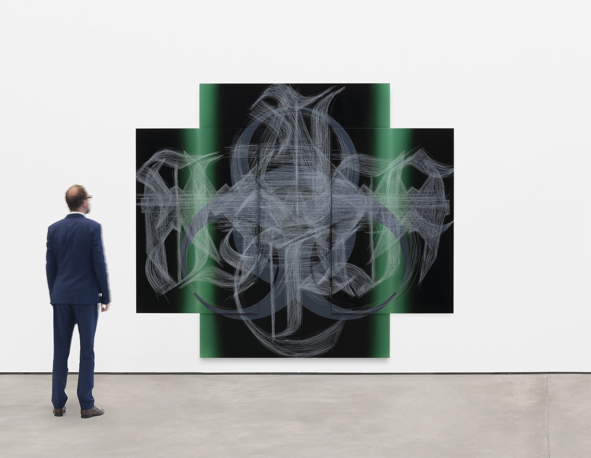 Anne Imhof (*1978) has emerged over the past decade as one of the most acclaimed artists of her generation. Today based between Berlin and New York, Imhof spent her formative years in Frankfurt am Main, where she taught herself to draw and make music while working as a bouncer at a local night club. Before eventually enrolling at the city’s academy of fine arts, Städelschule, she staged what she later designated the first entry to her catalogue raisonné: a one-night only performance in a red light district bar. She invited two boxers to take part and recruited a band. The boxers were told that the fight should last for as long as the music was playing, while the band were instructed to play for as long as the boxers were fighting. Imhof explained: “It was all pretty red—the table dance bar and the noses. Looking back on it I realized that it had been one way to create a picture.”