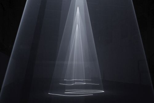 It was only in the late 1990s that McCall returned to such works, his interest piqued by the development of the haze machine, the prevalence of new screen and projection-based practices and the arrival of custom animation software and high luminosity, long-throw digital projectors. These permitted him to create waves, ellipses and other complex curvilinear geometries that, along with titles such as Breath, Meeting you Halfway (2009) and Between You and I (2006), allude further to states of exchange between the multiple linear trajectories of the body-like forms. In both analogue and digital practices, the movements of the viewer’s body are gently encouraged to synchronize with the film’s drifts and undulations, creating harmonic patterns of slow-motion bodily response and a heightened sense of corporeal awareness. McCall’s phenomenological approach to understanding the work also creates a link to the minimalist and post-minimalist sculptors that distanced themselves from the internal dynamics of the art object, instead favoring the immediate perceptual dynamics of the encounter between viewer and sculpture.