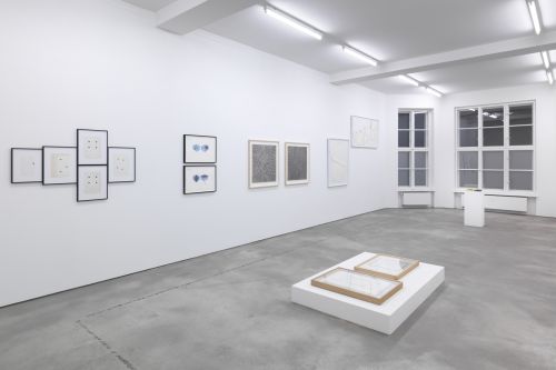 A body of preparatory drawings and maquettes has always accompanied the films, combining the functions of storyboard, mathematical formulae, perspectival drawing and a looser, more generous working out of form. In their function of freezing a work to its core formal elements, either for the artist or a collaborator, they offer both an insight into working processes and a moment of contemplation for McCall’s key concerns of space and time.