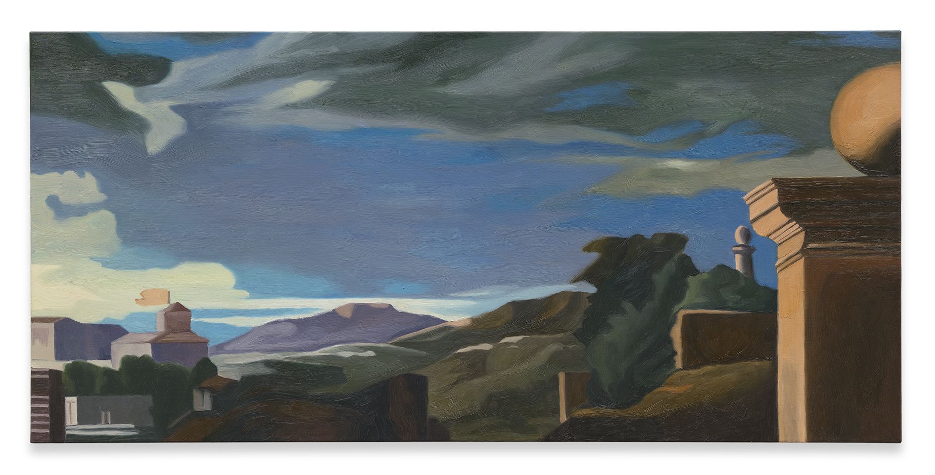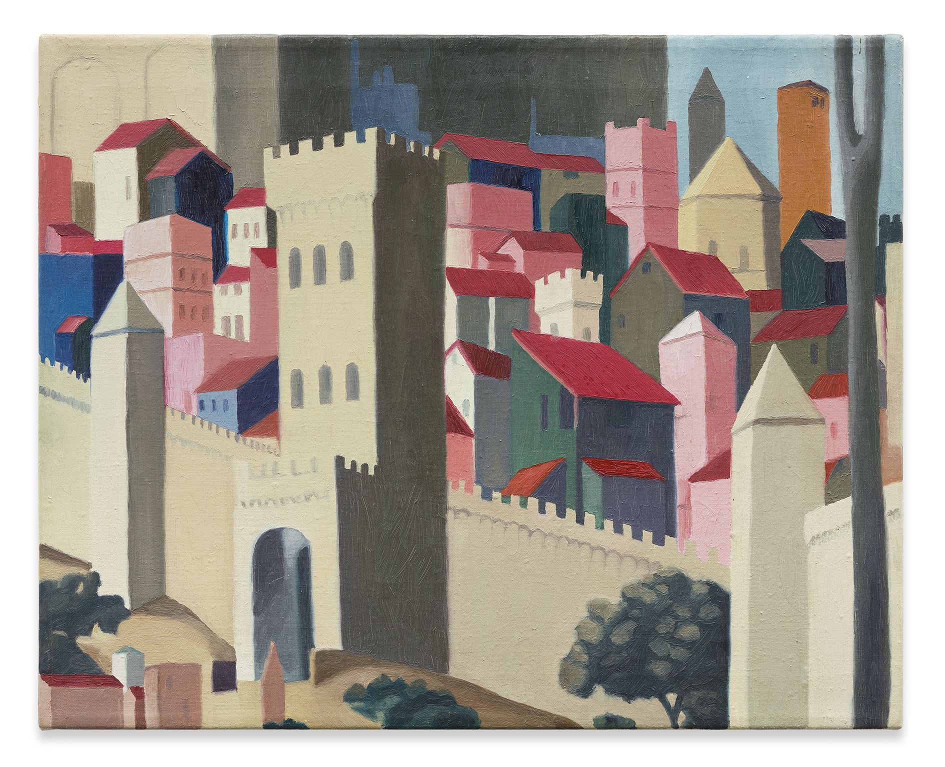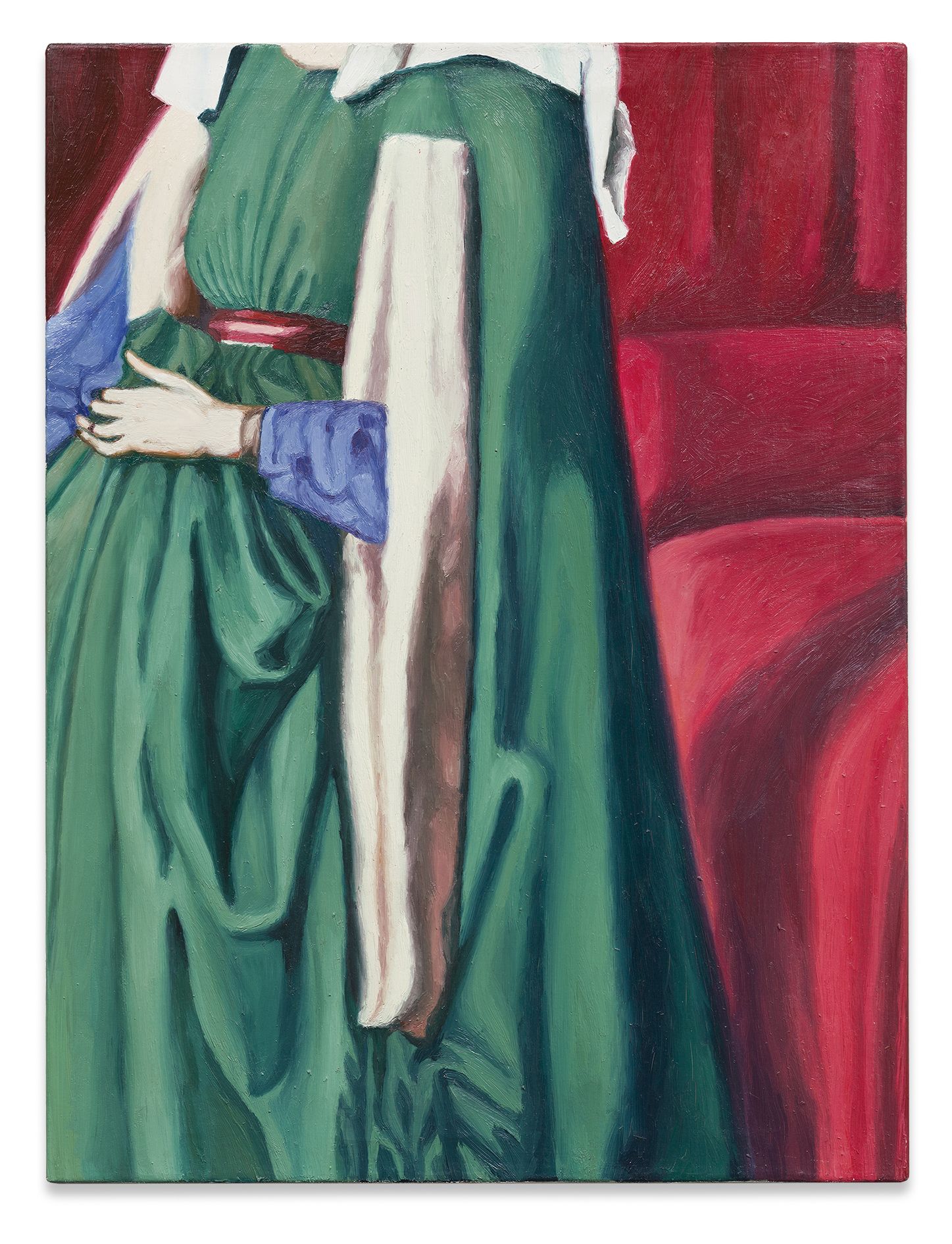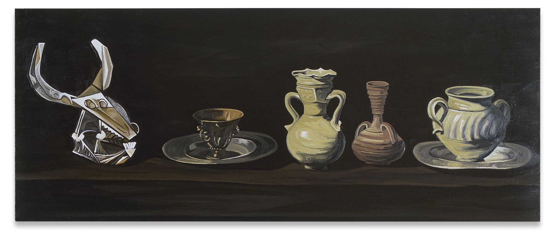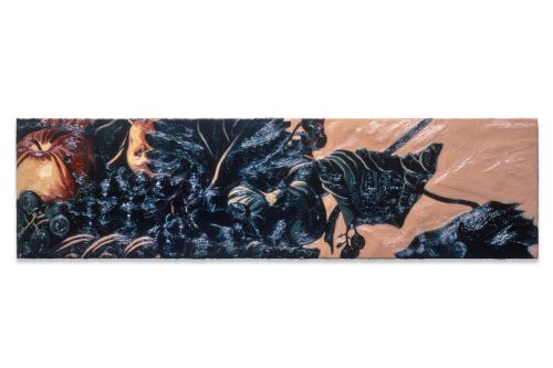 Kasseböhmer’s oeuvre is the result of a lengthy development process with several evolutionary phases. His breakthrough came with a series of enigmatic oil paintings featuring enlarged details from historical paintings, each one elevated to the level of subject matter in itself, playing with proportions and the viewer’s perception. While some details in this body of work are easily attributable (the bull skull in his 1985 Picasso homage Stierschädel, for instance), most draw upon such inconspicuous, easily overlooked elements as architectural details or the drapery of a dress. The quoted works came from a diverse group of painters, among them Fra Angelico, Jan van Eyck, Francisco de Zurburán, or Nicolas Poussin. Kasseböhmer had usually never seen the original works in person; instead he painted from color reproductions in books and exhibition catalogues. Each painting had a distinct aura, and these works testify to an incomparable trust in the persuasive power of historical painting at a time when art history was considered less and less the gold standard for contemporary art.