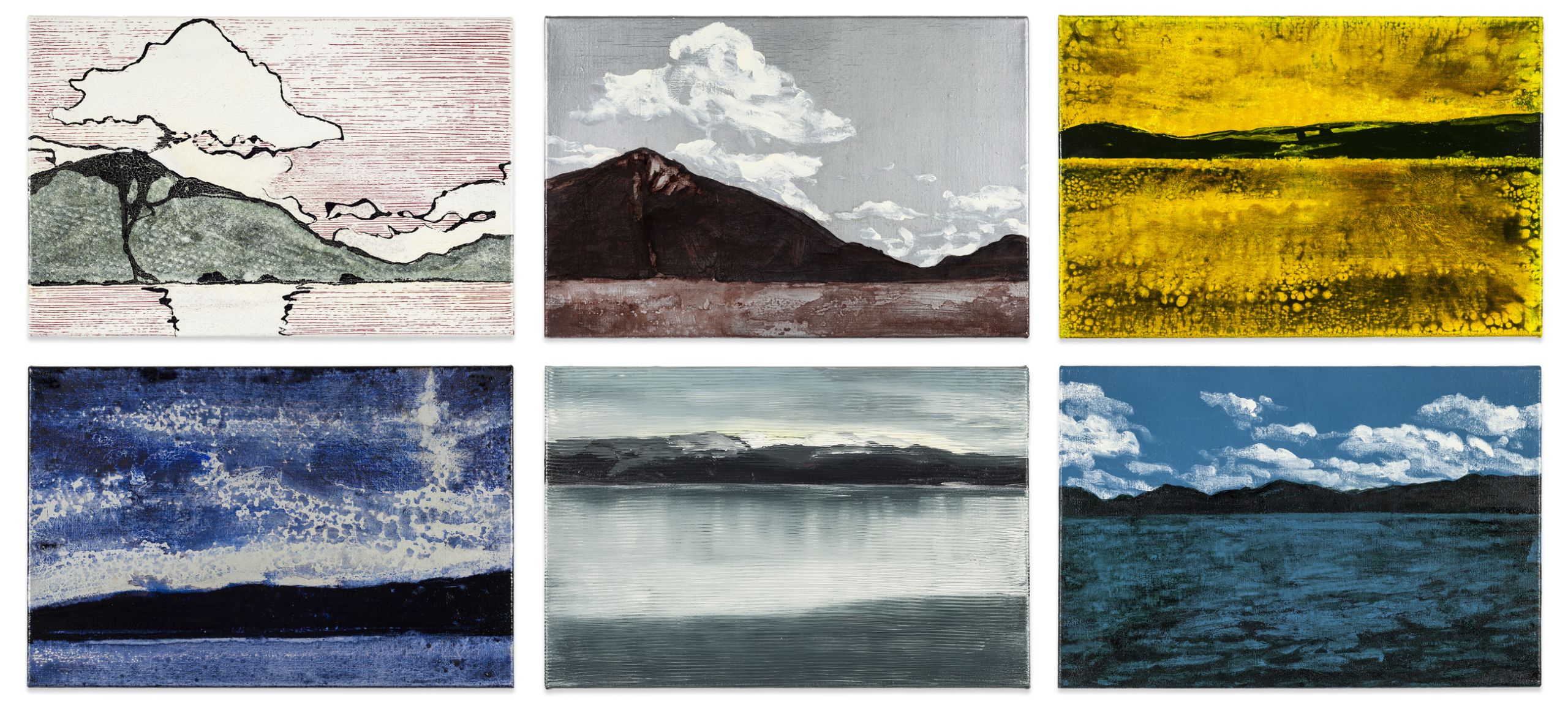 Axel Kasseböhmer painted his last series, his so-called Walchensee (Lake Walchen) paintings, when he was terminally ill. Large- and small-scale variations show his deep engagement with the landscape around the alpine lake where he was convalescing, a place that had inspired many painters before him. With recourse to the religious tradition of meditation images, these works show him appearing to come terms with his own imminent death. Some stylistic elements reflect art-historical codes. They are reminiscent of Corinth, Matisse, or Munch or point to contemporary artists such as Richter, Polke and Lichtenstein. The oil paint on these works is just as frequently applied with experimental scratching, combing or dabbing as it is with traditional brushwork. The result is a panorama that playfully captures the landscape around Lake Walchen, but also the history of landscape painting and its notion of a “landscape of the soul.” Every painting in this series enters the world with its own unique materiality and presence and shows something that only painting can show. They are works that see in painting, with its centuries-old traditions and characteristics, both a lifeline and a model for hope.