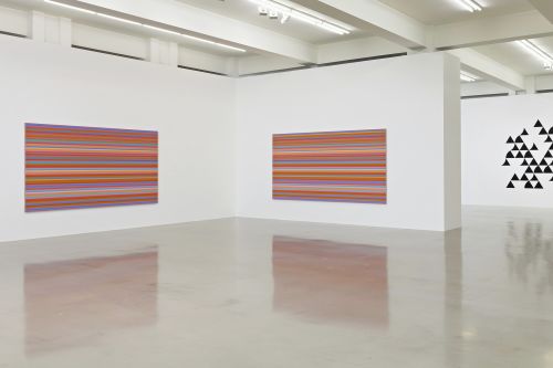 Bridget Riley has often referred to the many influences that have inspired her work, including the philosophy of Maurice Merleau-Ponty, the music theory of Igor Stravinsky, as well as Samuel Beckett’s literature. Her work also draws on a variety of visual languages and systematically explores the historical evolution of pictorial space. In the latter context, the painter has often pointed to the work of Georges Seurat, but also to that of Paul Klee and the Italian Futurists, Paleolithic cave paintings in Lascaux and the murals in Egyptian tombs. Riley’s work absorbs the history of painting in order to understand its languages and abstract it for the present. Her paintings burst with life, offering a sustained resistance to more comfortable modes of perception and thinking. Her pictures trigger and shape a way of looking that is at once attentive, exploratory, empathic, and open—to both visual sensations and energies that transcend the visible.