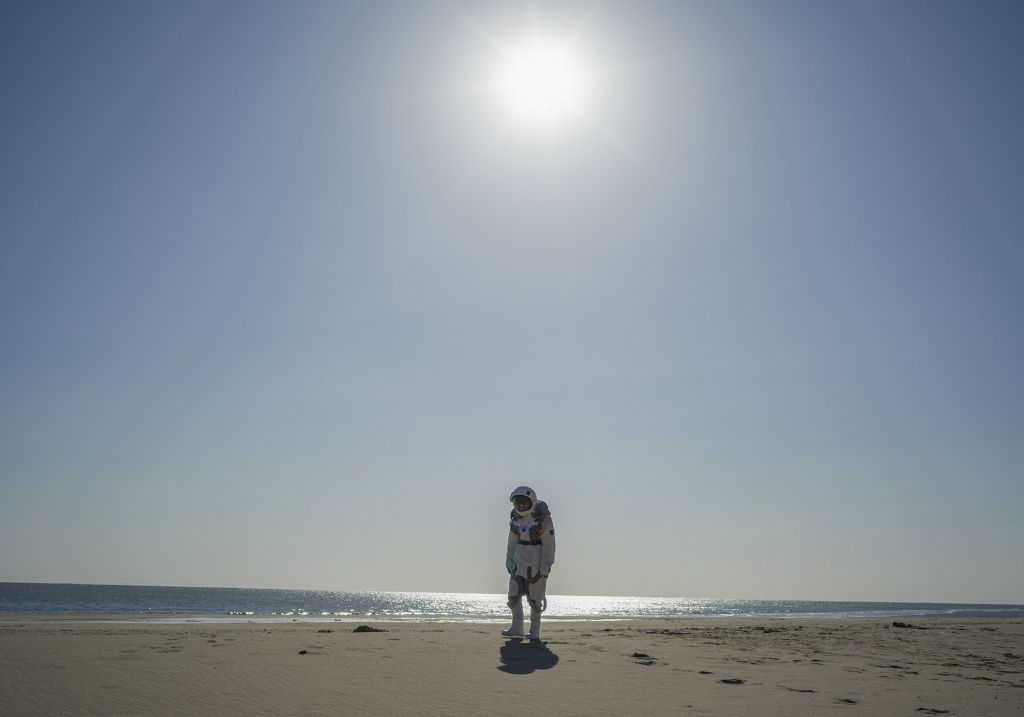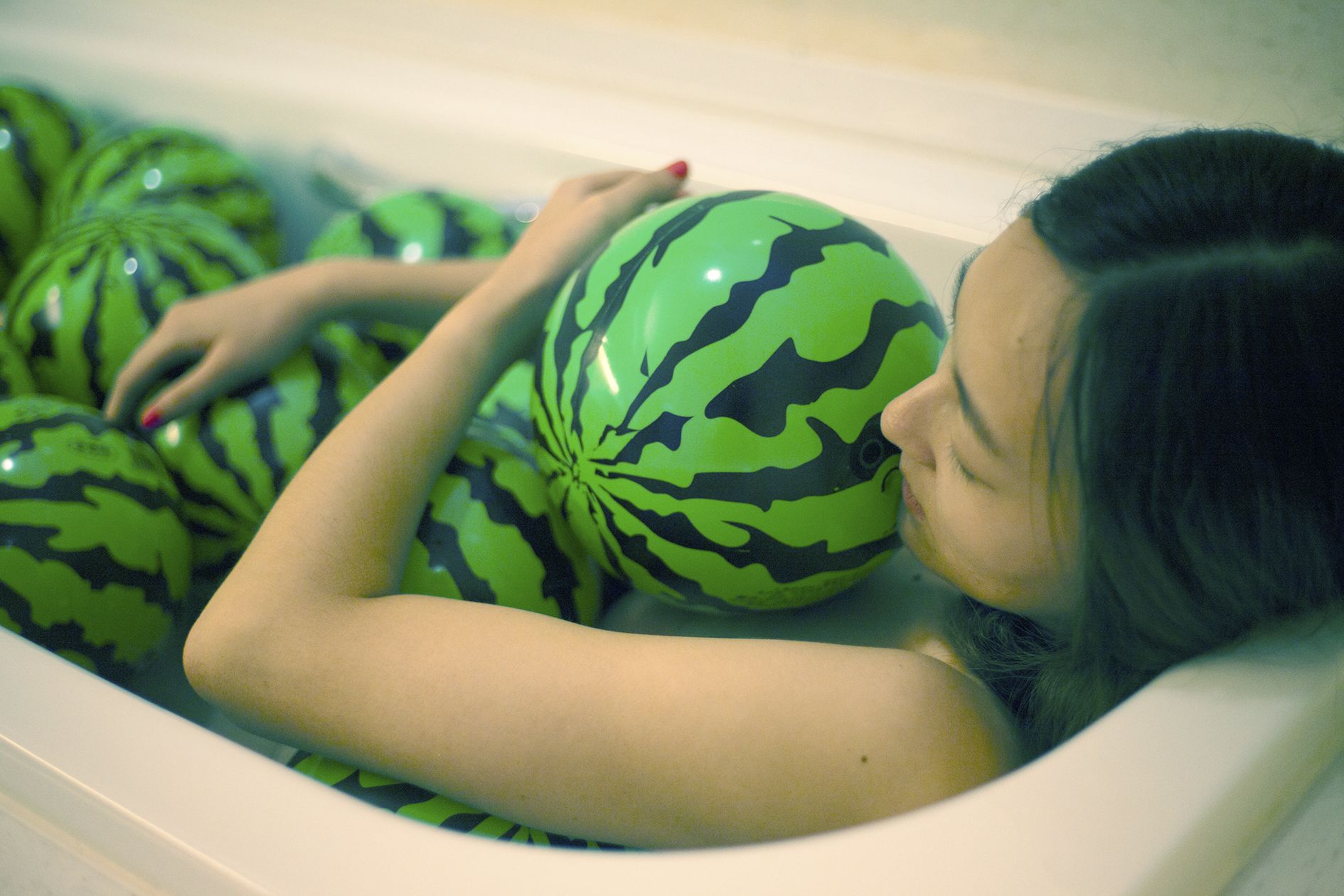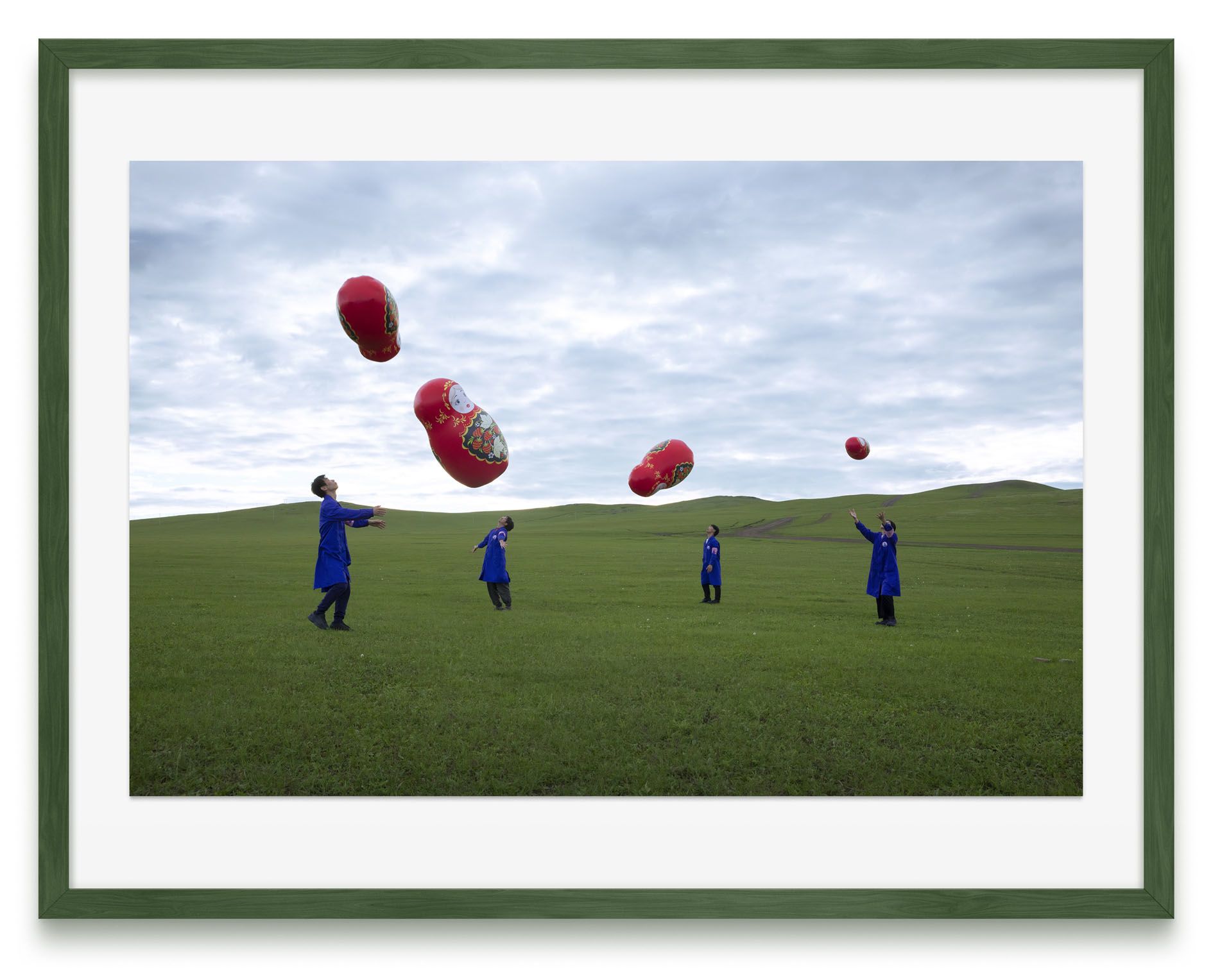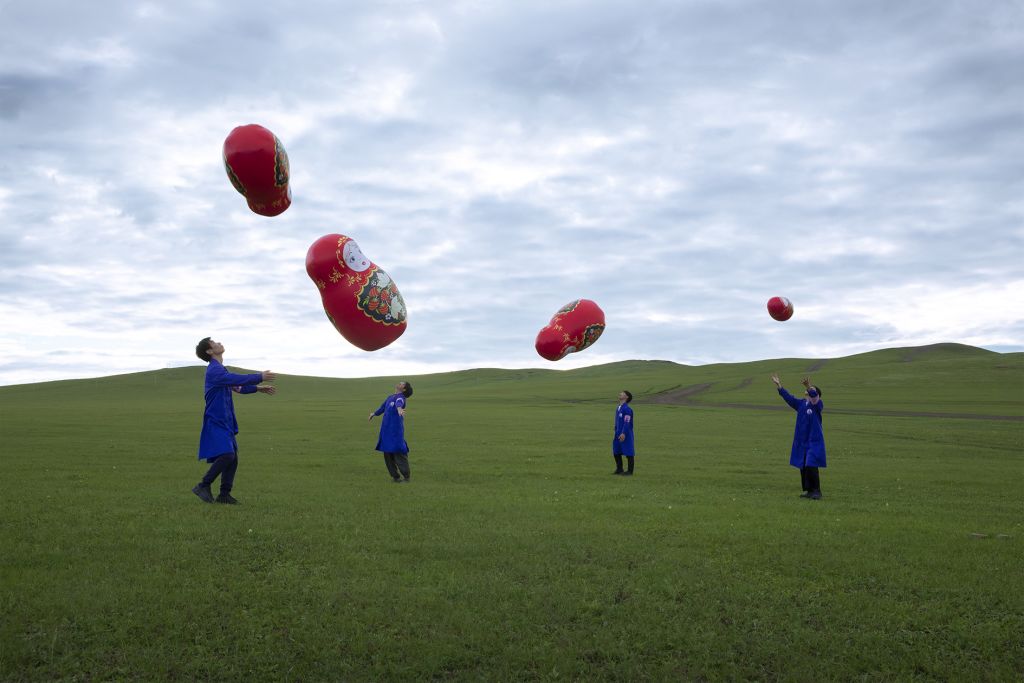 The idea of the post-apocalyptic is even more prominent in the artist’s recent works, whether in feature film-like videos such as Haze and Fog (2013) and Asia One (2018) or the stop-motion film La Town (2014). In the miniature dioramas of La Town, Cao ironically sketches the disaster scenario of a collapsing civilization. The film’s soundtrack consists in dialogue, written by Marguerite Duras, from the film Hiroshima, mon amour (1959). Both of her two fictional feature films allude to the figure of the post-apocalypse in a more oblique way. Asia One is about the last two people in a gigantic logistics center in Shanghai. The center’s automated distribution is operated entirely by robots and artificial intelligence who increasingly view the two protagonists as a nuisance. Haze and Fog, an elegant black comedy, is set in a wealthy district of Beijing where inhabitants perform everyday tasks that keep tipping over into the surreal. They dance in the supermarket, do yoga on a ping-pong table, play golf in their apartments or lie down in a bathtub filled with rubber balls made to look like watermelons. They are so immersed in their activities that they fail to notice how their lives are being thwarted by a growing group of zombies.
