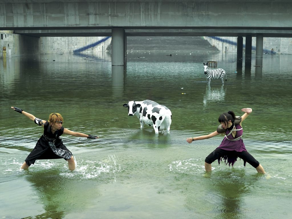 Cao’s earlier works observe with great accuracy and empathy the longings, ambitions and desires that people often live out online today, and the consequences this has for their self-image. Video and photographs in her Cosplayers (2004) series, for instance, show teenagers dressed in the colorful costumes of Japanese manga warriors. They roam urban and suburban landscapes during the day, only to spend their evenings in the cramped confines of their families’ small apartments. They are the protagonists of China’s first youth subculture mediated by the Internet, and their daydream-like role-playing seems an understandable reaction to the unforeseeable upheavals of the society in which they live.