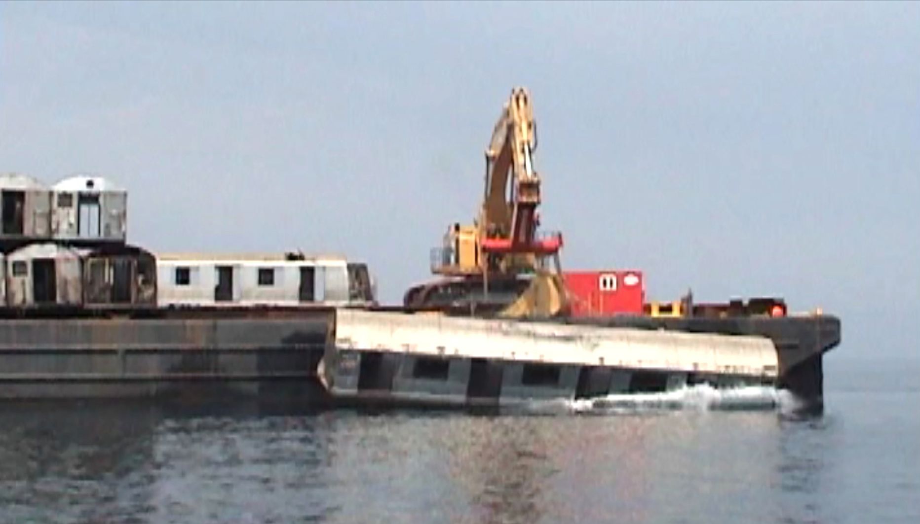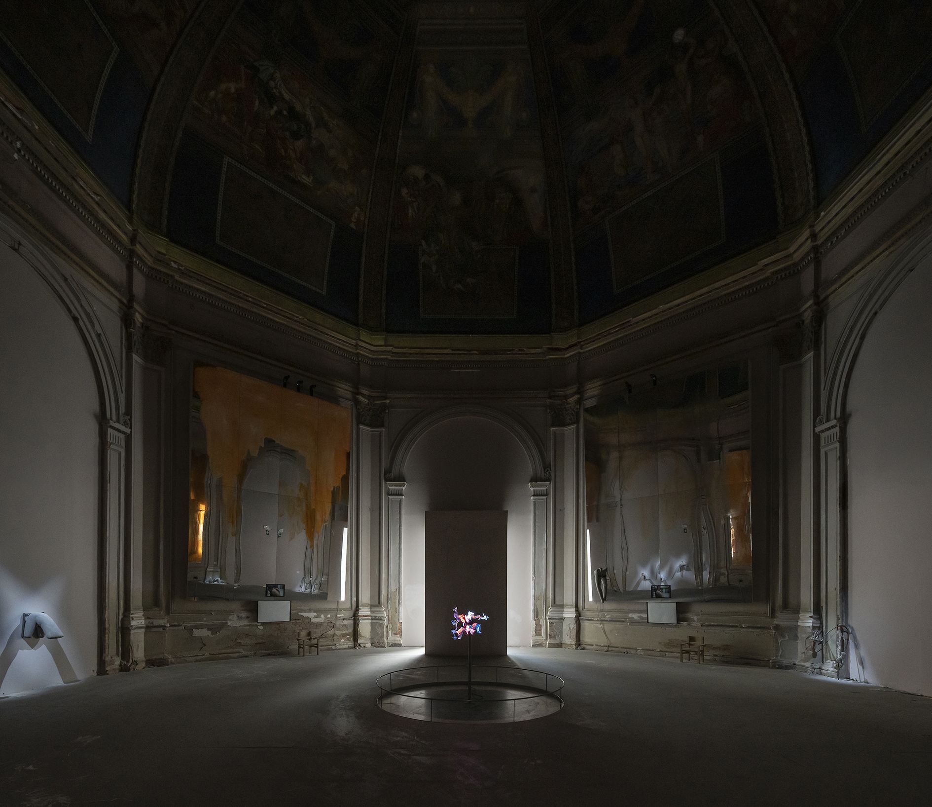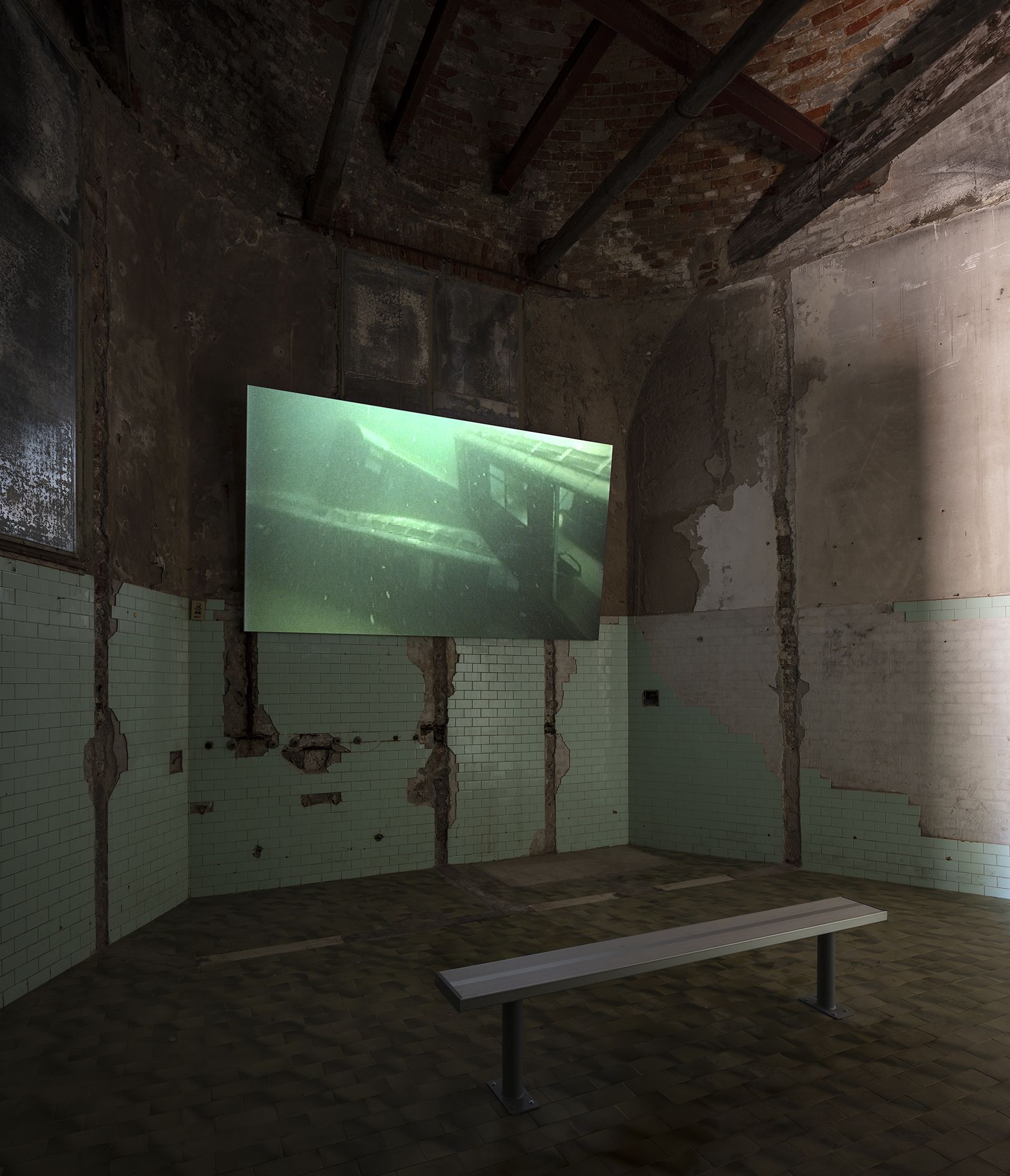 Cyprien Gaillard’s first solo exhibition in Hungary invites viewers beneath the surface where materials and sensibilities collide, whether it is the concrete bottom of a drained artificial lake in suburban Paris, the depths of the Atlantic Ocean, or Soviet metro stations buried underground. Gaillard juxtaposes different temporalities and geographies, blending built and natural environments, submerged histories, and everyday life. His work embraces the beauty of gradual and inevitable decay, revealing how fragments of the past shape our understanding of the present. The exhibition reflects rhythms of contrasting materialities and times, fusing fossil fuels with fossils of both past and future. Through this, Gaillard explores a world where the living and once-living intersect in haunting ways. The rhythm of slow erosion and sudden collapse oscillates throughout the exhibition, resonating with a sense of both resignation and violence. As Gaillard quotes Vladimir Nabokov: “The future is but the obsolete in reverse,” suggesting time’s layered complexity.