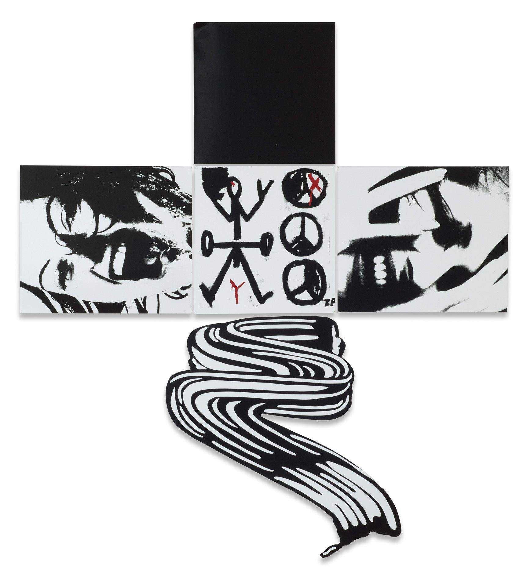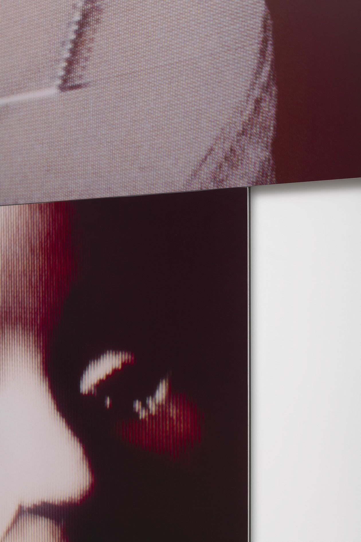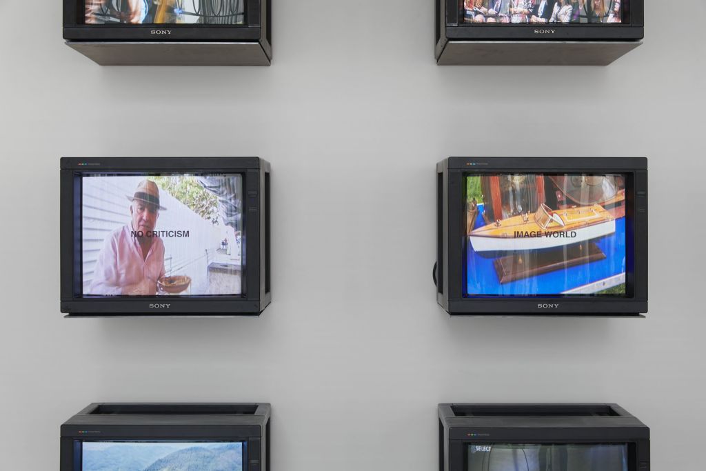 Bender emerged in the early ’80s in New York, primed to participate in the artists of the Pictures Generation’s use of appropriation with her experience at a feminist and Marxist screen-printing collective in Washington DC, where printmaking could provide a quick way to circulate important ideas and ideologies. For her, it was not enough to be able to only re-contextualize images; they also had to be hyper-current and immediately relevant so as to subvert the culture as it was developing. The Pleasure is Back works, a series of wall-based works comprised of silkscreens printed on tin juxtaposing works by her artistic peers, often men, with imagery taken from current advertising campaigns. This strategy of appropriation aligned her with artists of the Pictures Generation, such as Robert Longo, Cindy Sherman, Louise Lawler, Sherrie Levine, Barbara Kruger and Richard Prince. Her eventual emphasis on video and television as source material, and her embrace of spaces beyond galleries and institutions, set her apart from her peers.