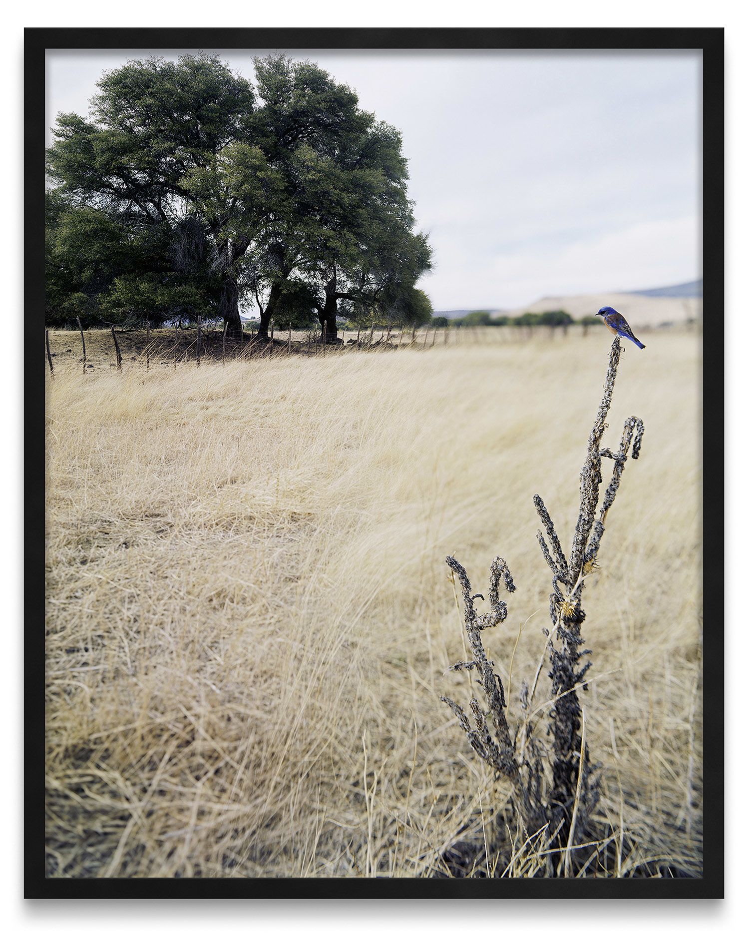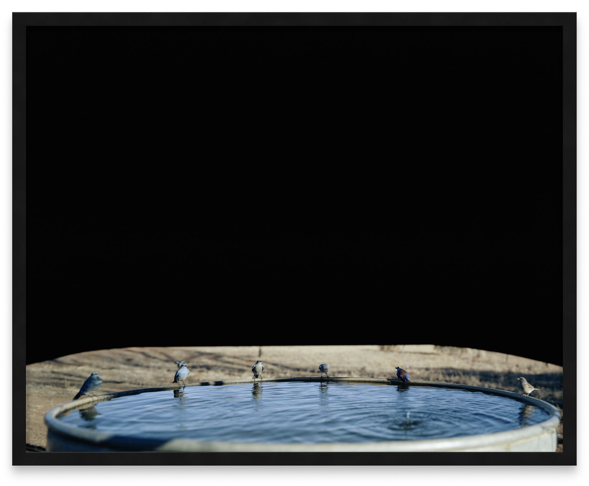 In 1978, Mylayne decided to devote his life to ornithological and photographic exploration. The decision came with a resolve to live a lifestyle guided by the rhythms of nature. His works are the result of a lengthy, contemplative study of often inconspicuous migratory and songbirds—Eurasian wrens, goldfinches or mountain bluebirds, for example—and their habitats in France, Texas and New Mexico. Equipped with a Hasselblad medium format and a Sinar view camera, he and his partner spend weeks and months exposing themselves to the natural environment of the animals and establishing a relationship that does not involve feeding or taming them. This process can sometimes take up to a year. The artists take great care in preparing for the moment décisif—the point at which the birds have become accustomed to the presence of human being, camera, tripod, flash and photographic equipment and, like actors, finally take their place in an envisaged motif. This scrupulous approach is also reflected in the titles of the photographs, which are numbered chronologically. Rather than naming the place where the image was taken or the species of bird shown, they only provide information about the year and time span of their creation.