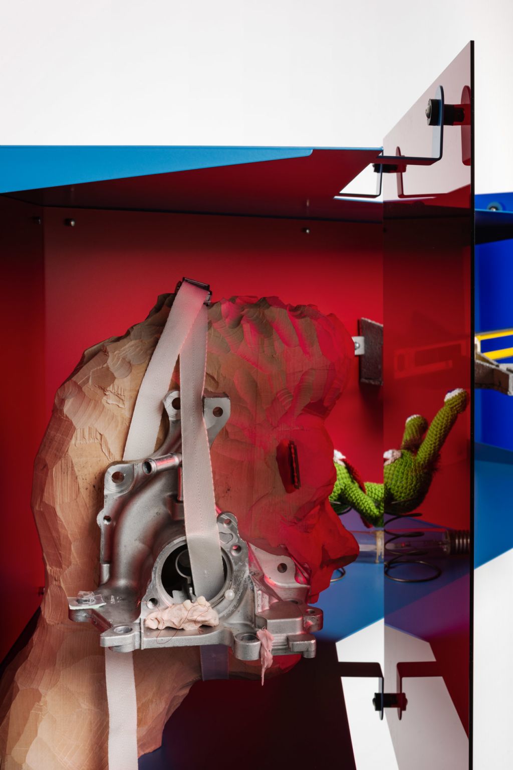 John Bock’s work clearly distances itself from the pathos of Viennese Actionism and its ideology of physical and sexual liberation. It also diverges from the explicit video works of Paul McCarthy, Tony Oursler and Mike Kelley, with whom the artist is often compared. Perhaps the biggest influence on Bock’s artistic universe can be found in Antonin Artaud’s notion of the absurd Theatre of Cruelty as a subversive counter-model to reality. Bock’s contemporary take on existentialist Dadaism defies the efficiency-loving and alignment-requiring neoliberal present with an absurd and glorious breach of boundaries and taboos. He counters the omnipresent disciplining of body and psyche with a radical staging of physicality and unrestraint. His oeuvre consistently exposes the anarchic chaos that we collectively repress.