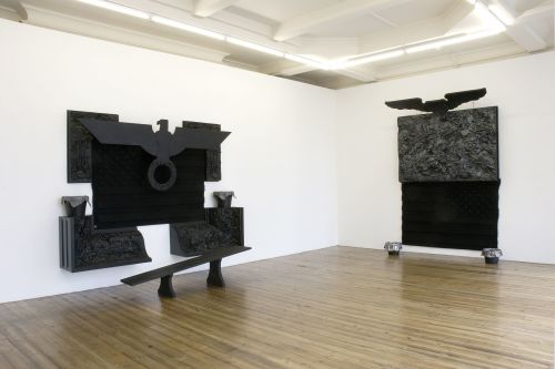 The 1970s, 1980s and 1990s saw a further, often unexpected expansion of the artist’s practice: Morris experimented with a range of media including photography and film, created such provocative collages as Voice (1974), earthworks including The Observatory (1977), the drawings in his Firestorm series (1982) among others, along with wall reliefs like The Martyr (1986) employing such materials as lead, acrylic, and fiberglass. This also marked the first time he explicitly addressed such social and political topics as the growing technologization of everyday life, the nuclear threat, and later US-led wars in the Persian Gulf region.