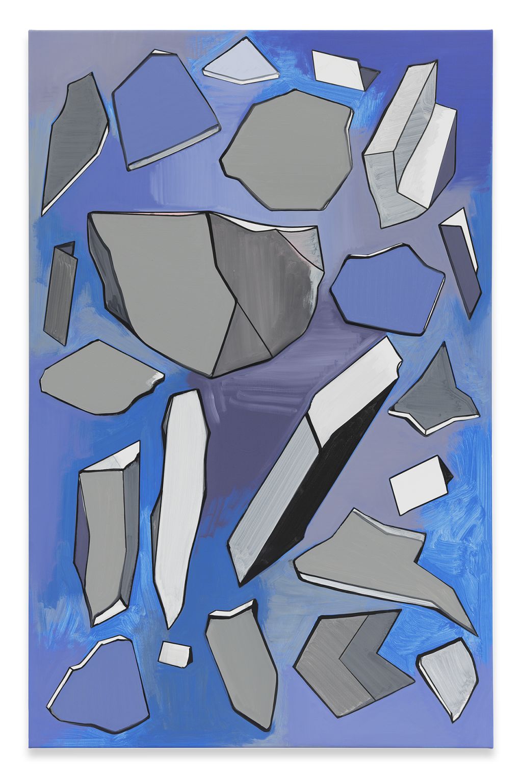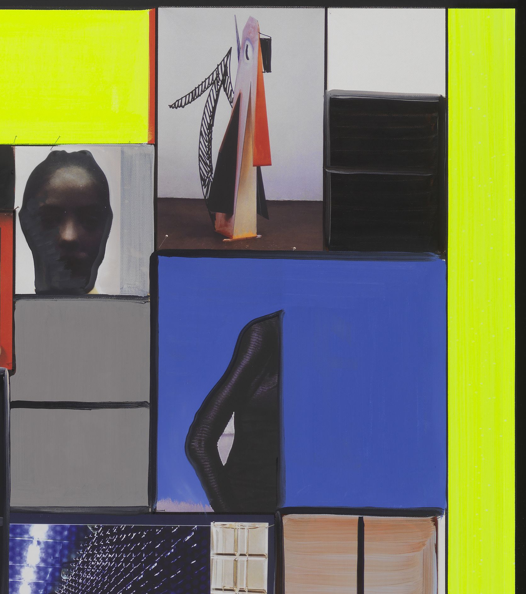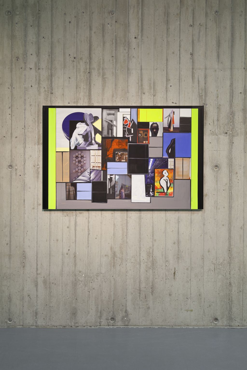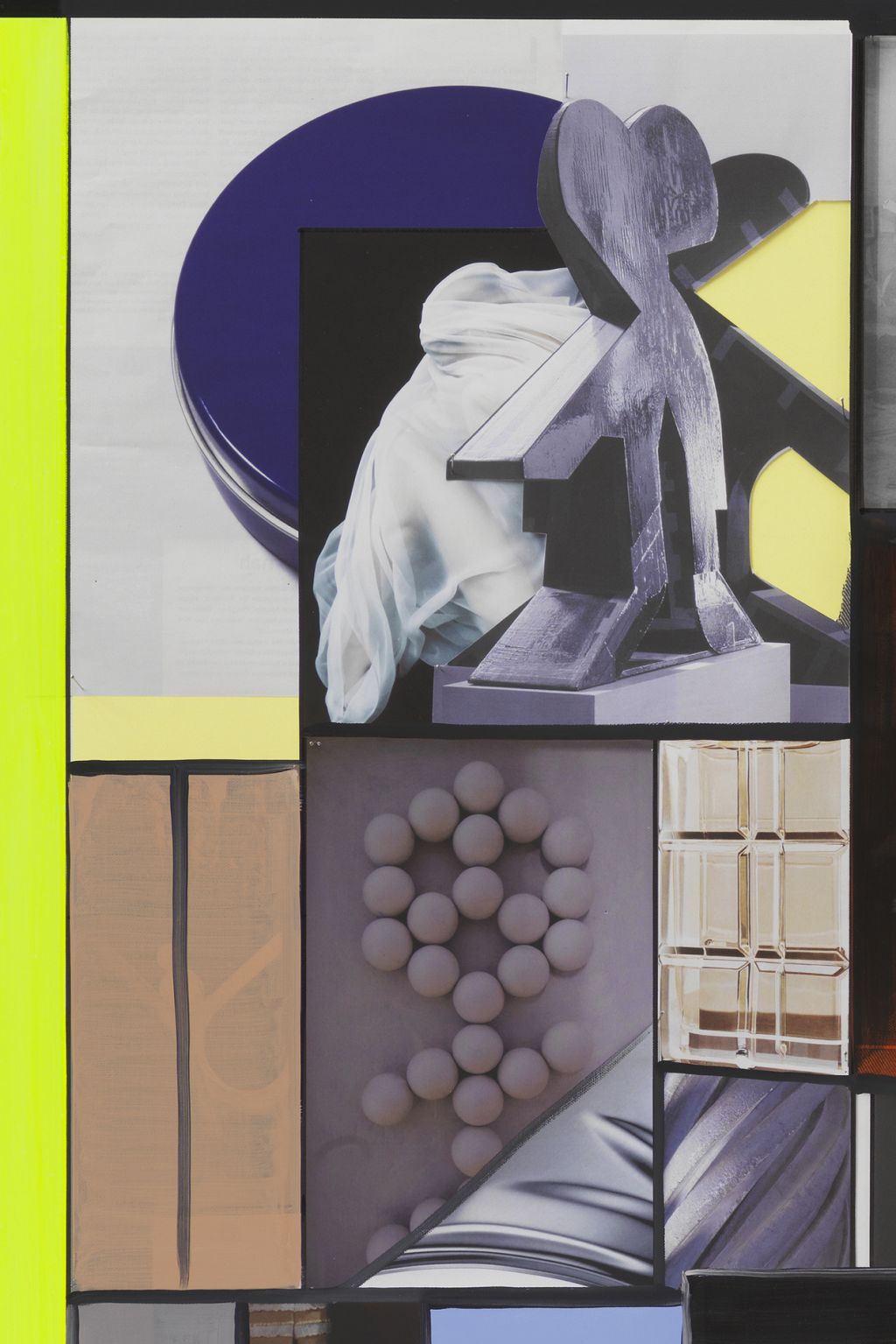The starting point for Scheibitz’s artistic practice is a steadily growing collection of archival material that resembles a loose visual grammar of the present. It includes art historical reproductions, pictures from fashion, music and popular magazines, his own photographs and much more. The artist draws on this archive for his work, choosing elements from it according to associative and formal criteria. His motifs range from houses and other kinds of architecture to landscapes, typographic letters, playing cards, portraits and still lifes. Afterwards he submits them to an ambivalent, constantly self-recalibrating process of sketching, photographing and reworking that radically erases the elements’ content-specific references and traces of its origin, consequently arriving at what the artist has called “the edge of an invention.” The resulting images neither mimetically represent anything nor are they purely symbolic or abstract. Instead, they appear as autonomous entities that are at once figure and form, object and sign. Scheibitz explores an interface that few would have thought existed—a realm between autonomous composition and barely-recognizable reference to reality, between figuration and abstraction.