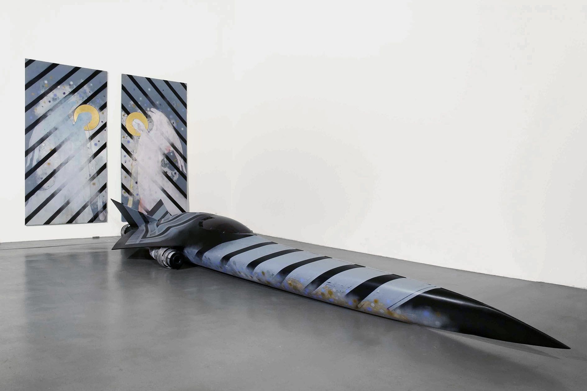 In the work of Robert Elfgen, religious and personal mythologies take centre stage. Born 1972 in Wesseling, Germany, Elfgen transforms the given exhibition space, manipulating diverse media while playfully setting narrative guidelines and developing a network of connections between homelands, journeys and their boundaries.