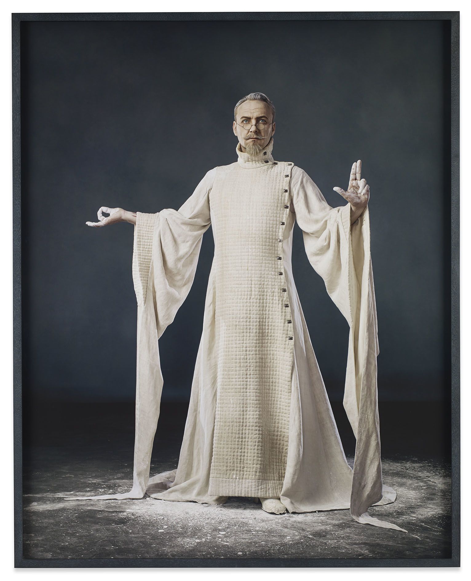 Alexandre Singh’s The Humans represents the culmination of years of study, writing, drawing and sculpting by the artist for the creation of a three-act theatre play. Commissioned by Witte de With, Rotterdam, and Performa 13, New York, Singh’s story unfolds amid an allegorical landscape: a mountain rises centre stage separating the realms of Charles Ray, the pontifical Apollonian sculptor, and N, the silent, agile Dionysiac Rabbit Queen. Seeking to introduce chaos into an otherwise orderly cosmos, Tophole, Charles Ray’s fretful son, and Pantalingua, N’s daughter and interpreter, plot to contaminate the sculptor’s perfect statues with the passions, desires and bodily functions of humans – cold stone made living flesh.