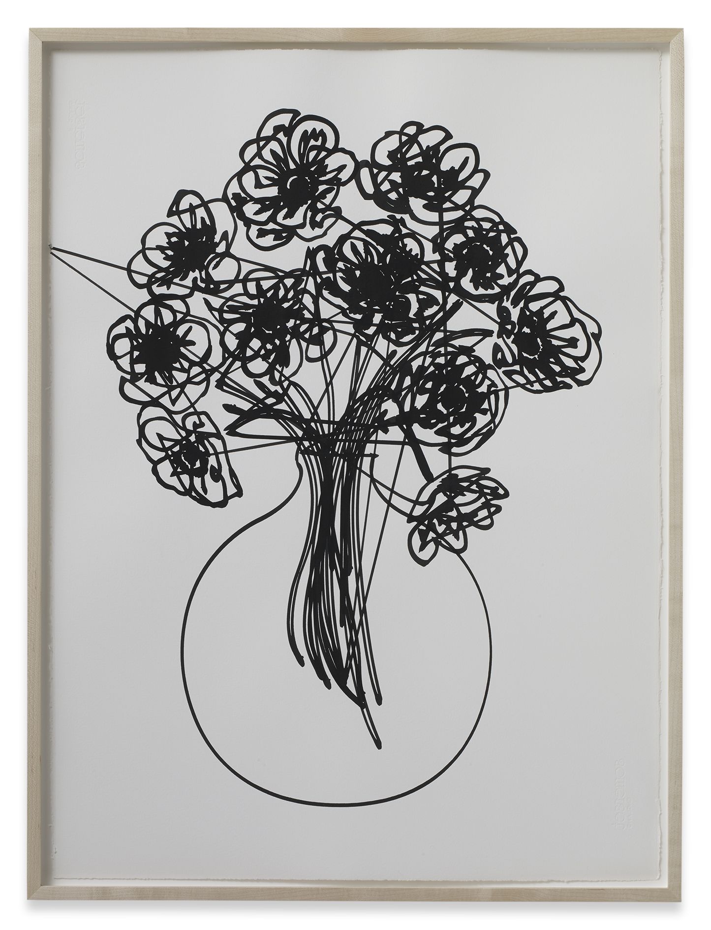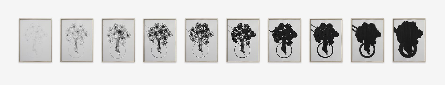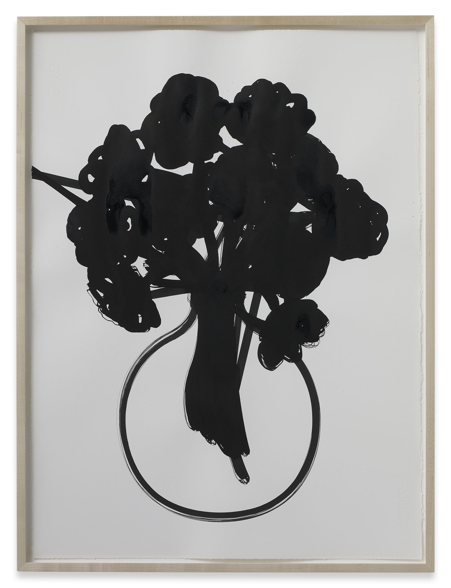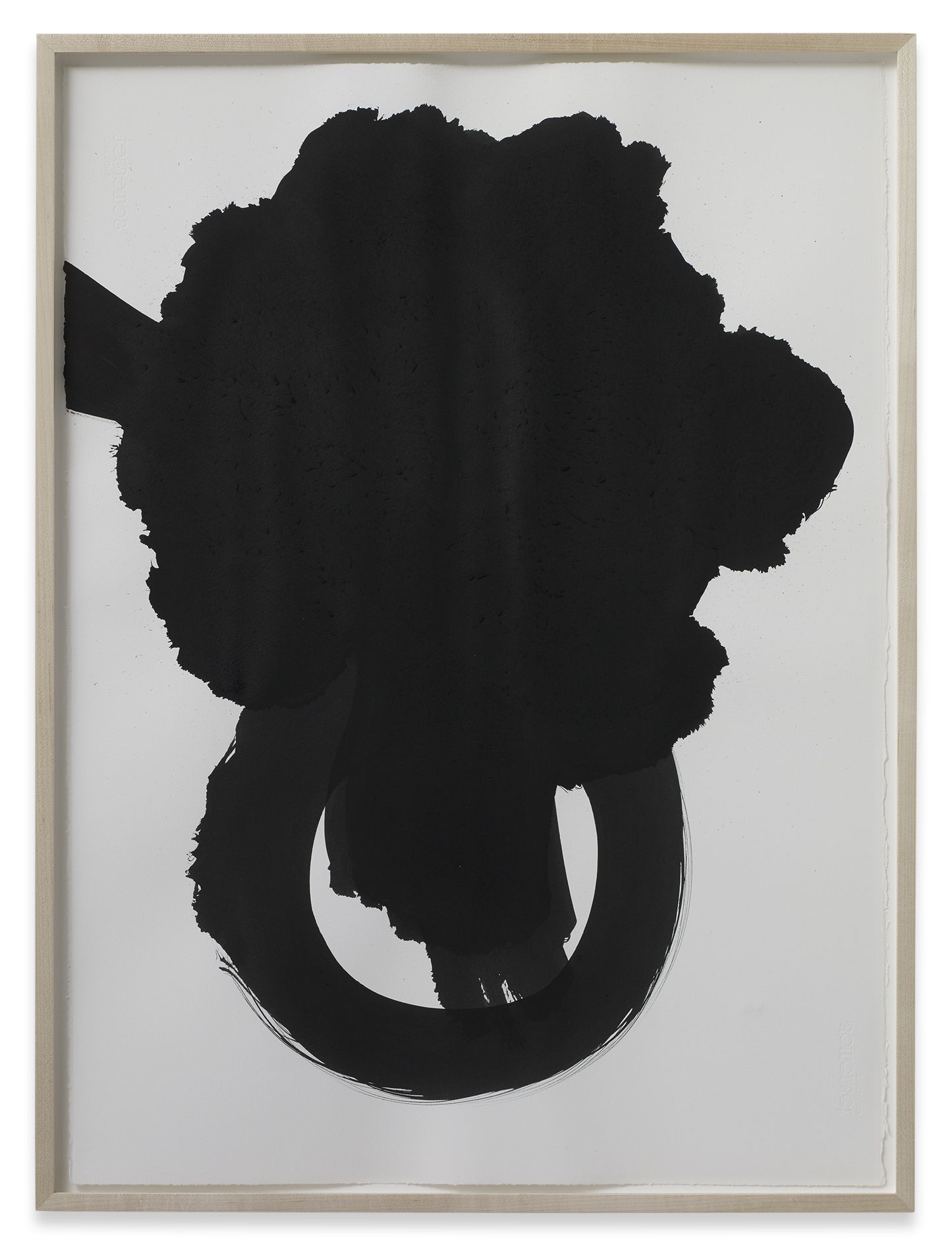 In the large gallery, Claim (from Chesterfield Sofa) (2014) appears at first glance like two objects—a sofa and, with a sly nod to that interior-decorating cliché, the painting above it in matching neutral colours. But the work is in fact a single, integrated sculpture, with both objects unified by the large piece of canvas that they share. The canvas spreads and grows from the stretcher, invading the interior of the room, perversely merging with the sofa. The paradoxical mood of this work extends to Draped Marble (Fior di Pesco Apuano) (2015), where a thin slab of marble hangs from a pristine sawhorse as if it were a wet towel. Cracking where it folds, yet just maintaining its form, the marble fails to live up to its essence as a material prized for hardness and permanence.