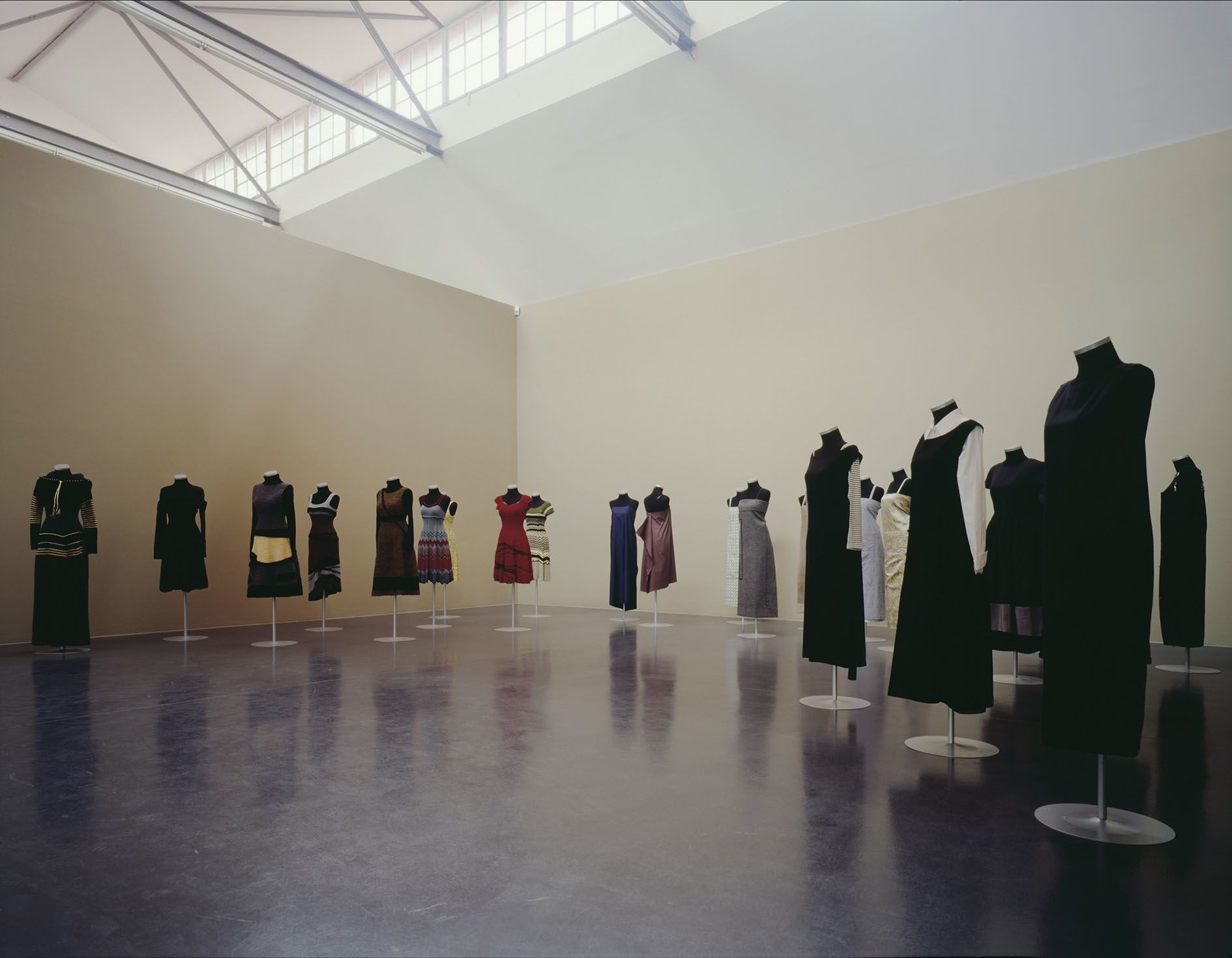 After four years of making uniforms I began to find more and more difficult to come up with a new style of dress each season, so I decided to create some guidelines to make the decision a little easier. I looked around at the numerous rules that had already been made by other designers, particularly by the Russian Constructivists. Their idiom that “geometric patterns maintained the integrity of the fabric (which was woven in rectangles)”was arbitrary in one way, lucid and sensible in another. As a way to push this rule to its absurd yet logical conclusion, I decided to take the position that all dresses should only be made from rectangles…almost as if the fabric had been sliced from the bolt. The most interesting thing about the rectangular format is that the creative variations within it become almost limitless and it was possible to achieve the effect of either a prom dress or a blacksmith’s apron, with a few suggestive details.