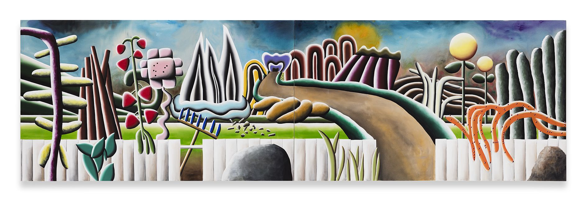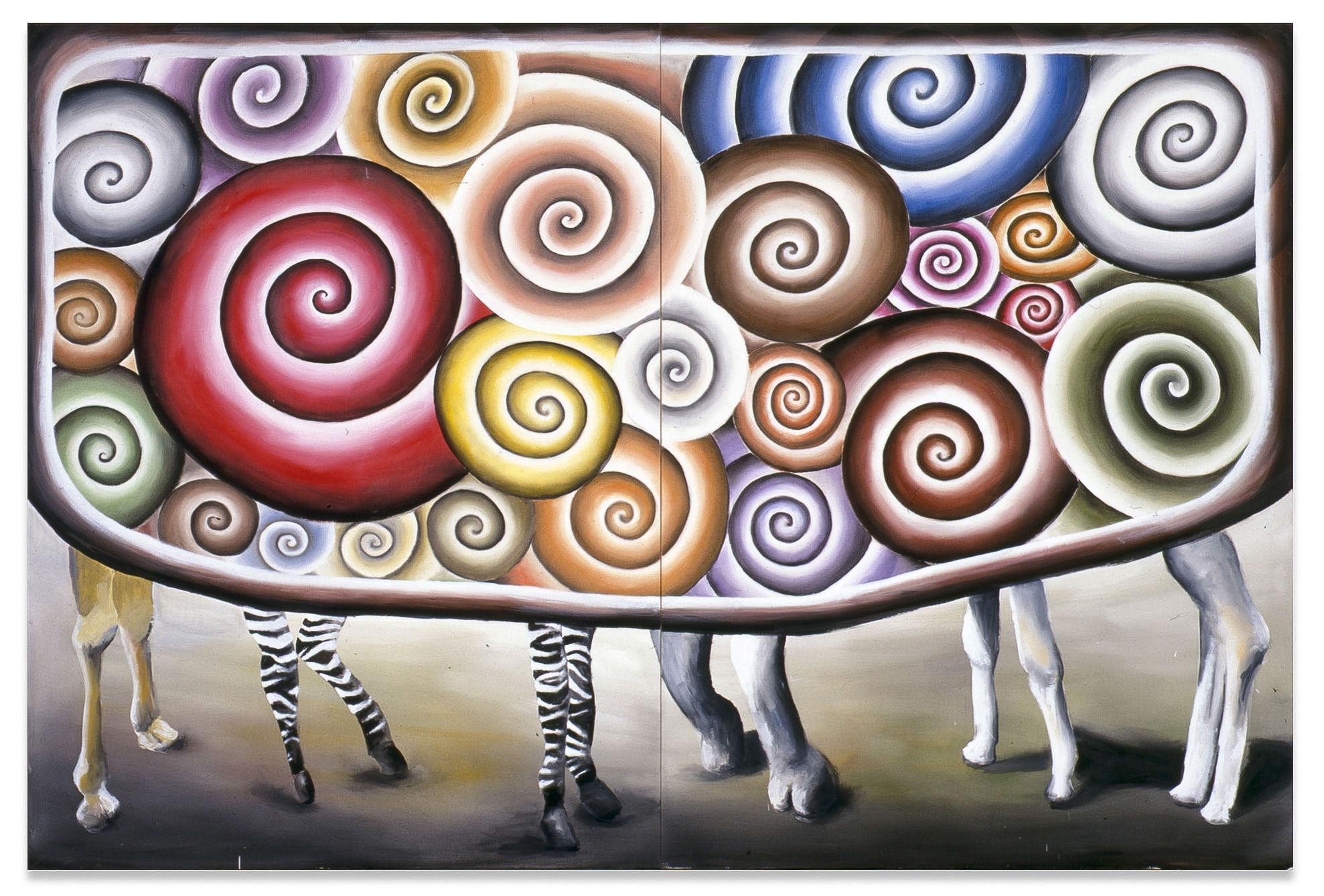 That’s what’s so fascinating about Schulze: He is absolutely fearlessly uninterested in appearing cool and unassailable. He offers himself and his work up for all kinds of wacky associations. And yet it’s not just a joke. It’s sometimes so simple that people don’t understand it. And yet it does have depth—the cuteness or careful ugliness of many of his motifs are almost like smoke screens diverting from his formal painterly skills at “working space,” because to show these off would just be too embarrassingly pompous. Instead of aspiring to some kind of solemn aura, his is an interior transcendence, an “intranscendence” frustrating the desire for a beyond yet finding consolation precisely in the banality of existence. It’s a romanticism of the utterly unromantic, inward in a down-to-earth way, devoid of the big demonstrative gestures of doubt and transcendence. It’s intranscendence.