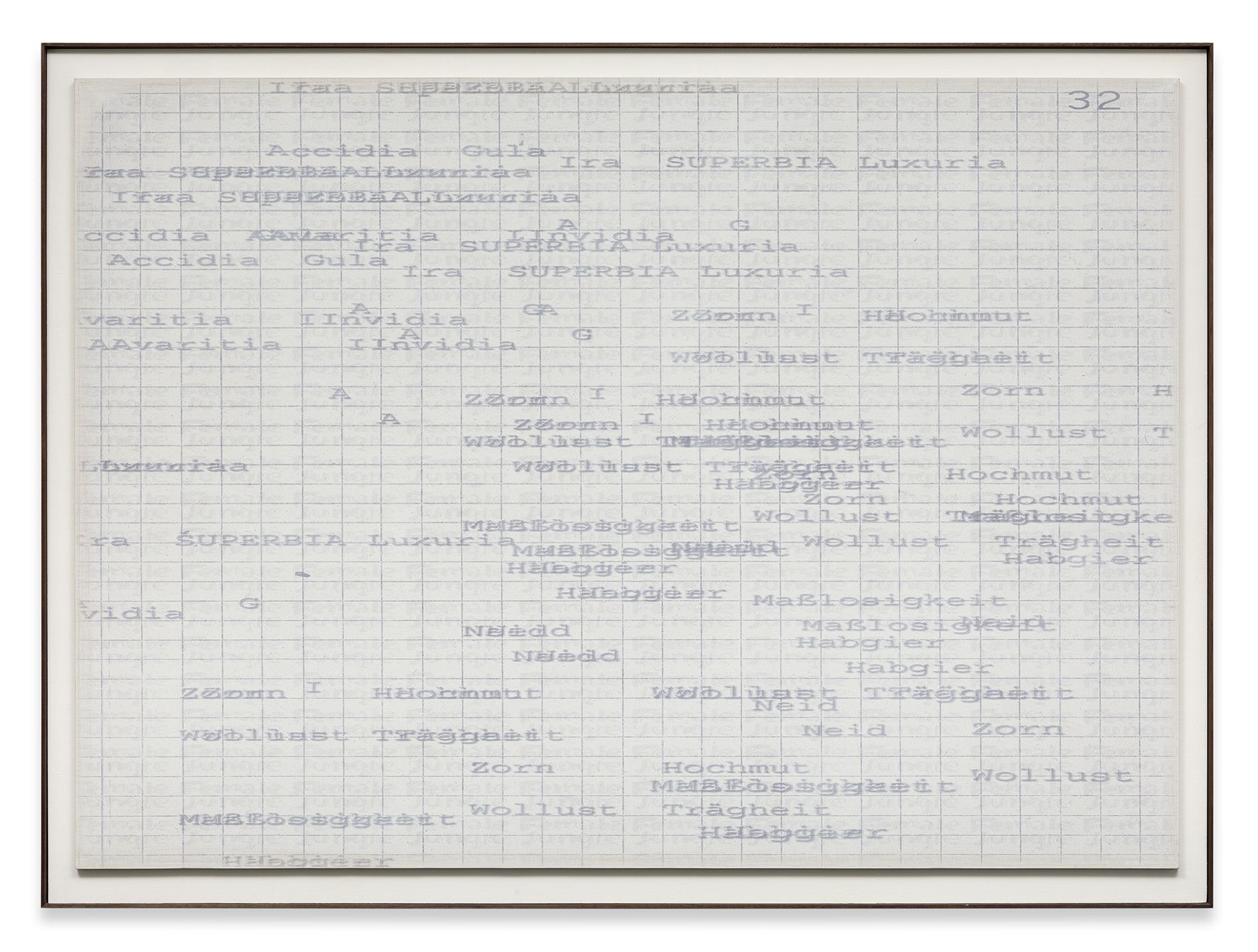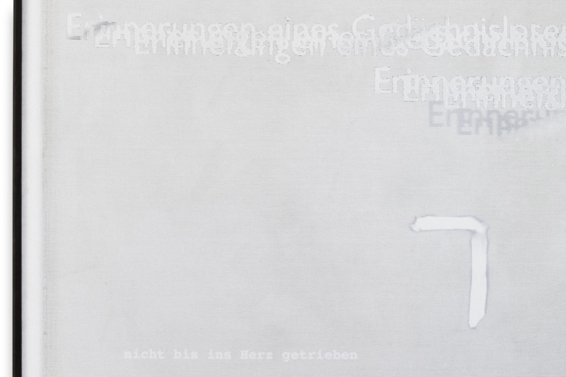 The painter and sculptor Astrid Klein has been working at integrating text into her paintings for over three decades. In 1972, before she had even started her degree in Cologne (1973-77), she began to write several texts which she later printed onto hand-made paper. The topics of her own texts, as well as her later use of other textual sources, bear witness to her thoughts on literary, aesthetic, philosophical and scientific writings. In a fragmented and concealed way these various sources are incorporated into her Schriftbilder (text paintings) which make up the large majority of the exhibited works in Berlin.