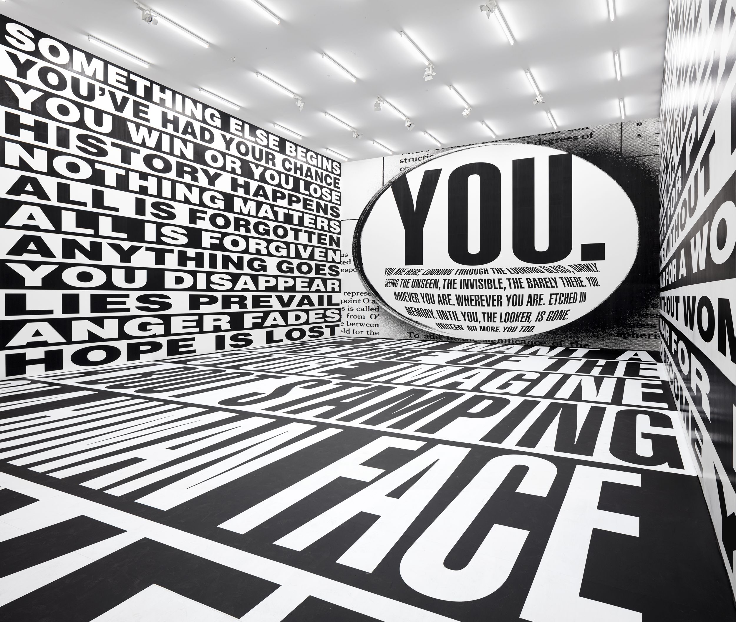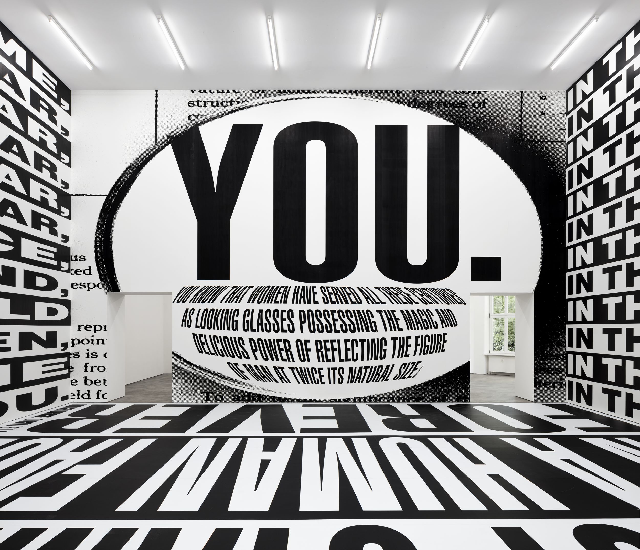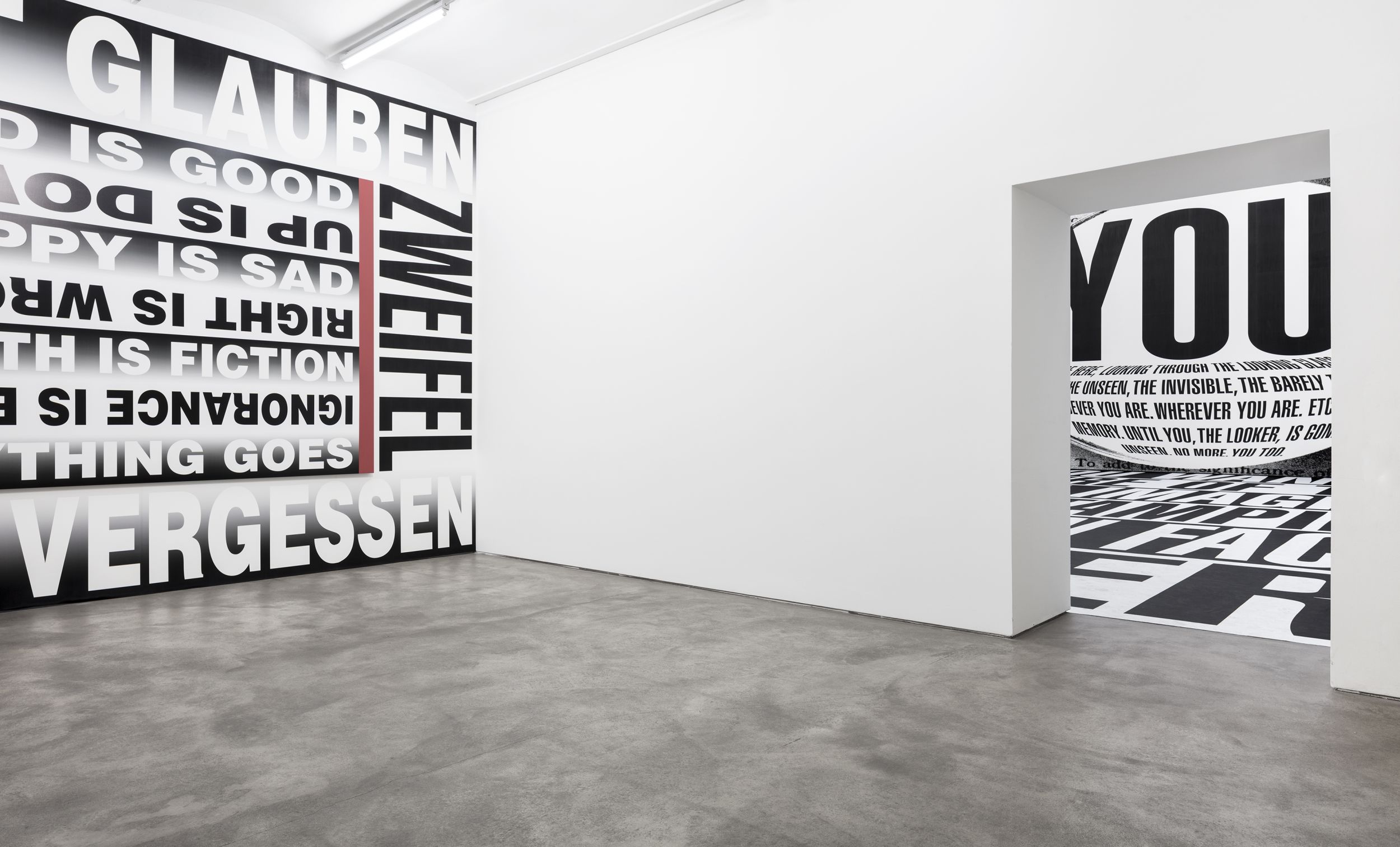 Sprüth Magers presents FOREVER, a new site-specific work by Barbara Kruger. For this installation, which occupies all four walls and the floor of the Berlin gallery’s main exhibition space, the artist has created one of her immersive room-wraps and several new vinyl works. Their boldly designed textual statements on the nature of truth, power, belief and doubt embody the distinctive visual language that Kruger has developed over the course of her forty-year career. This exhibition at Sprüth Magers, Berlin, marks exactly three decades since her first solo show at Monika Sprüth Gallery in Cologne.