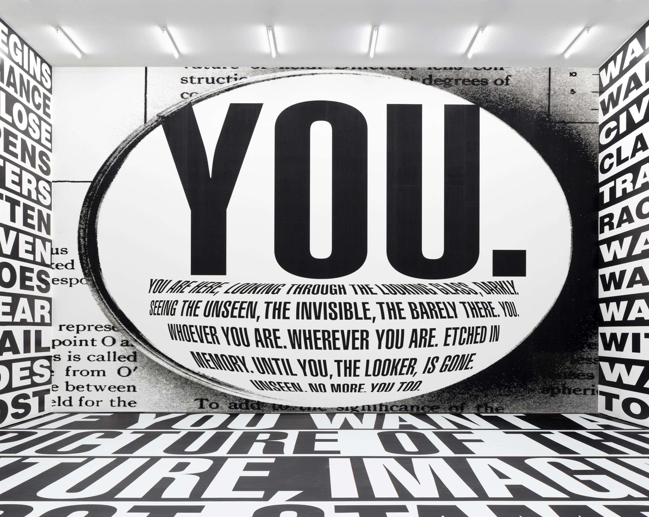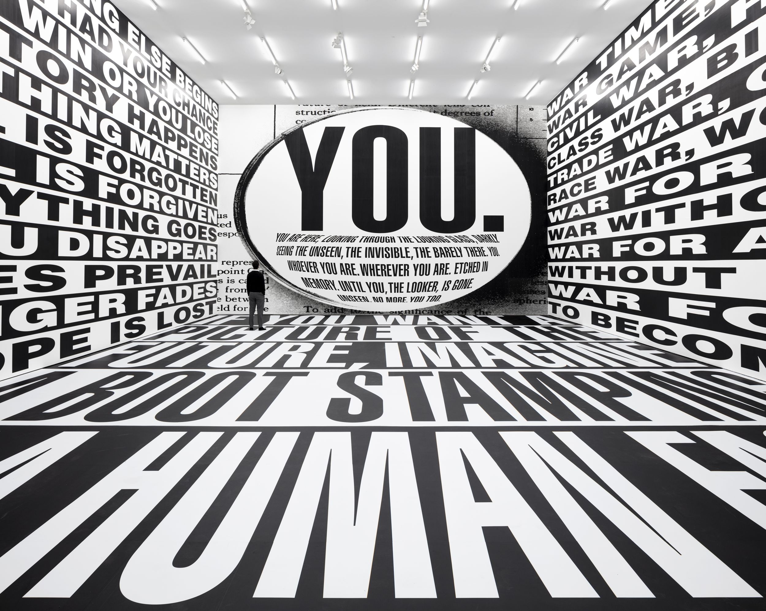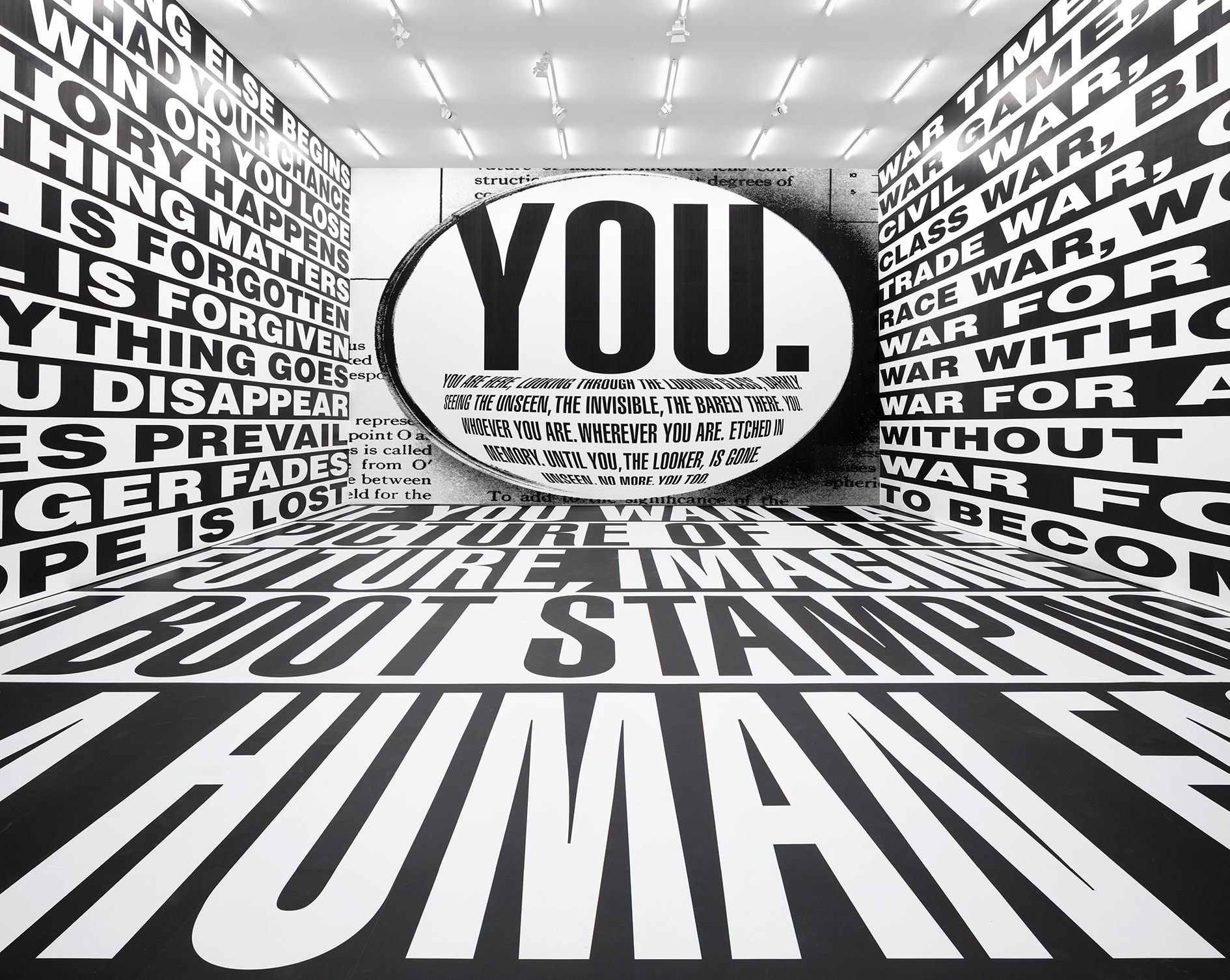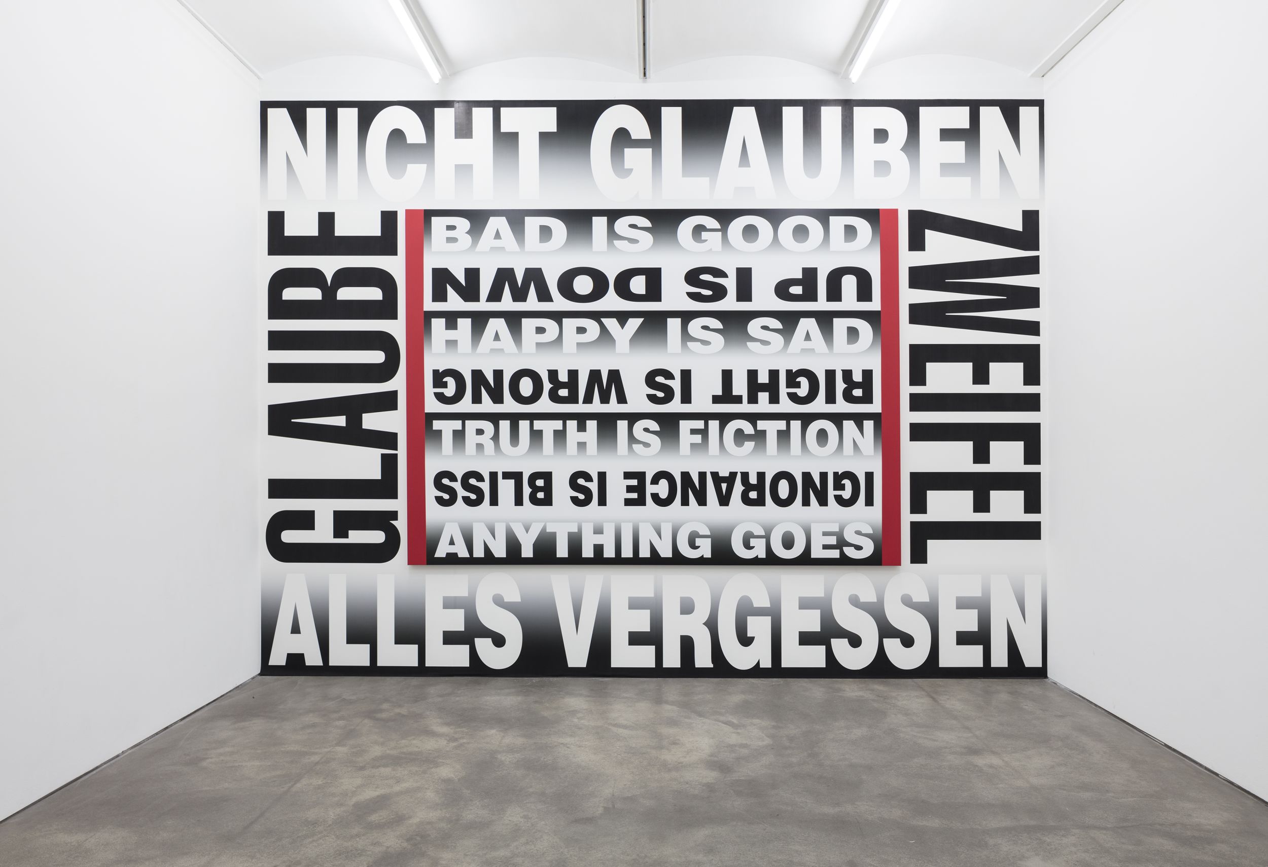 Sprüth Magers presents FOREVER, a new site-specific work by Barbara Kruger. For this installation, which occupies all four walls and the floor of the Berlin gallery’s main exhibition space, the artist has created one of her immersive room-wraps and several new vinyl works. Their boldly designed textual statements on the nature of truth, power, belief and doubt embody the distinctive visual language that Kruger has developed over the course of her forty-year career. This exhibition at Sprüth Magers, Berlin, marks exactly three decades since her first solo show at Monika Sprüth Gallery in Cologne.