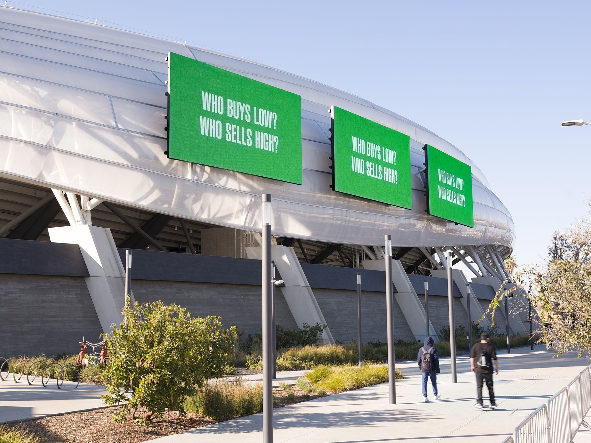 Direct, daring, acerbic and witty, Kruger’s work has never shied away from interrogating our most conventional beliefs or the dogmas of our present age. Starting with Untitled (Who?) (2020), her most recent work on the façade of the Los Angeles gallery, the online exhibition Questions surveys some of her most important text-based, large-scale installations in the US and across the world.