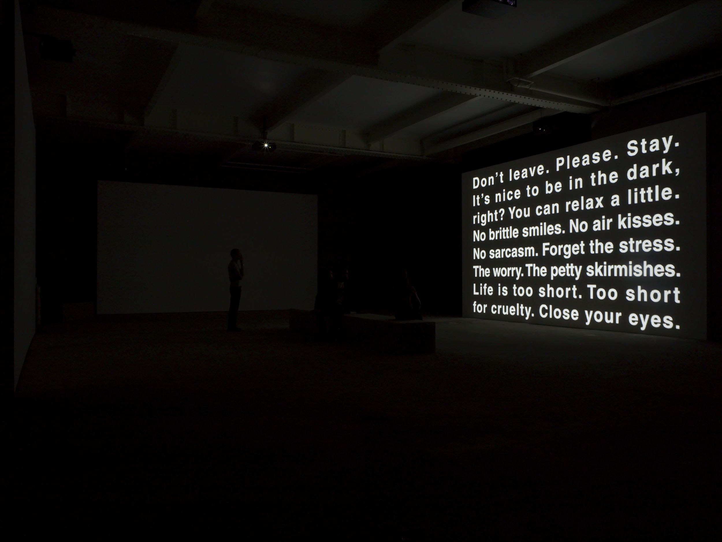 Since the mid 1990s, Barbara Kruger has diversified her practice and embraced a series of aesthetic expansions which includes working with film and audio installations. This progression into large-scale immersive installations is fuelled by the artist’s longstanding interest in architecture and desire to address the viewer directly within whole environments.