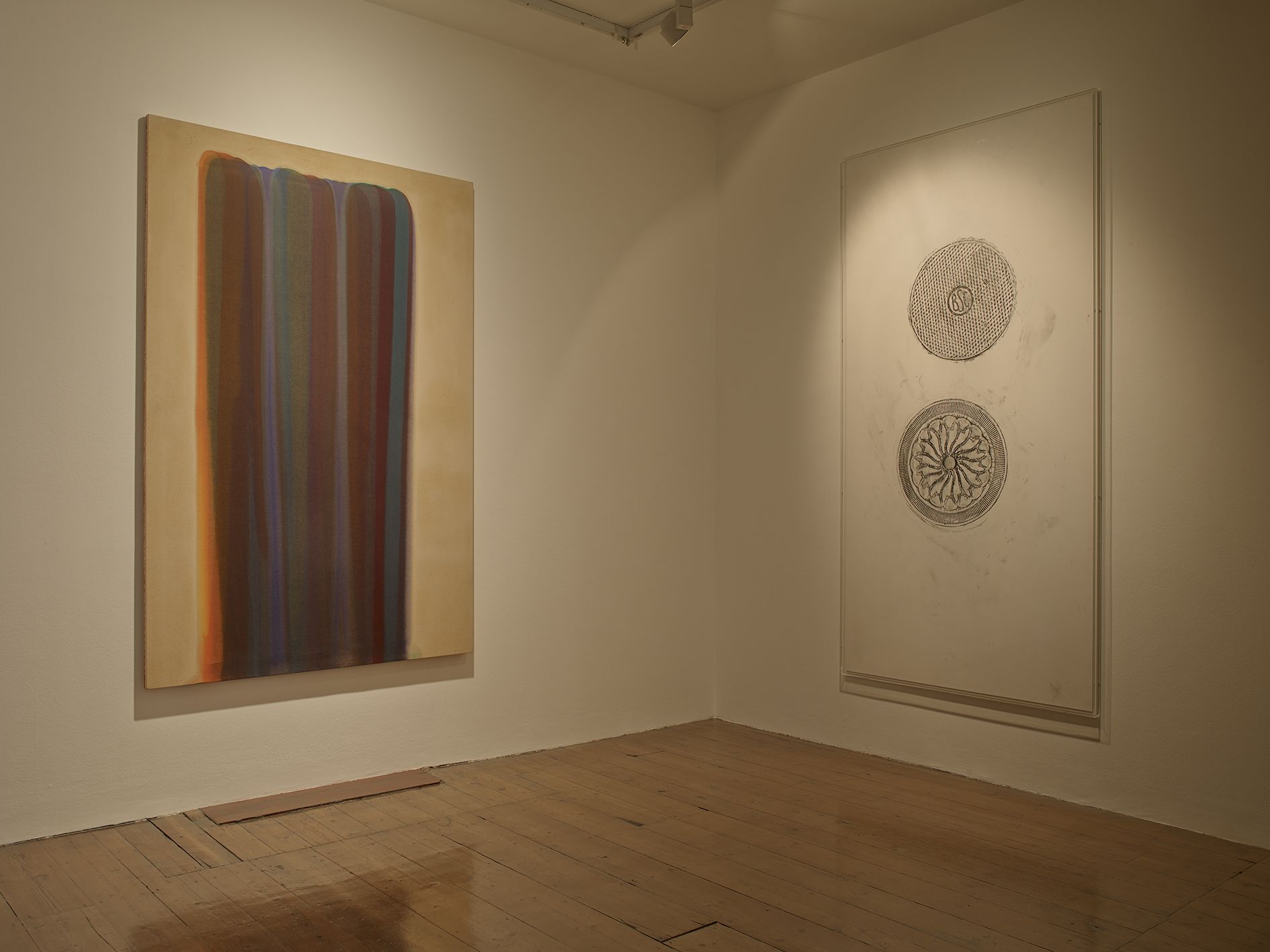 The title of the exhibition derives from a November 2006 feature in National Geographic, ‘From Fins to Wings’, a look at how some of biology’s more complex features – the eye, for example – evolved. Washington D.C., the institution’s headquarters, also provides the geographical nexus for the show. While Morris Louis painted most of his best-known work in the American capital, its lesser-known neighbour Baltimore, Maryland, was in fact the artist’s hometown. Gaillard visited the city as a way to pay tribute to the artist, making there a group of his Gates: frottage rubbings of manhole tops. On one half of a piece of paper, Gaillard would lie on the ground to create a Gate in Baltimore, then take that paper to Washington D.C., where on the other half he would create a rubbing of one of the city’s floral-patterned manholes, shrinking time and space into a diptych of America’s urban and industrial evolution.