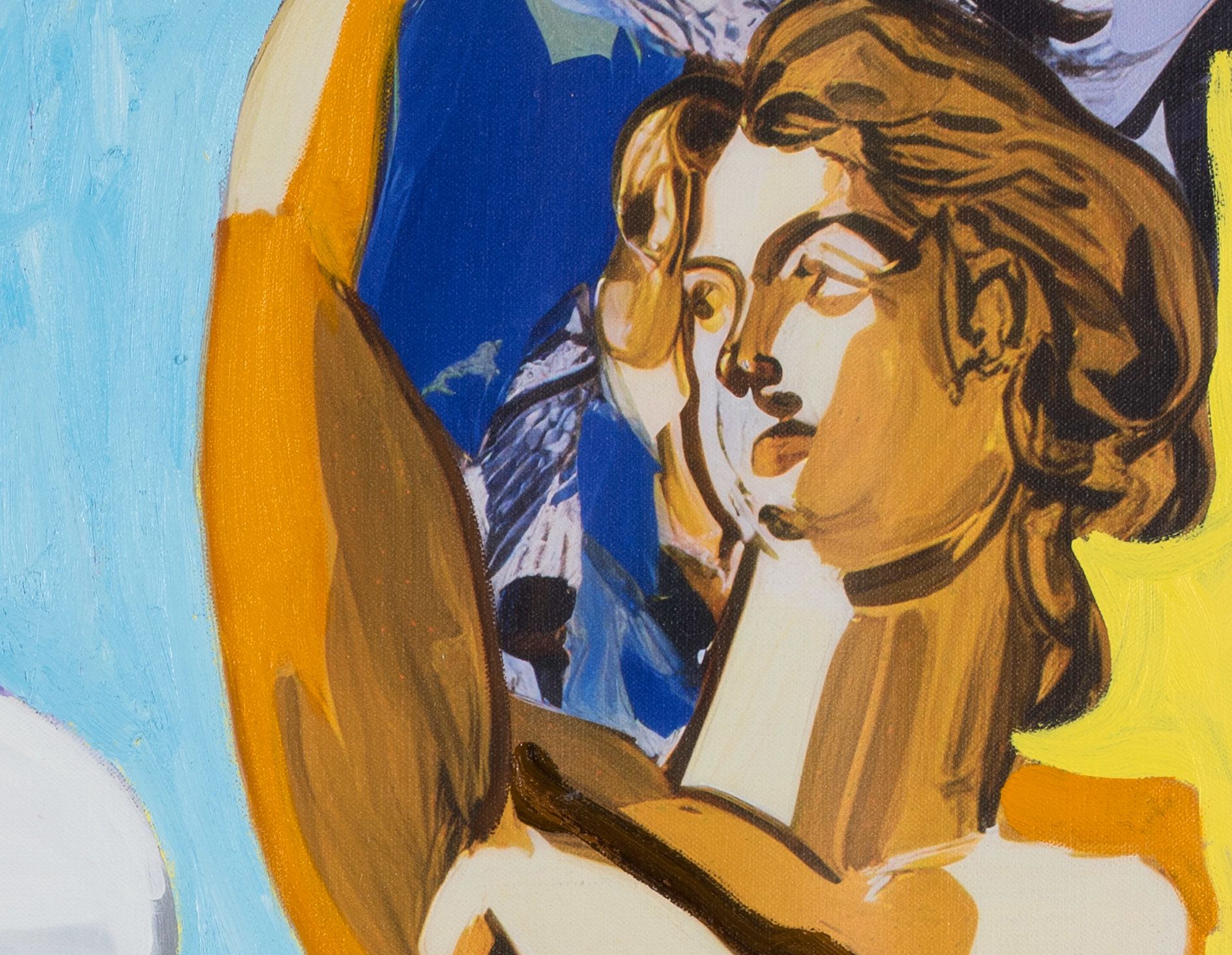In Morning, references to traditional artistic genres including still life, landscape, live-model drawing and history paintings abound at the edges and intersections of each canvas, a sort of metaphysical glue holding the compositions together.