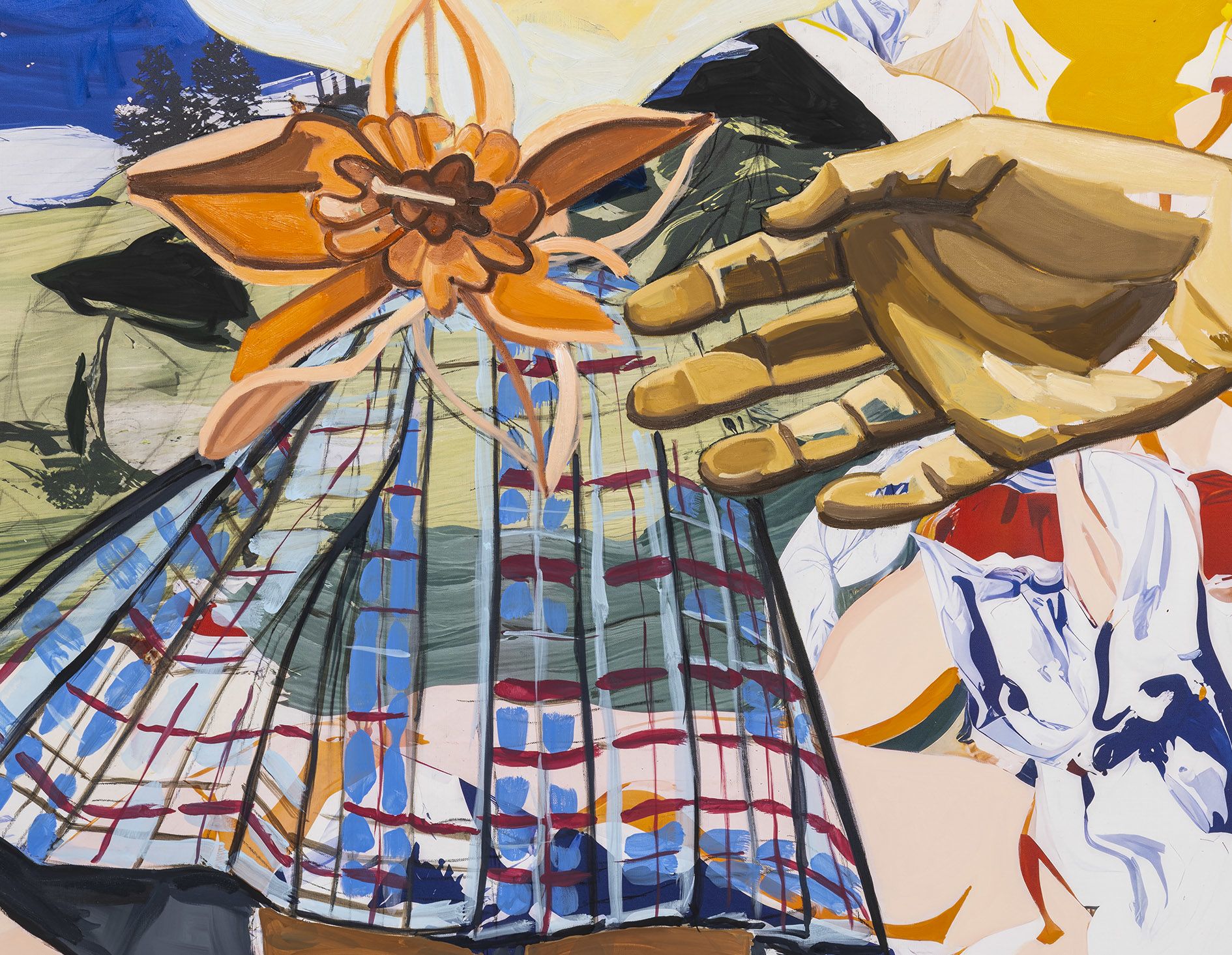 The paintings in My Frankenstein continue Salle’s investigation into how machine learning can integrate with traditional painterly techniques. For the past few years, Salle has worked with an engineer to create a generative, proprietary AI model trained on aspects of his own oeuvre, feeding it a tightly edited selection of his past works and prompting it to generate new image configurations. The AI’s weird, counterintuitive reimaginings of Salle’s original paintings have become the new “givens” in this most recent body of Salle’s work.