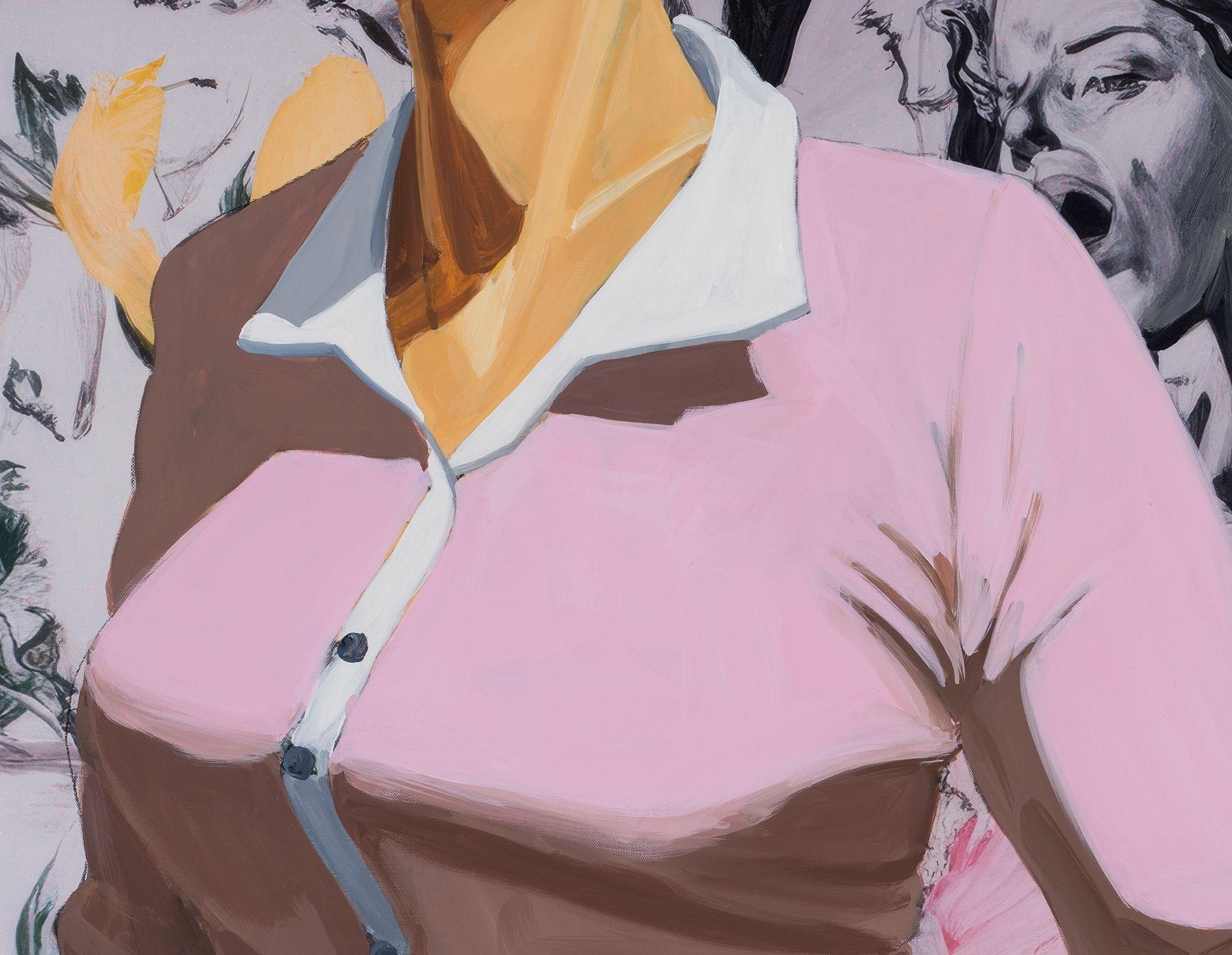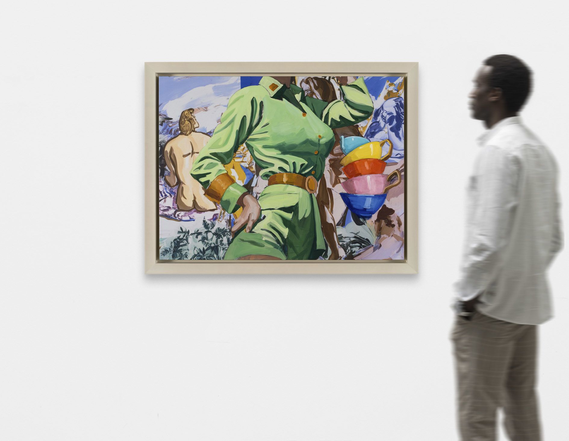 The Frankenstein-like suturing of imagery is also illustrated in the painting Master and Margarita (2025), which, like the exhibition’s title, takes the name of a celebrated novel—in this instance Mikhail Bulgakov’s early-twentieth-century satire of the Soviet state.