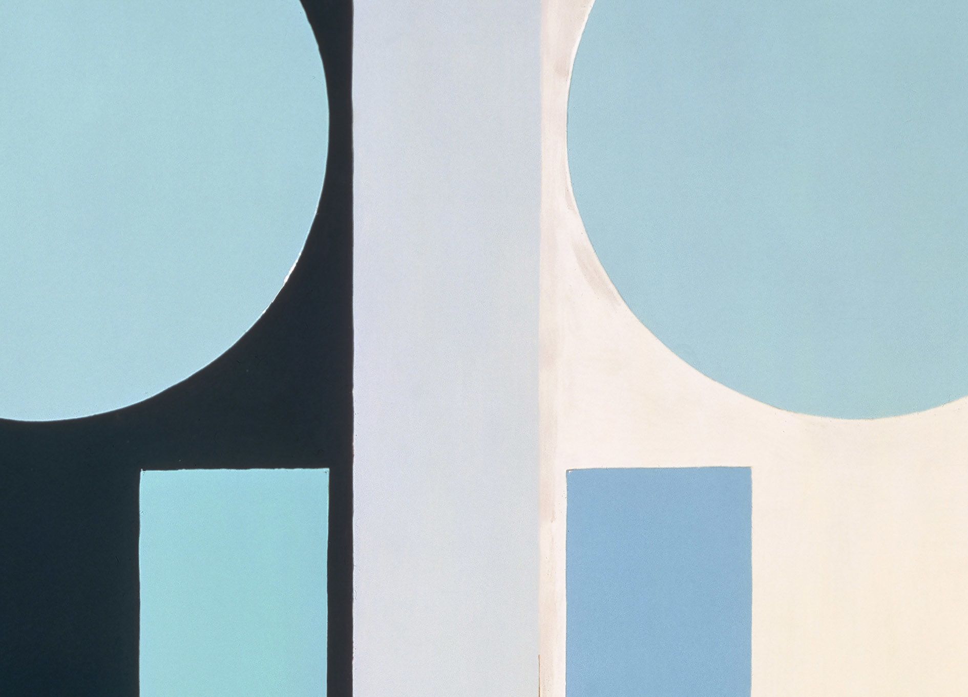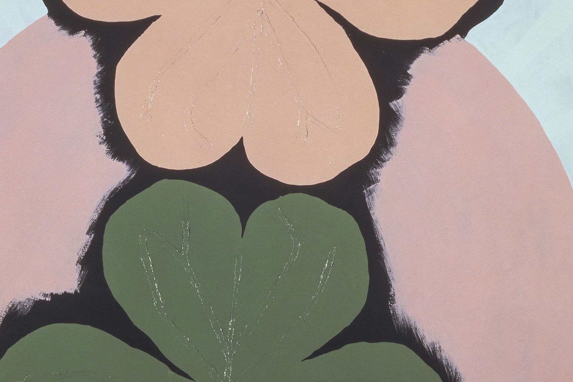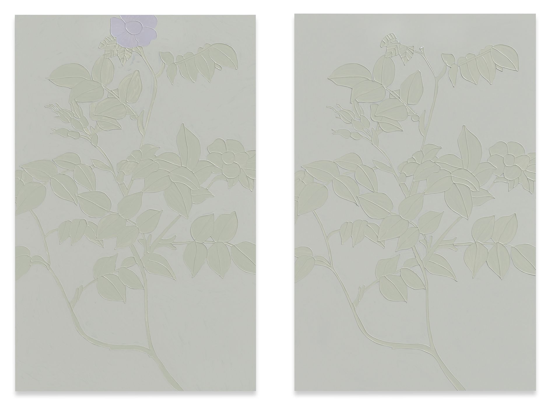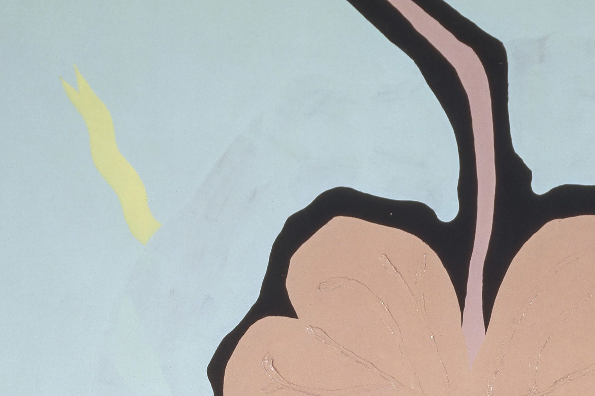 Hume invokes a similar mood of intimacy in each of the three paintings featured in Double Bloom. In The River, the flowers are at once separated by the strong bar of the horizon, yet the interlinked blooms reflect each other, and reflect upon each other. The vertical energy of Two Flowers creates a tender connection between the blooms, as if they were lovers’ heads on a bed. Two Blooms, Grey Fields conveys a rich emotional life. There is at once a melancholy in the ragged space between the two flowers, as well as a powerful sense of longing and affection. As with Bronzino’s mother and child, the flowers are suspended forever, loving yet hesitant, on the verge of an intimate connection.