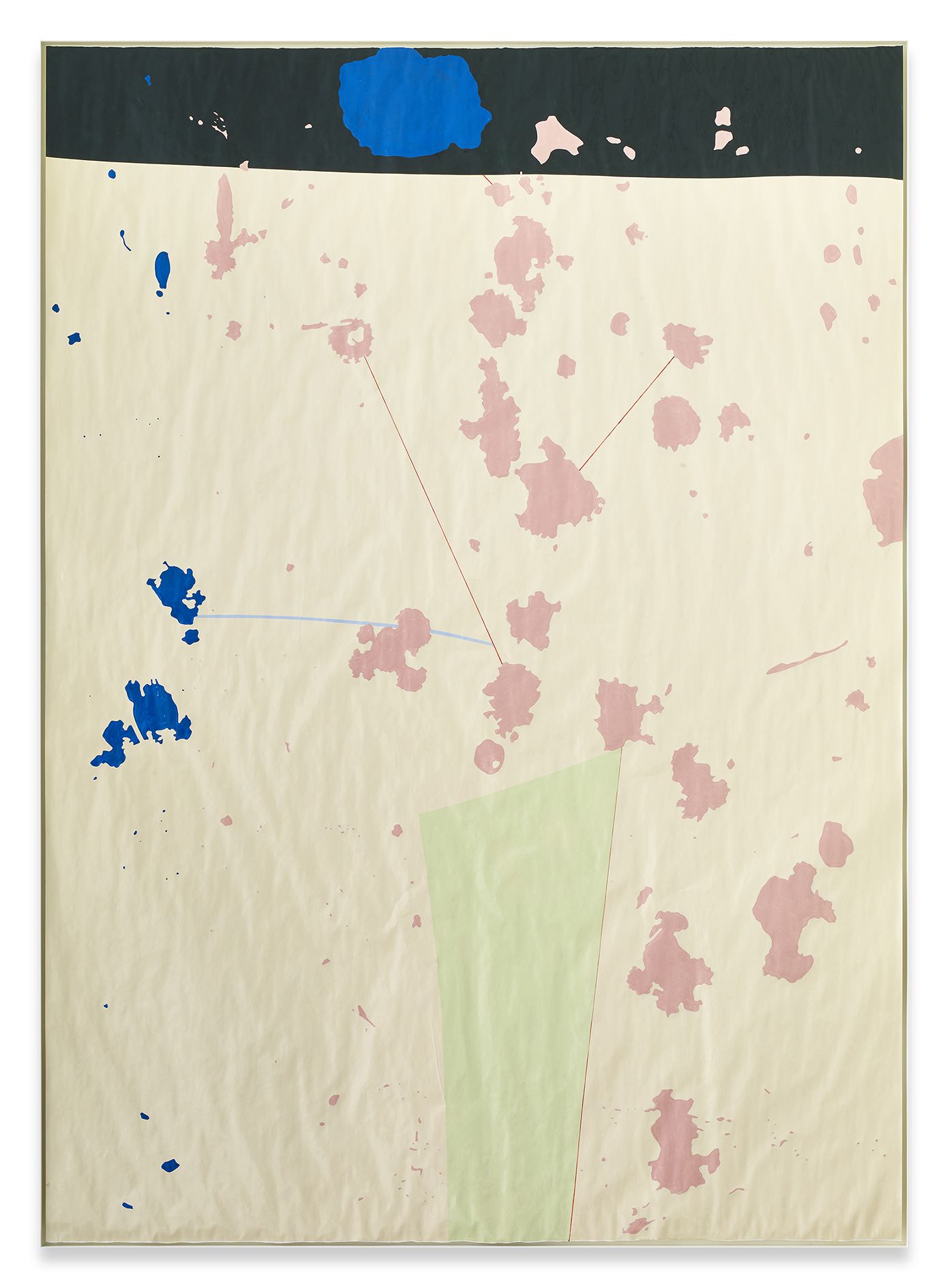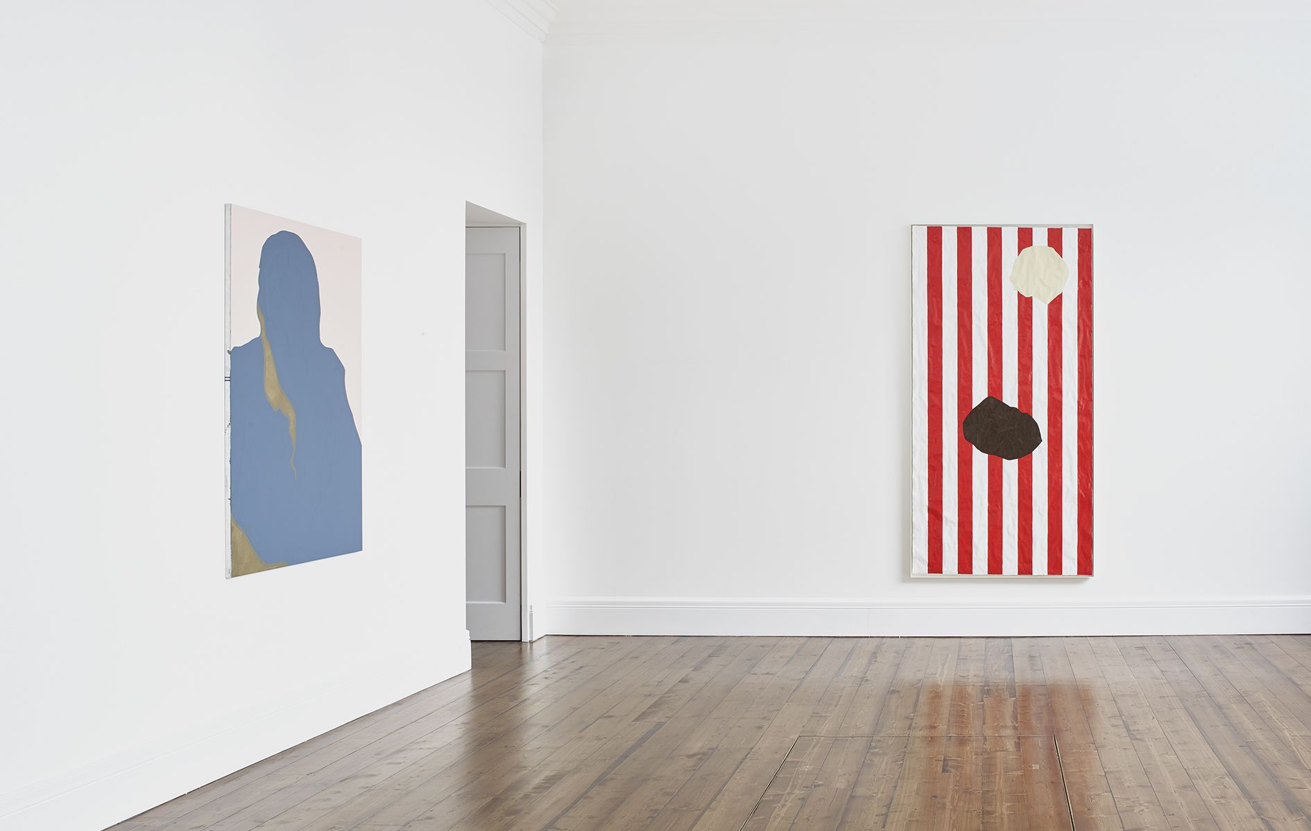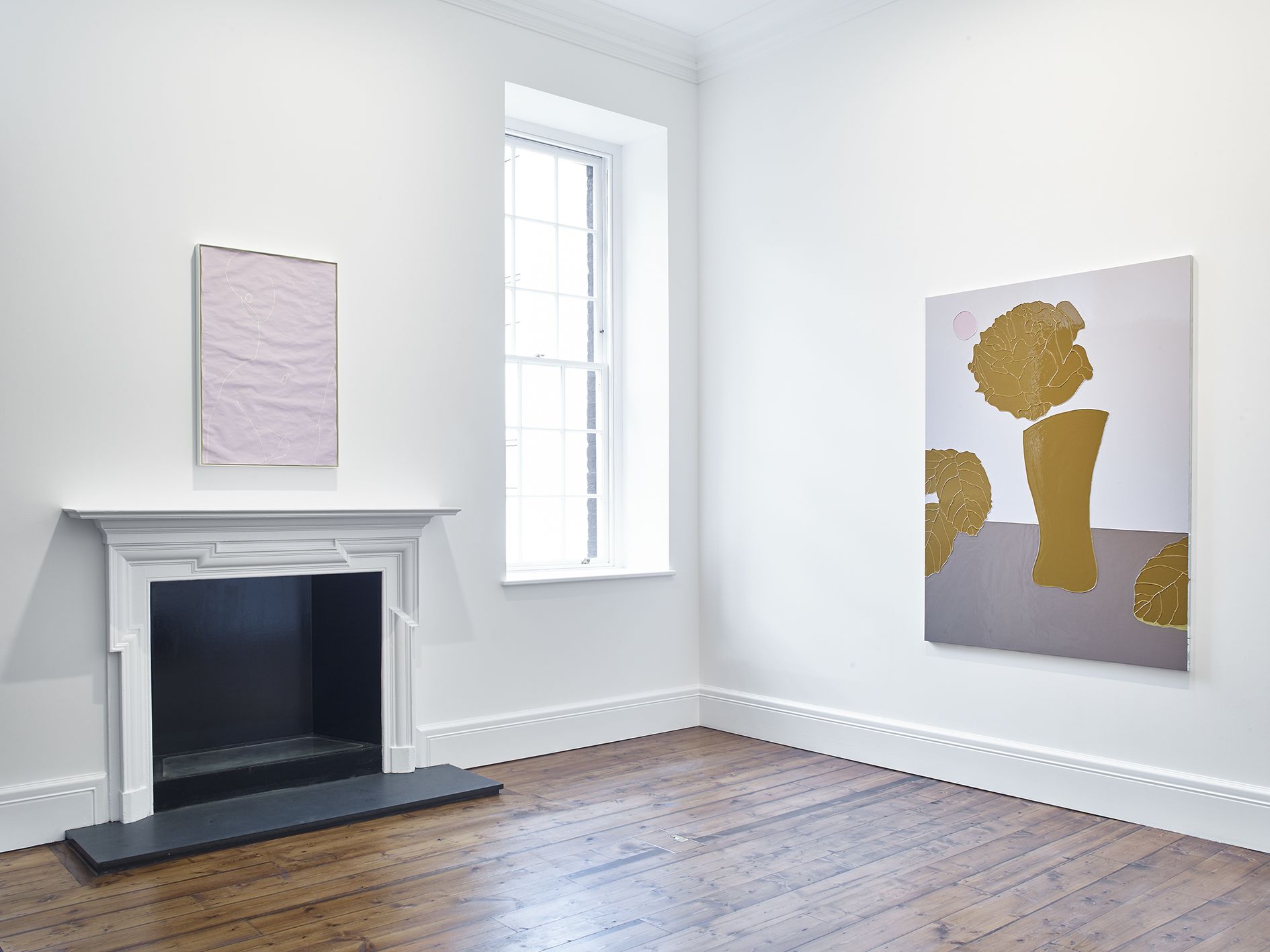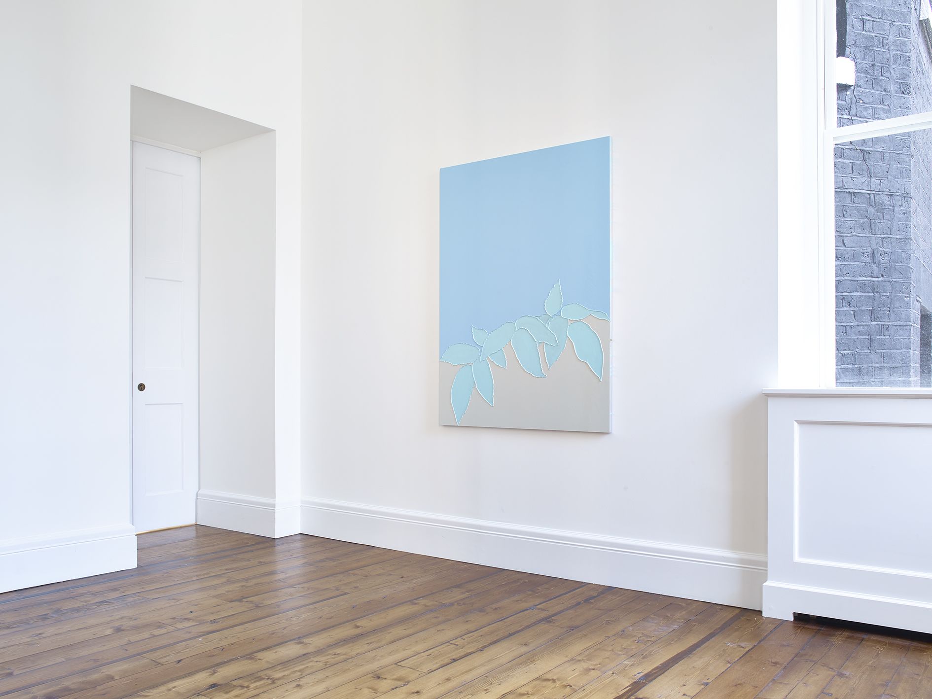 Gary Hume’s new body of works on paper mark a critical shift in his practice. Emerging from preparatory sketches, they revealed themselves as a unique and compelling body of work that has led the artist to develop an entirely new painting method. The use of domestic gloss paint is indicative of Hume’s practice, yet its effect on the paper ground enables a distinctive interplay between light, depth, and texture that stands in stark contrast to his characteristic aluminium paintings. The paper warps beneath the density of the paint, forming an undulating surface that departs from definitive flatness of his earlier works and creates a diffused reflection of light favouring ambiguity and openness. The formal properties of the new material prevent the artist from being able to scrape back the paint and rework an image as he can with aluminium. Without room for revision, the paintings on paper are much more akin to the medium of drawing, and develop only through the artist’s clear perception of the finished image. They are set in very thin aluminium tray frames, and their sculptural surface is unmediated by glass.