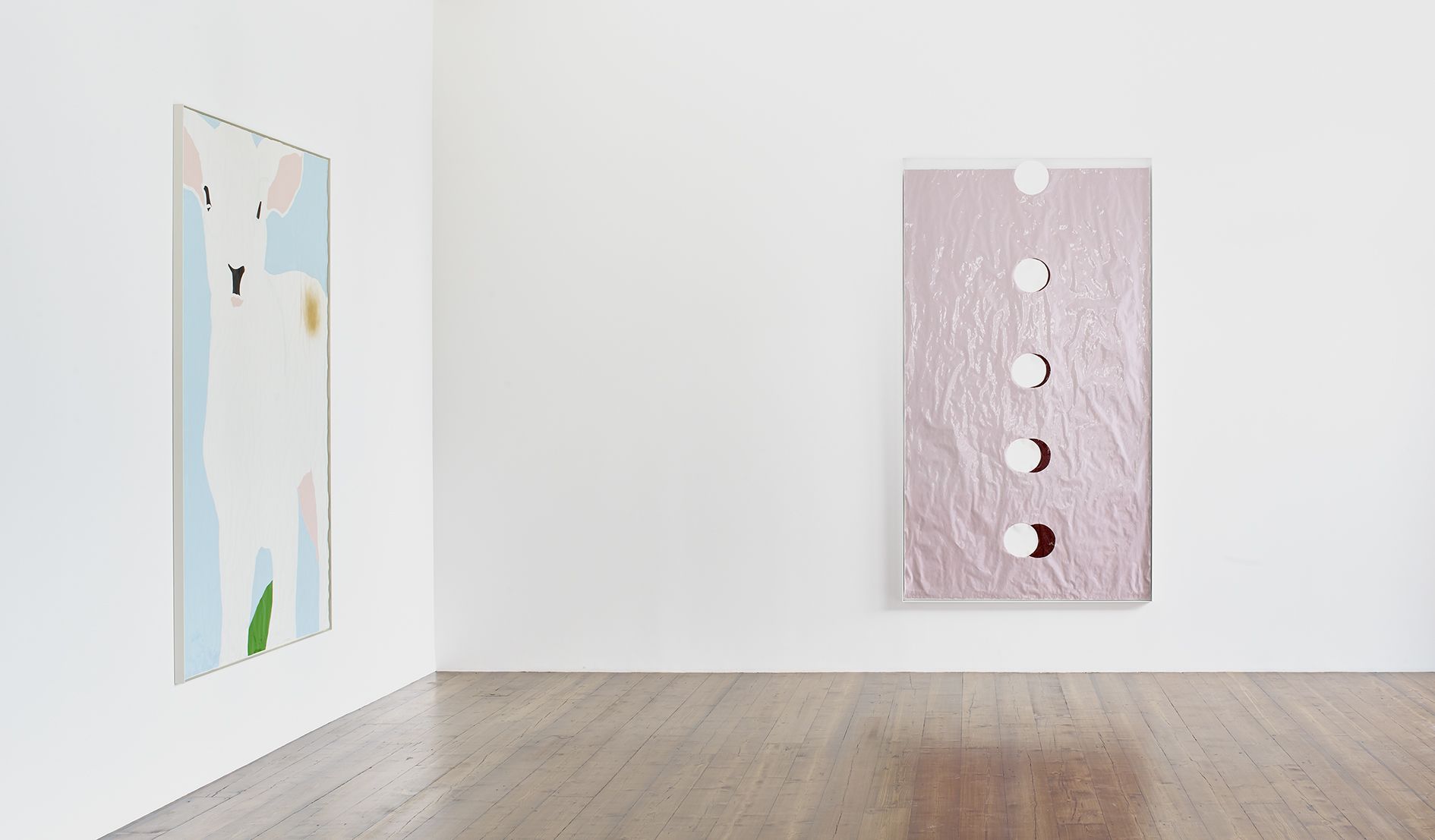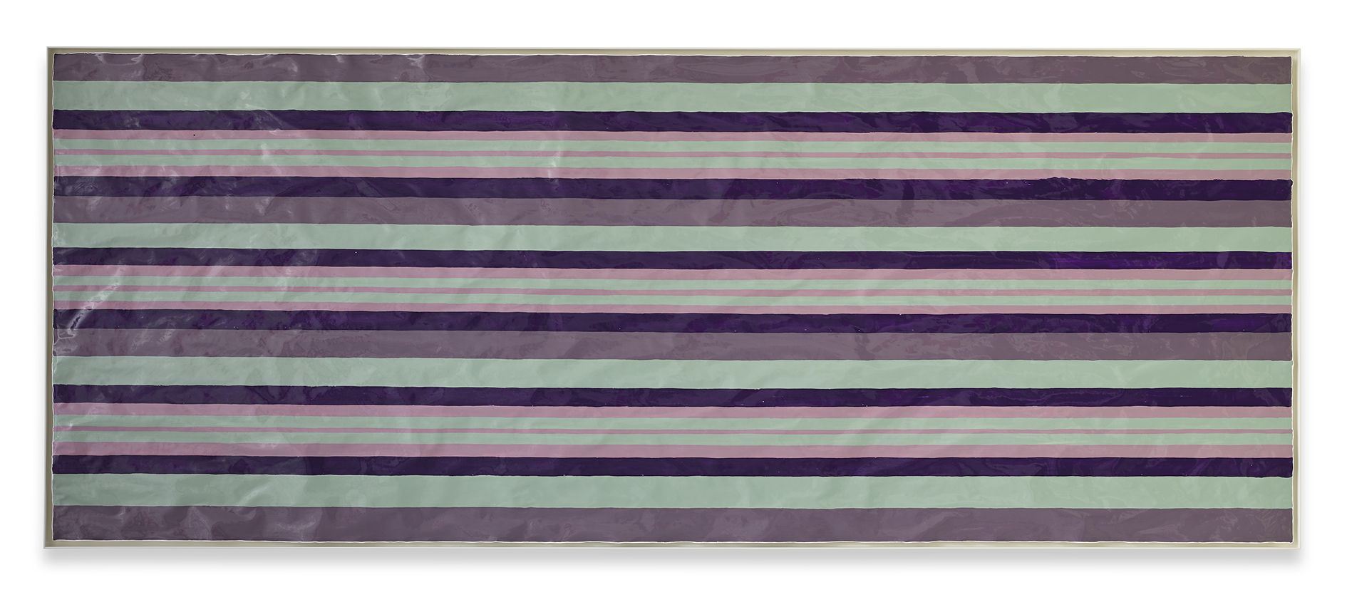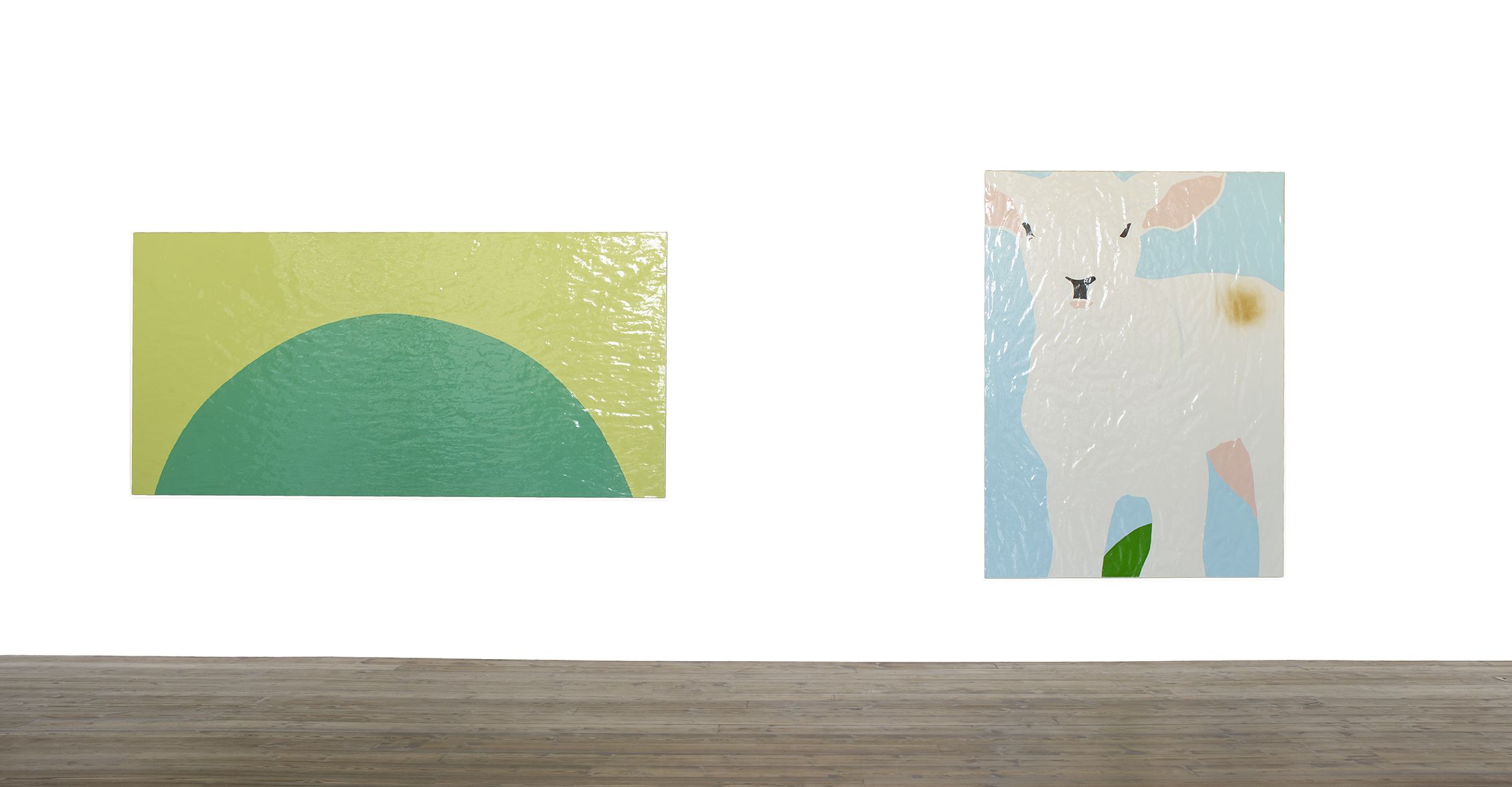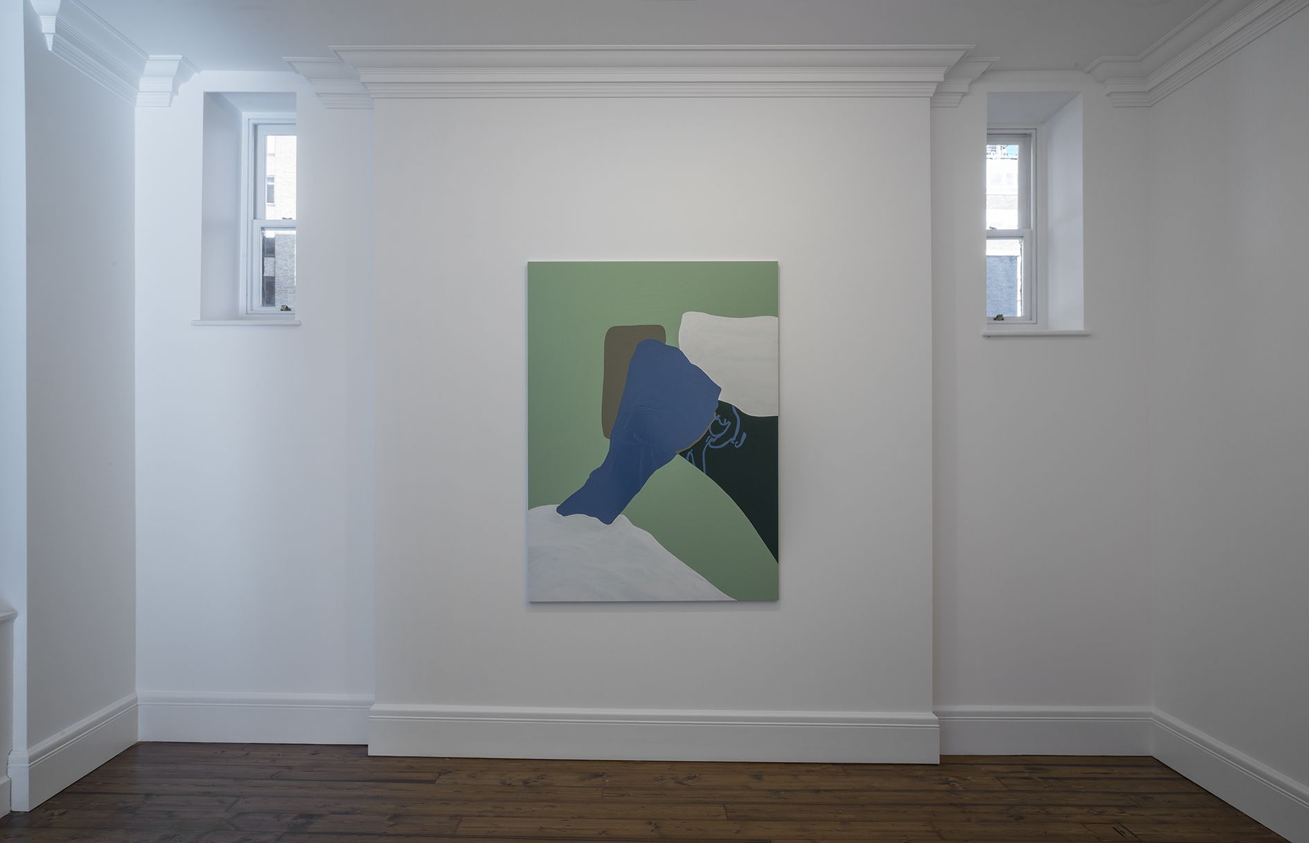 Gary Hume’s new body of works on paper mark a critical shift in his practice. Emerging from preparatory sketches, they revealed themselves as a unique and compelling body of work that has led the artist to develop an entirely new painting method. The use of domestic gloss paint is indicative of Hume’s practice, yet its effect on the paper ground enables a distinctive interplay between light, depth, and texture that stands in stark contrast to his characteristic aluminium paintings. The paper warps beneath the density of the paint, forming an undulating surface that departs from definitive flatness of his earlier works and creates a diffused reflection of light favouring ambiguity and openness. The formal properties of the new material prevent the artist from being able to scrape back the paint and rework an image as he can with aluminium. Without room for revision, the paintings on paper are much more akin to the medium of drawing, and develop only through the artist’s clear perception of the finished image. They are set in very thin aluminium tray frames, and their sculptural surface is unmediated by glass.