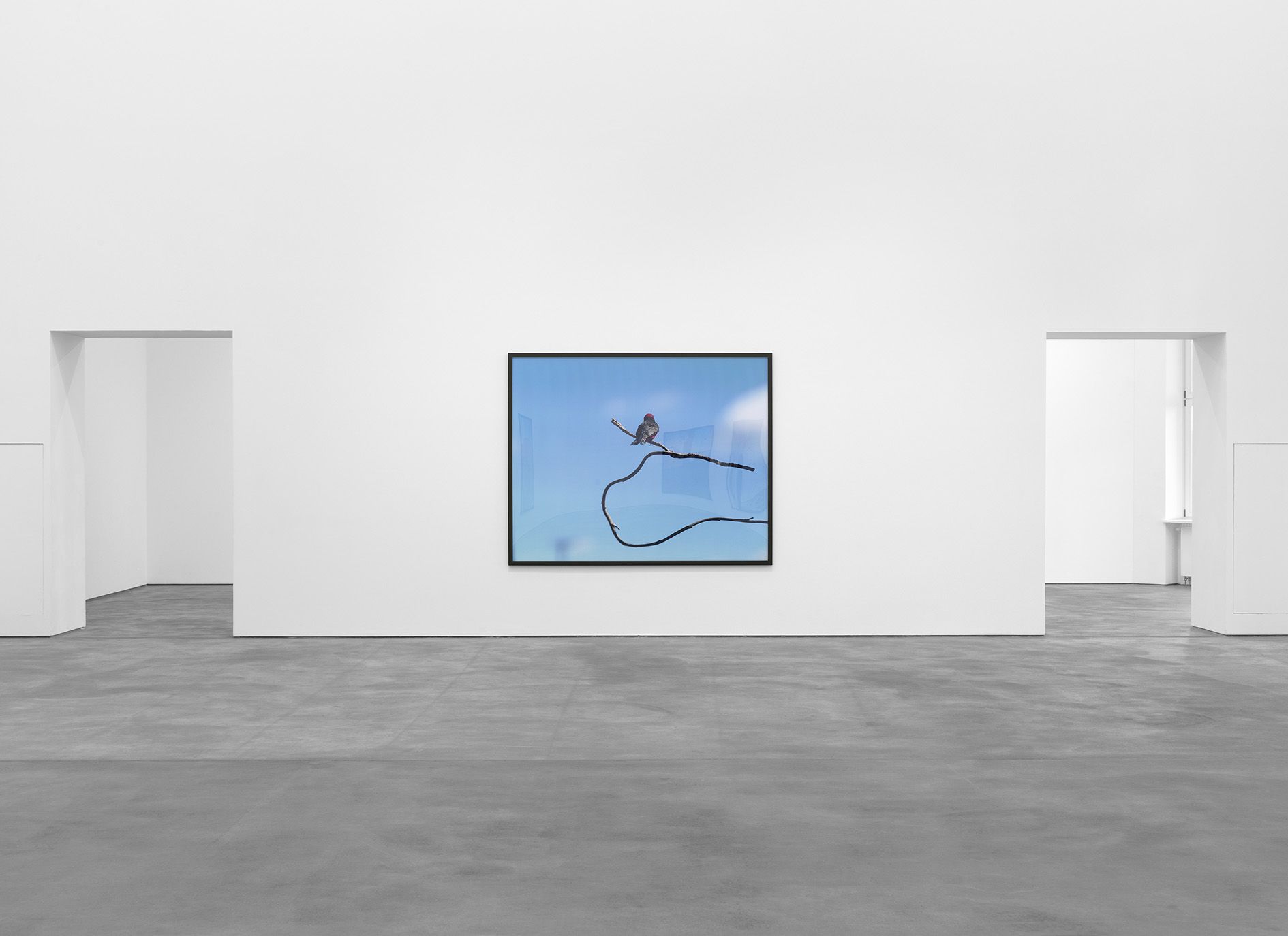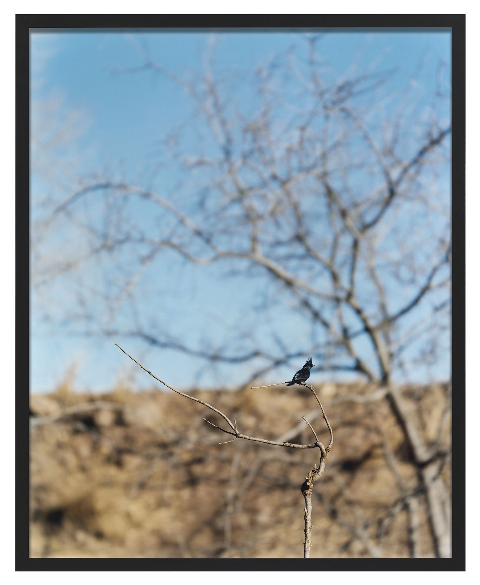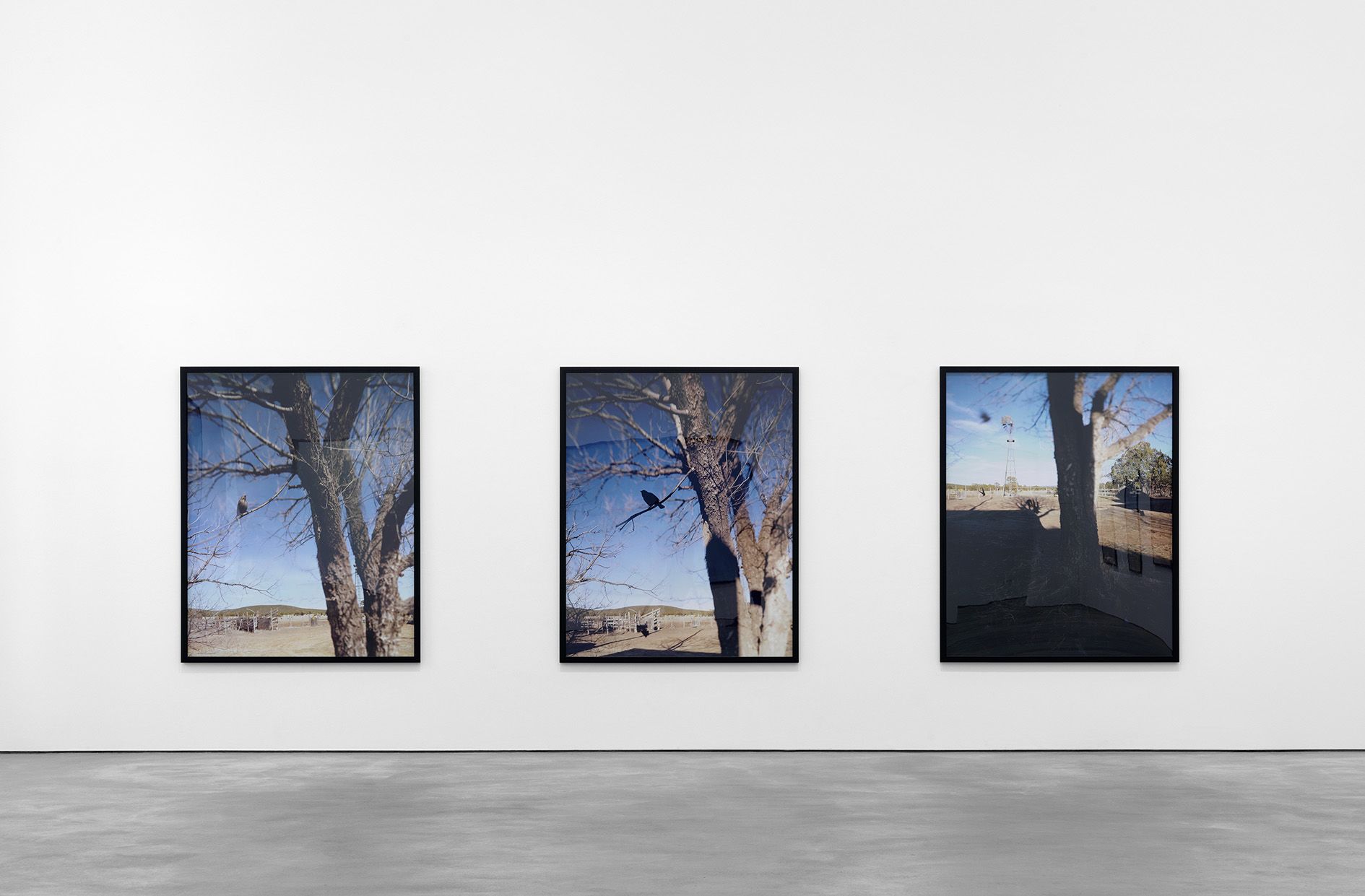 Jean-Luc Mylayne has remained unremittingly interested in philosophical issues which examine the concept of existence and the experience of time. Proceeding from his activities as a philosopher and poet, he pursues investigations in his artistic work, through the medium of photography, in which he focuses on the motif of birds living in the wild as a metaphor for his philosophical research. In a time-consuming procedure, for the last more than thirty-five years, on journeys through the entire European continent as well as in America, the artist has observed songbirds such as sparrows, thrushes, and wrens. He shows them in secluded wilderness settings as well as in proximity to rural settlements and agricultural operations, which he considers to be sites of transition between civilization and nature. Besides areas in his native country of France, Mylayne has spent extended periods of time shooting his pictures in Santa Fe, New Mexico and in Fort Davis, Texas. His nomadic way of life is based on comprehensive research with respect to the habitats of these animals and, like a natural scientist, he comes back to the same places again and again. Some aspects of Mylayne’s working mode are the exploration of the terrain, the establishment of the photographic setting, the period during which the birds get used to the new situation, and the alert waiting over a period of several months. As a patient observer, Mylayne builds up a trusting relationship with the animals and immerses himself without interventions in the world which he is investigating until finally, at a moment determined by him beforehand, he records it. In contrast to the photographer of wild animals, who searches for spectacular views, Mylayne’s goal is to produce an autonomous image which represents and stores the instant when the picture is taken as a temporal continuum. The work titles likewise emphasize the importance of the passage of time: They consist of an ongoing enumeration and an indication of the months during which the pictures were created. Most of the time, Mylayne produces his photographs as single copies, and they become part of a longtime pictorial archive in which the individual works stand in relation to each other.