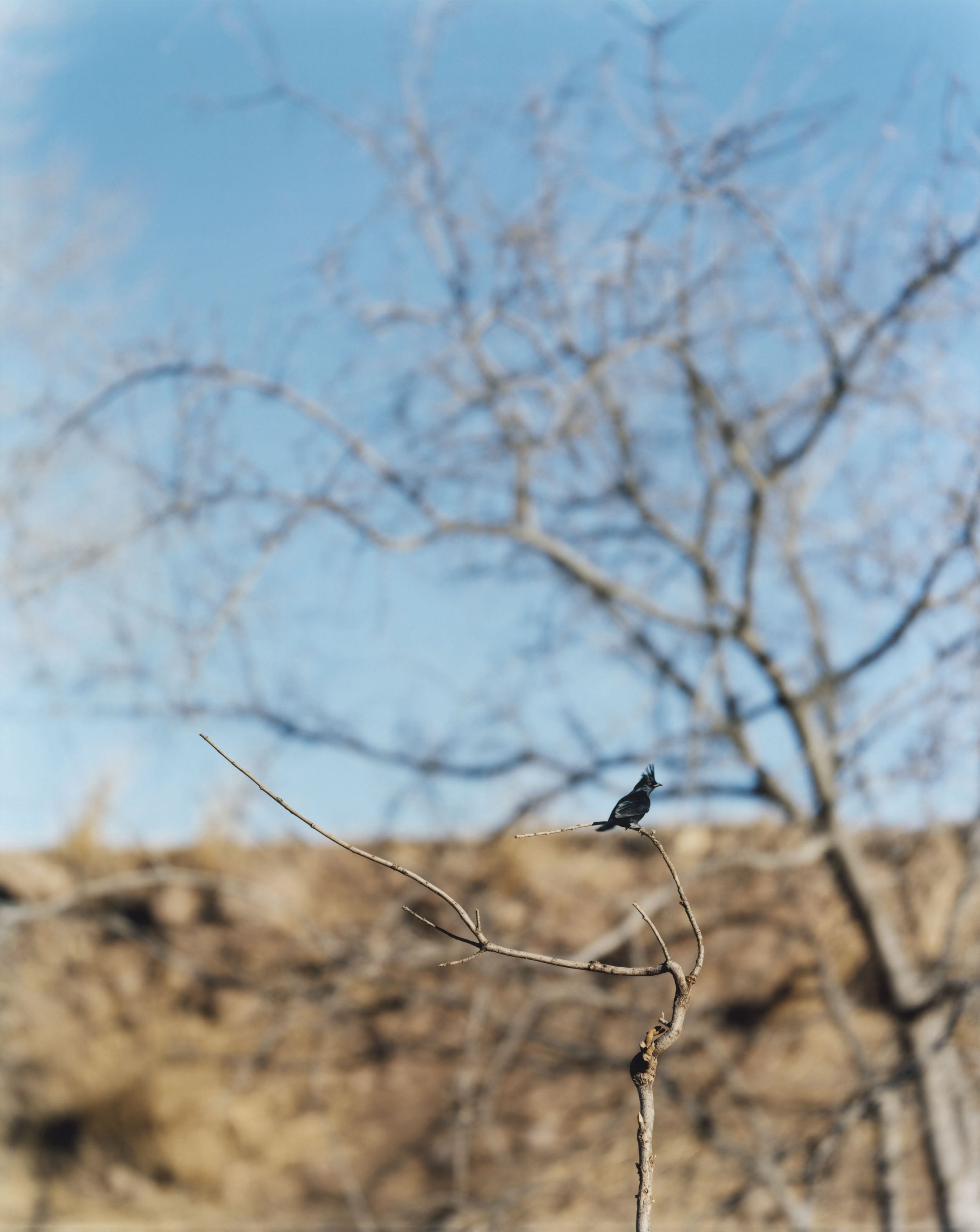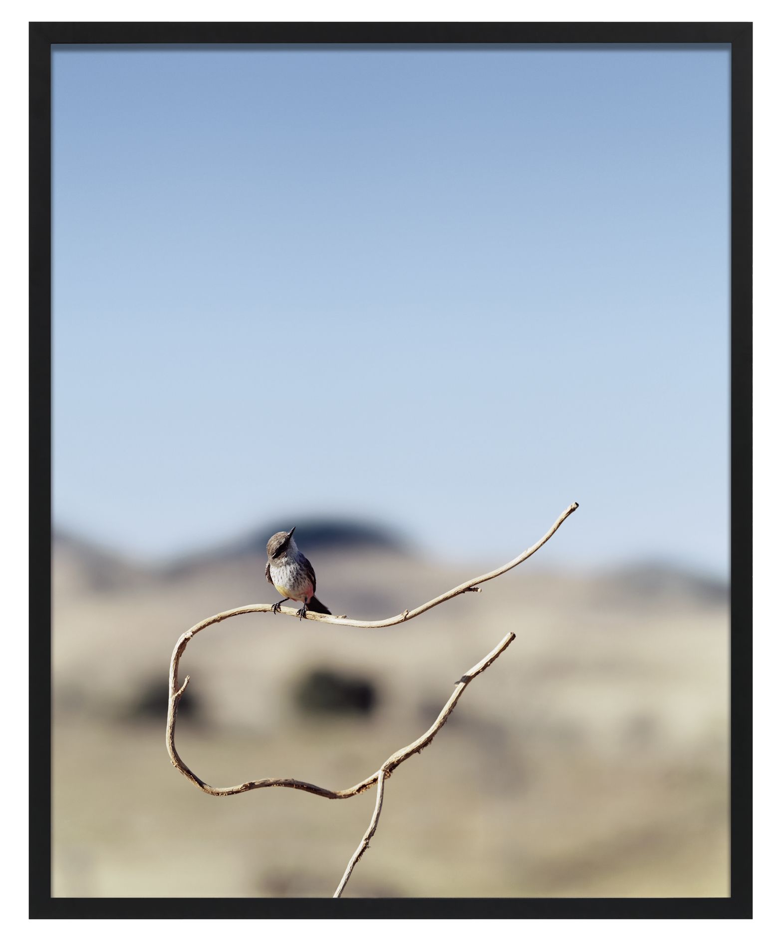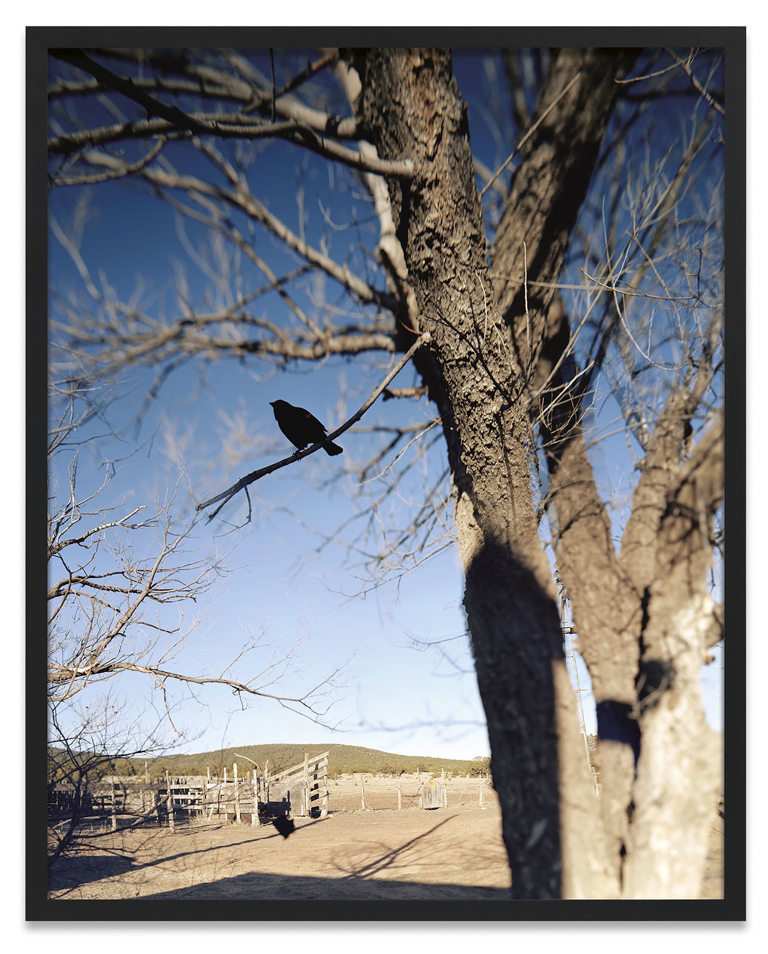 Jean-Luc Mylayne has remained unremittingly interested in philosophical issues which examine the concept of existence and the experience of time. Proceeding from his activities as a philosopher and poet, he pursues investigations in his artistic work, through the medium of photography, in which he focuses on the motif of birds living in the wild as a metaphor for his philosophical research. In a time-consuming procedure, for the last more than thirty-five years, on journeys through the entire European continent as well as in America, the artist has observed songbirds such as sparrows, thrushes, and wrens. He shows them in secluded wilderness settings as well as in proximity to rural settlements and agricultural operations, which he considers to be sites of transition between civilization and nature. Besides areas in his native country of France, Mylayne has spent extended periods of time shooting his pictures in Santa Fe, New Mexico and in Fort Davis, Texas. His nomadic way of life is based on comprehensive research with respect to the habitats of these animals and, like a natural scientist, he comes back to the same places again and again. Some aspects of Mylayne’s working mode are the exploration of the terrain, the establishment of the photographic setting, the period during which the birds get used to the new situation, and the alert waiting over a period of several months. As a patient observer, Mylayne builds up a trusting relationship with the animals and immerses himself without interventions in the world which he is investigating until finally, at a moment determined by him beforehand, he records it. In contrast to the photographer of wild animals, who searches for spectacular views, Mylayne’s goal is to produce an autonomous image which represents and stores the instant when the picture is taken as a temporal continuum. The work titles likewise emphasize the importance of the passage of time: They consist of an ongoing enumeration and an indication of the months during which the pictures were created. Most of the time, Mylayne produces his photographs as single copies, and they become part of a longtime pictorial archive in which the individual works stand in relation to each other.