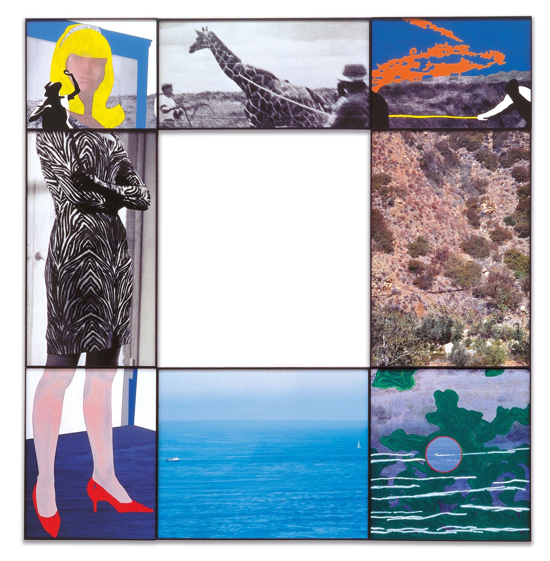 Baldessari's photo-collages tell stories with many missing links; this discontinuity, the invisible and the unknown evoke personal as well as collective readings. "I really care about meaning in art. I want things to look simple, but to raise issues and to have more than one level of comprehension".