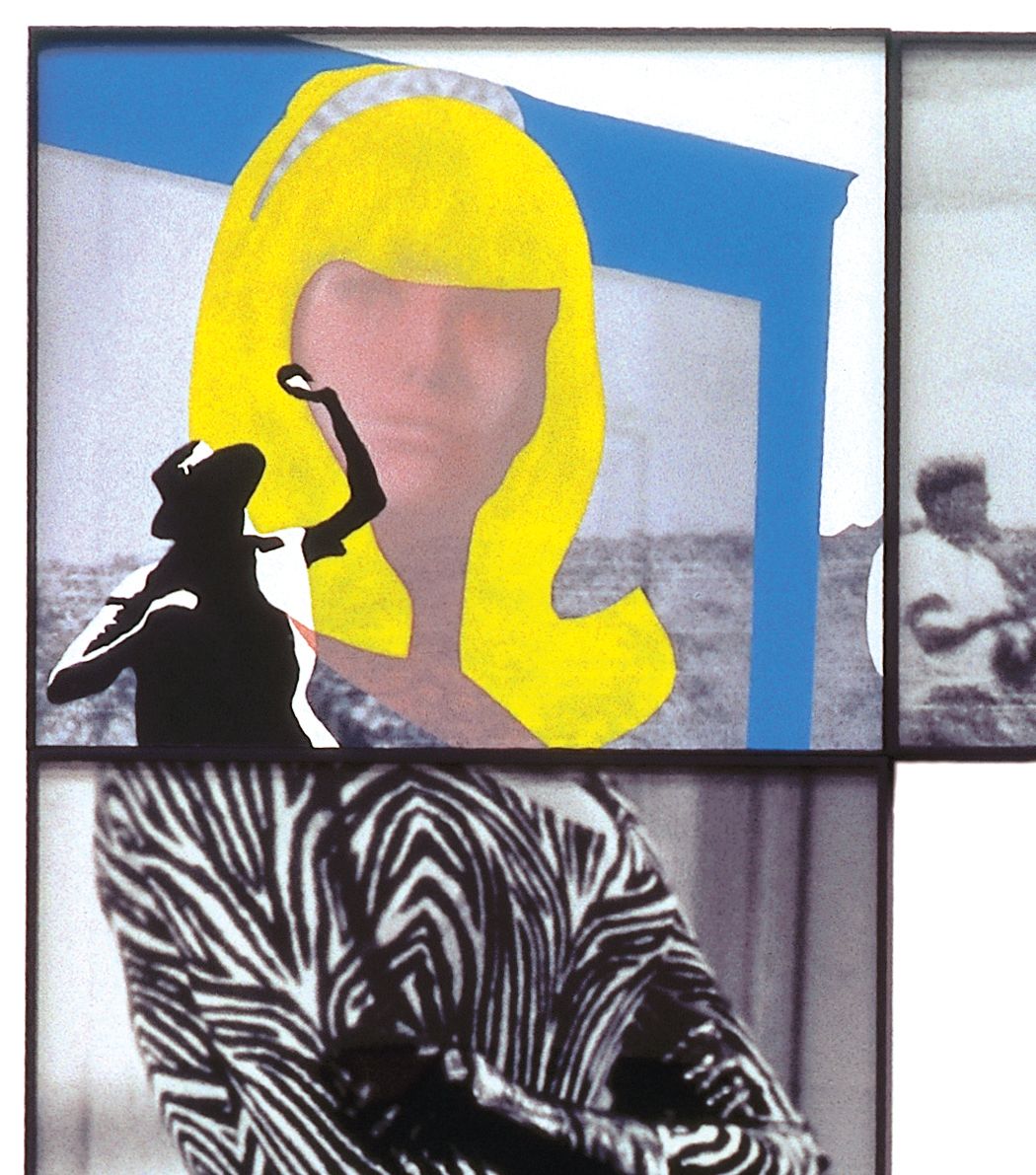 The exhibition includes works from the INTERSECTION SERIES, on which Baldessari has been working since the beginning of the year. He takes found pictures of different provenance, arranges them in cross and T-shapes and in this way overlaps, i.e. formally crosses, as in a double exposure, manifesting a new level, which he reworks with painterly means.