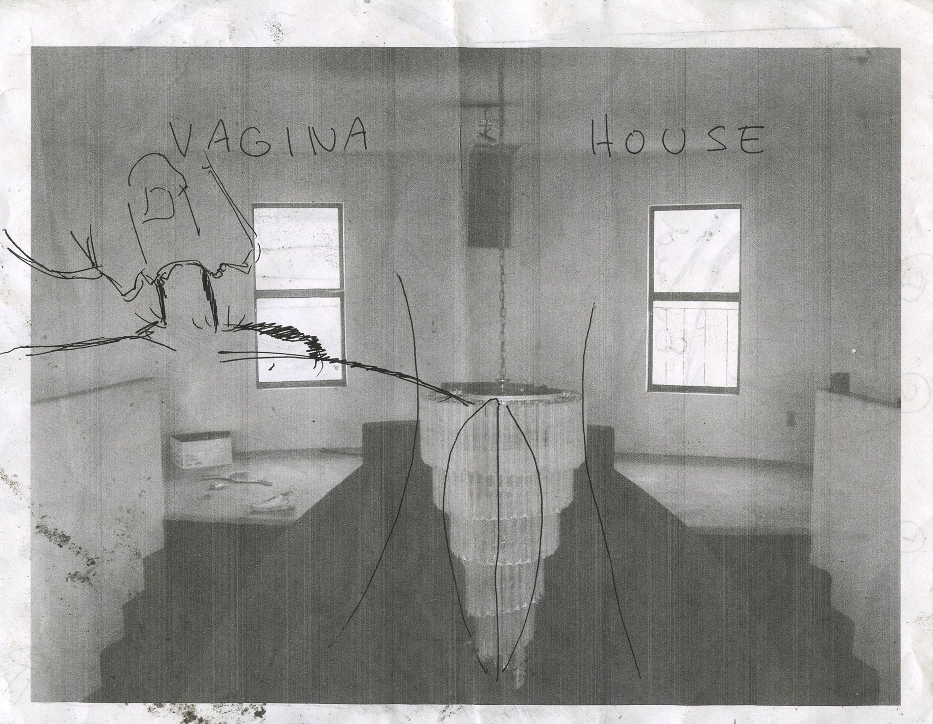 Kaari Upson, untitled sketch, photocopy of a photograph of the central staircase in Larry’s house, date unknown