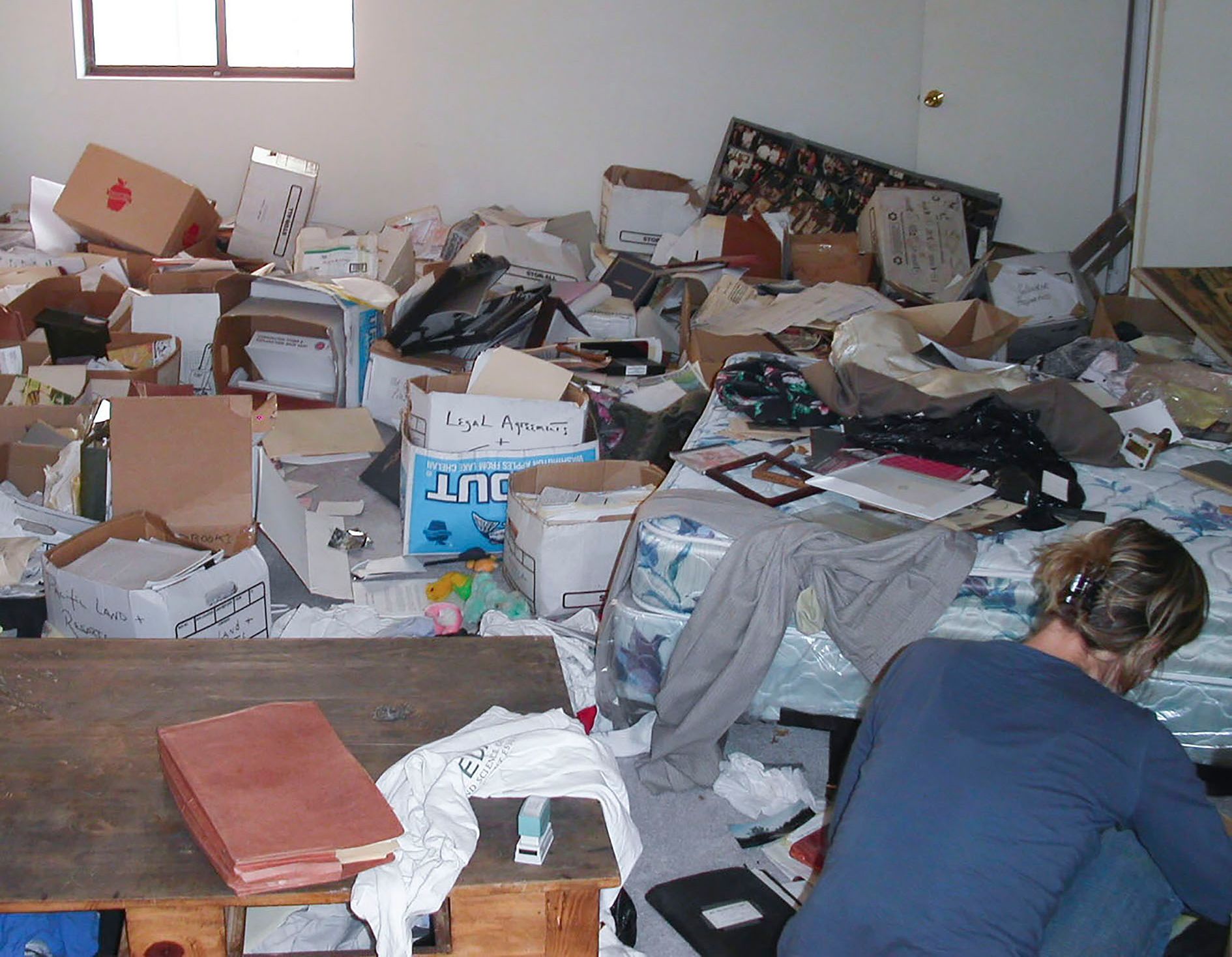 Kaari Upson in Larry’s house among his abandoned personal affairs, 2003
