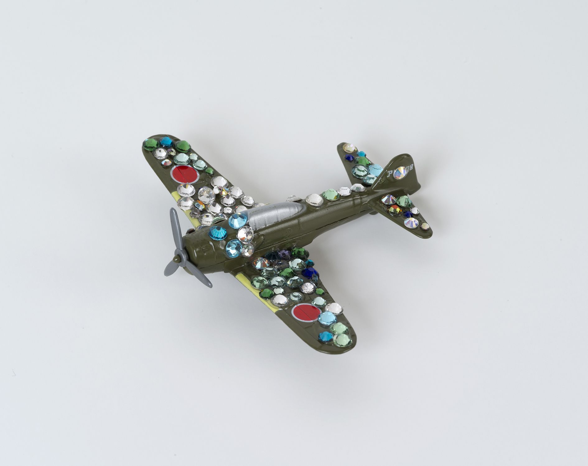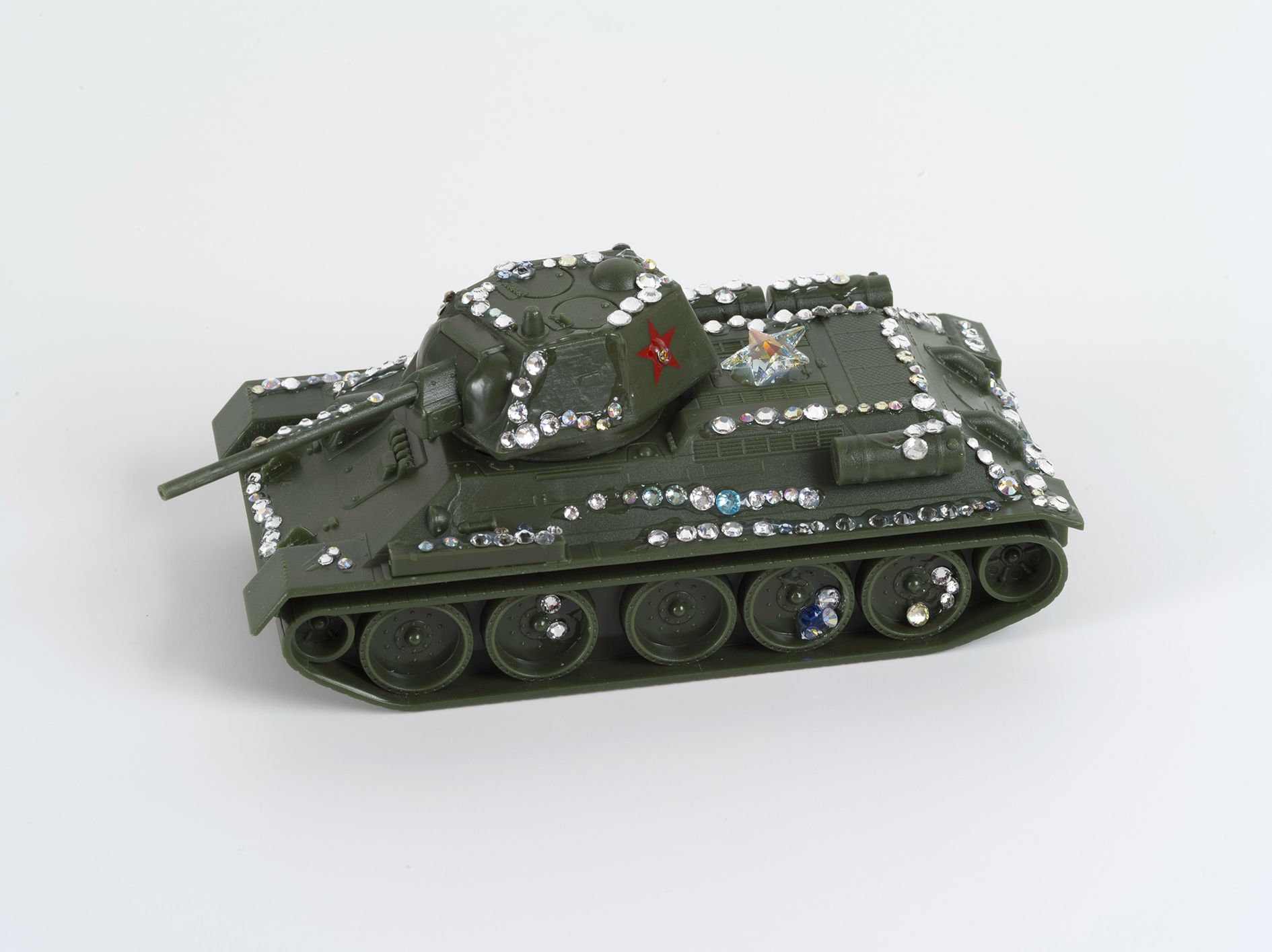 The toy planes that Kilimnik uses in the photographs will also be exhibited. The model Spitfires and Lancaster bombers, encrusted in jewels and placed on plinths, become decorative objects, useless even as toys or models. The rituals and tableaux depicted in the photographs might be taking place in the grounds of an aristocratic chateau or in the forests of Burgundy, alongside some of the most famous and prestigious vineyards in the world.