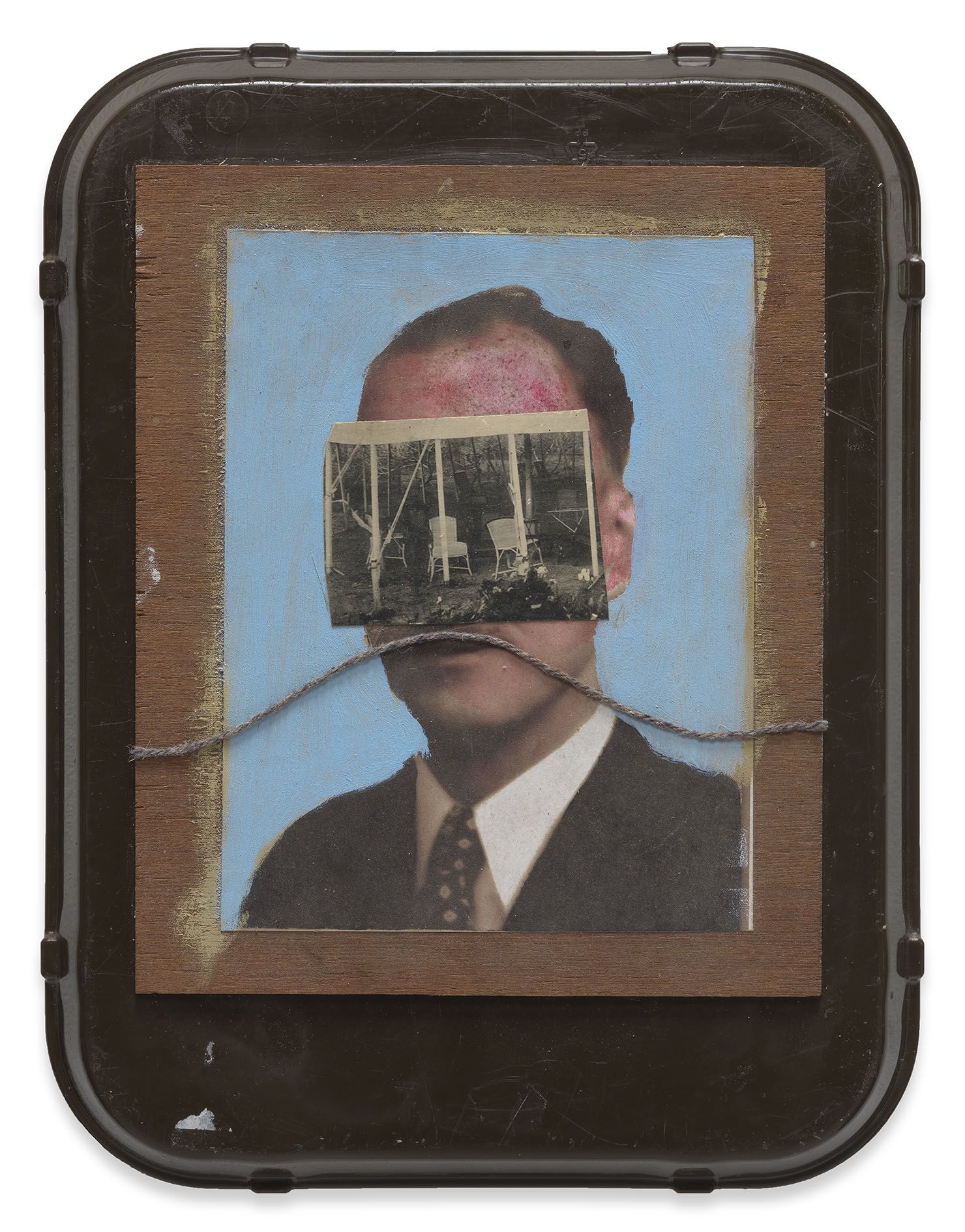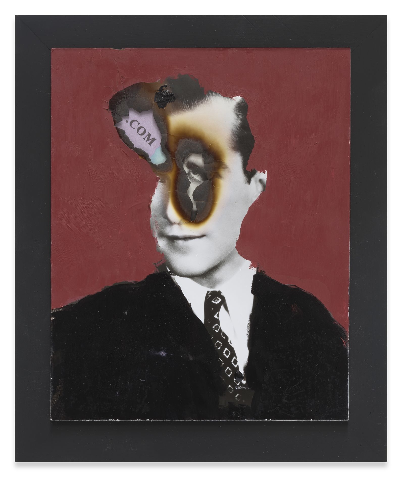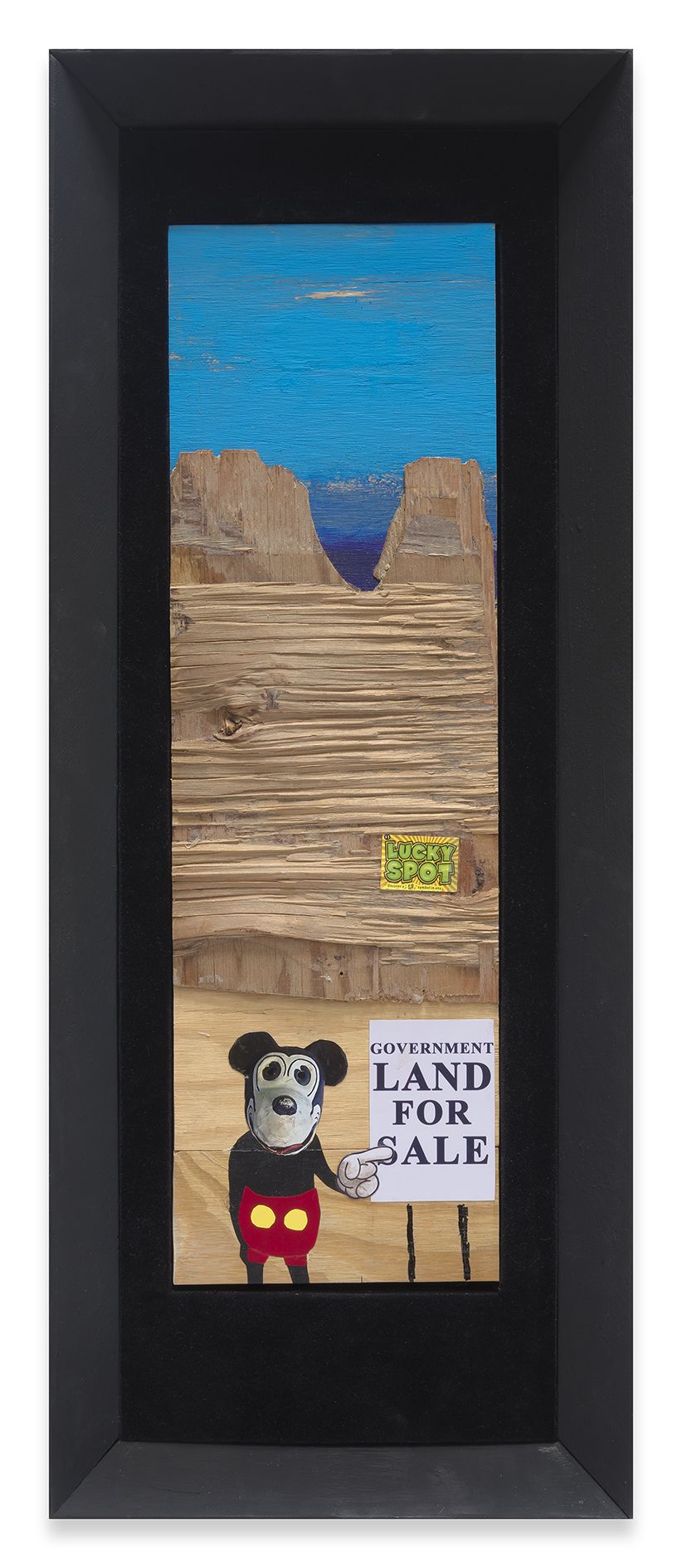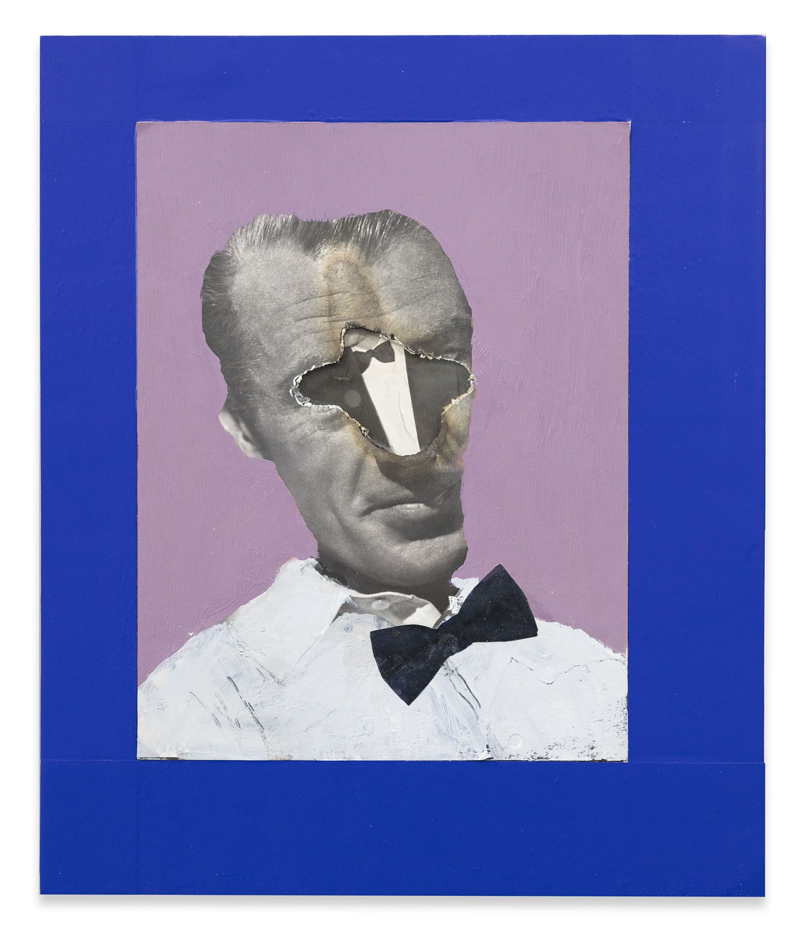 Foulkes’ recent paintings incorporate his usual artistic paraphernalia, including paint, wood, photographs and numerous found objects. Yet he has also added new techniques to his repertoire. In several portraits on view, glamorous black-and-white movie headshots, which Foulkes sourced from flea markets and shops around Los Angeles, are layered atop one another. The artist has burned holes into their faces so that those of other long-lost actors show through, digging back through time to reveal forgotten lives and aspirations. In two larger works, more familiar figures take center stage: He’ll Always Be Here depicts the artist and his recurring nemesis, Mickey Mouse, who materializes from the wood grain above him like a hovering storm cloud. In The Wall, Foulkes’ latest declaration against the current President of the United States, an open-mouthed Trump has tumbled from a brick façade like a pitiful Humpty Dumpty figure. Presented in Berlin, this work poignantly recalls German history and the social and psychological damage that border walls inflict.