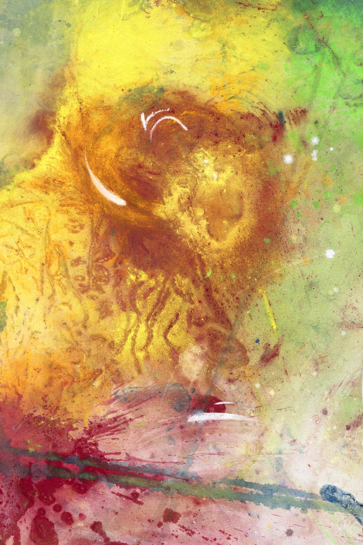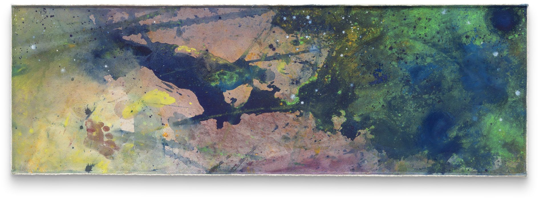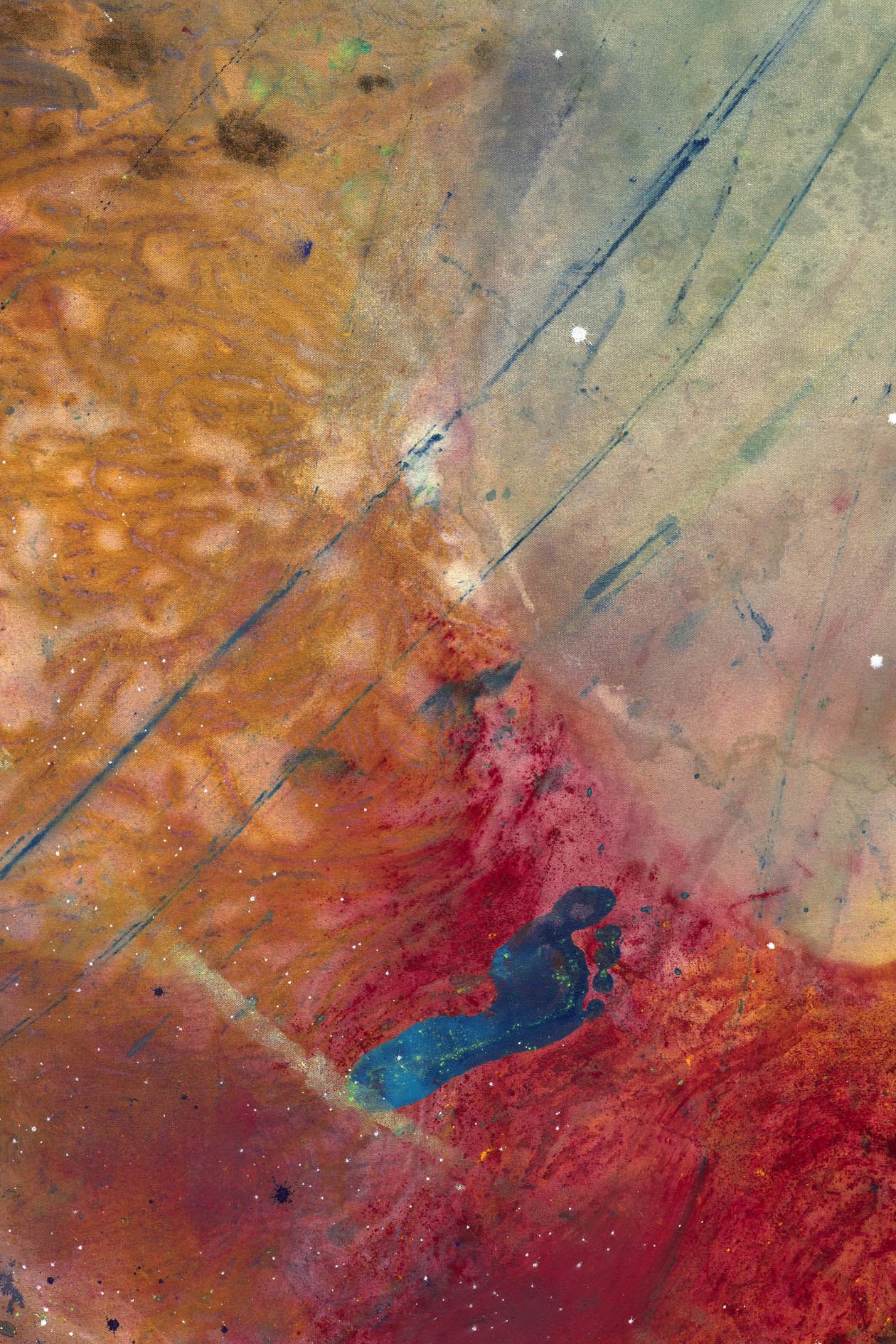 Black walnut, SCOBY, lapis, cochineal, black lichen, tulip petal extract, Foss leaf extract, onion skin, malachite, vivianite, azurite and acrylic on canvas