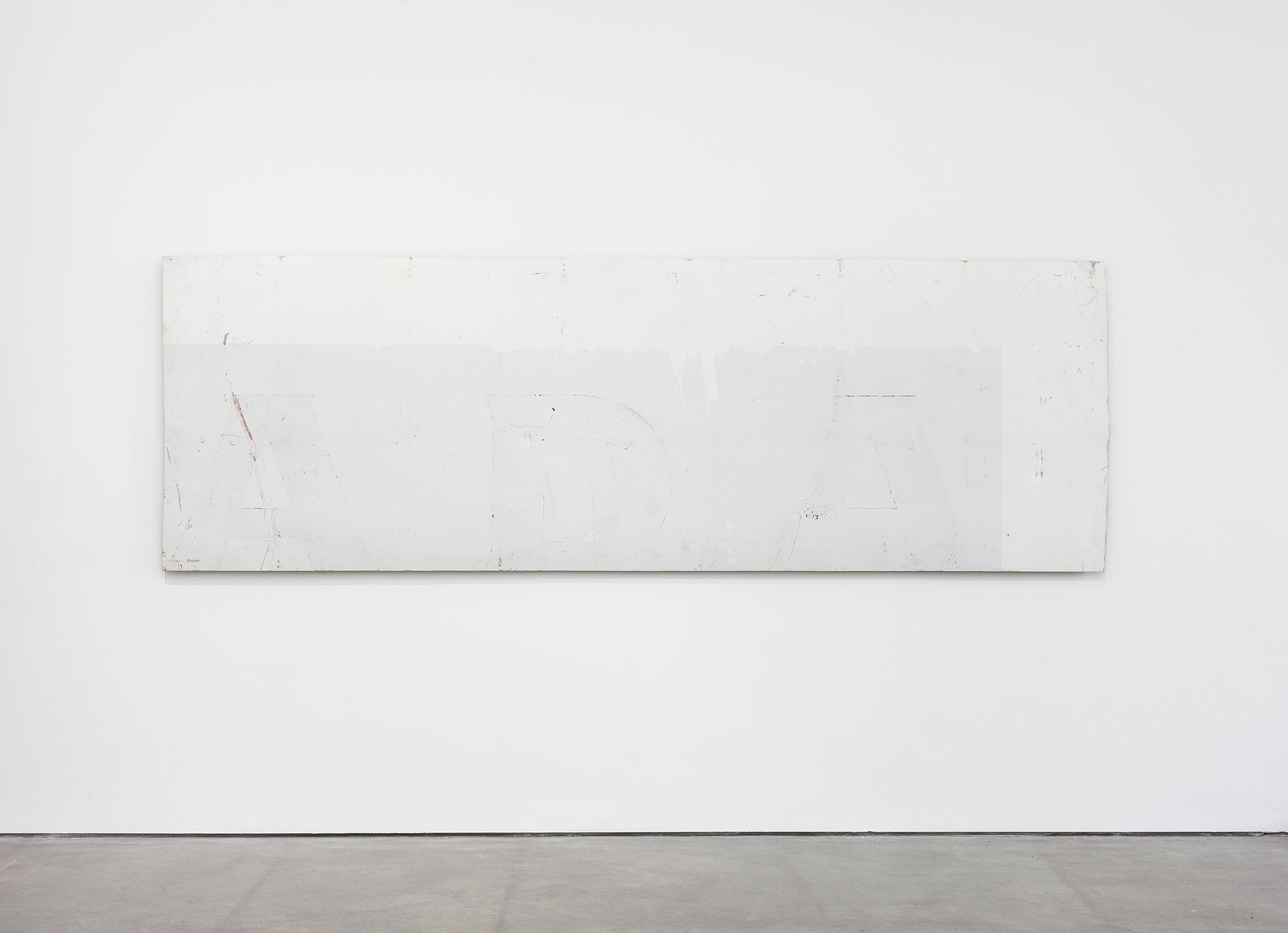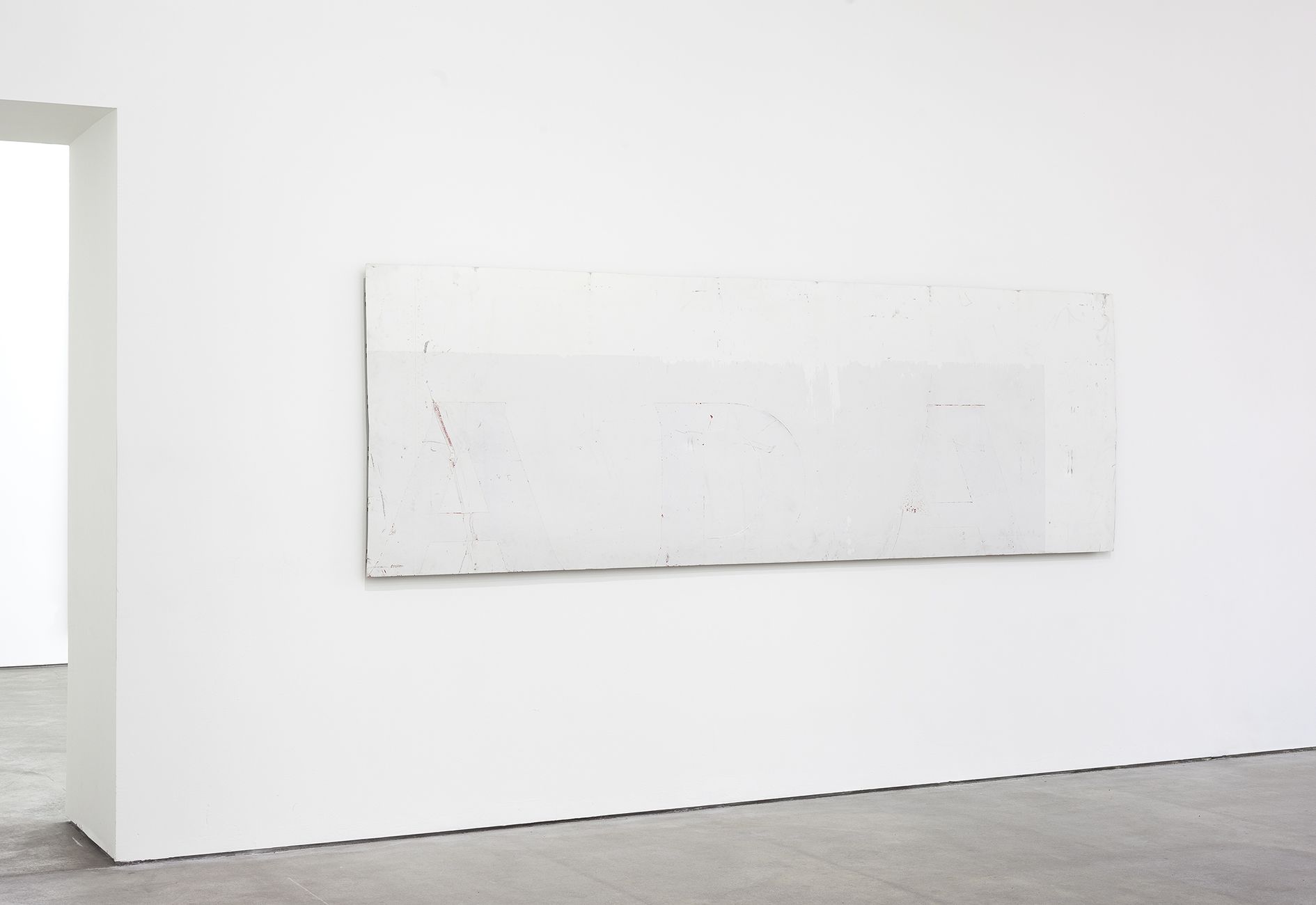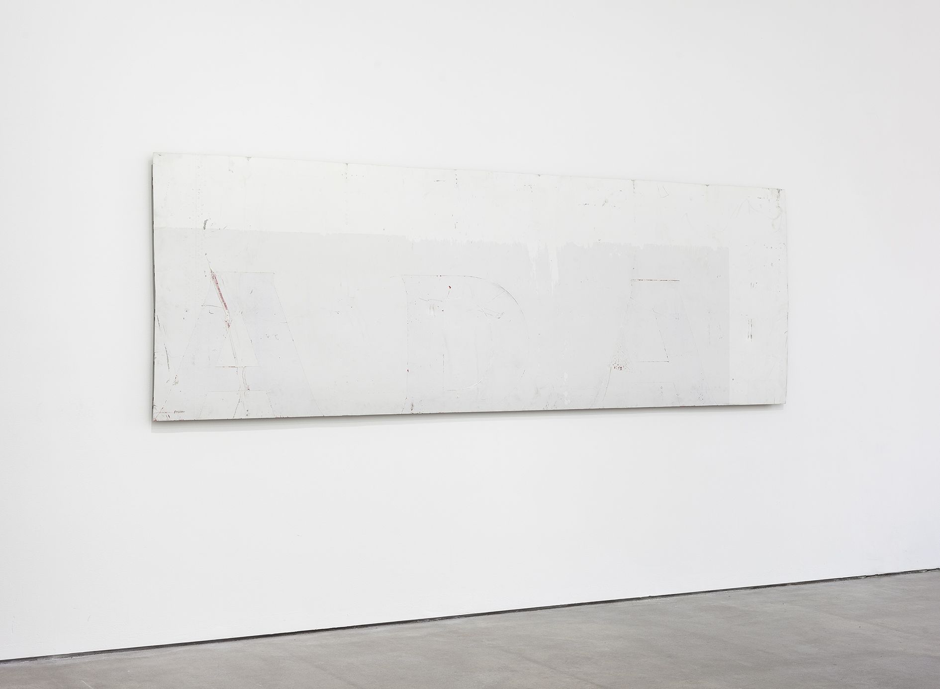Michail Pirgelis finds the material for the majority of his works on airplane cemeteries in California and Arizona, where discarded passenger planes await their dismantling and the recycling of their valuable aluminium and titanium alloys. Pirgelis removes individual segments from the gigantic aeronautical bodies, for further modification in his studio. For adopted he has left some of them in their original state, such as the brake mechanism of the work Onera, almost three meters in size and reminiscent of a cross. On other airplane components such as the canvas-sized, rectangular fragments of an airplane’s exterior skin, he has partially exposed the metal beneath the coat of lacquer. Likewise he has sanded and polished the calotte in When it is called moment – a component from the fuselage of an airplane, responsible for cabin pressurisation, normally invisible to passengers – until its curved aluminium surface resembles a convex mirror. Together with another calotte it looms in a concentric configuration into the exhibition space. Finally, for the work Beer or Wine, Pirgelis has mounted flexible airplane cabin flooring, which still retain all the traces of adhesive, screws, and the holes for seat legs, on an invisible base with a suspension mechanism.