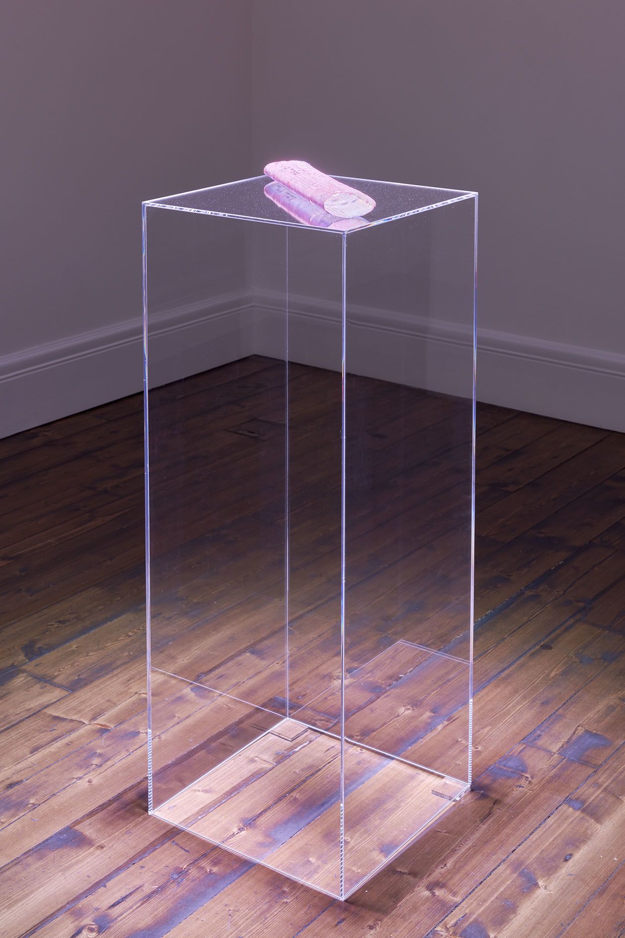 Perspex plinth: 15 × 15 × 39 3/8 inches