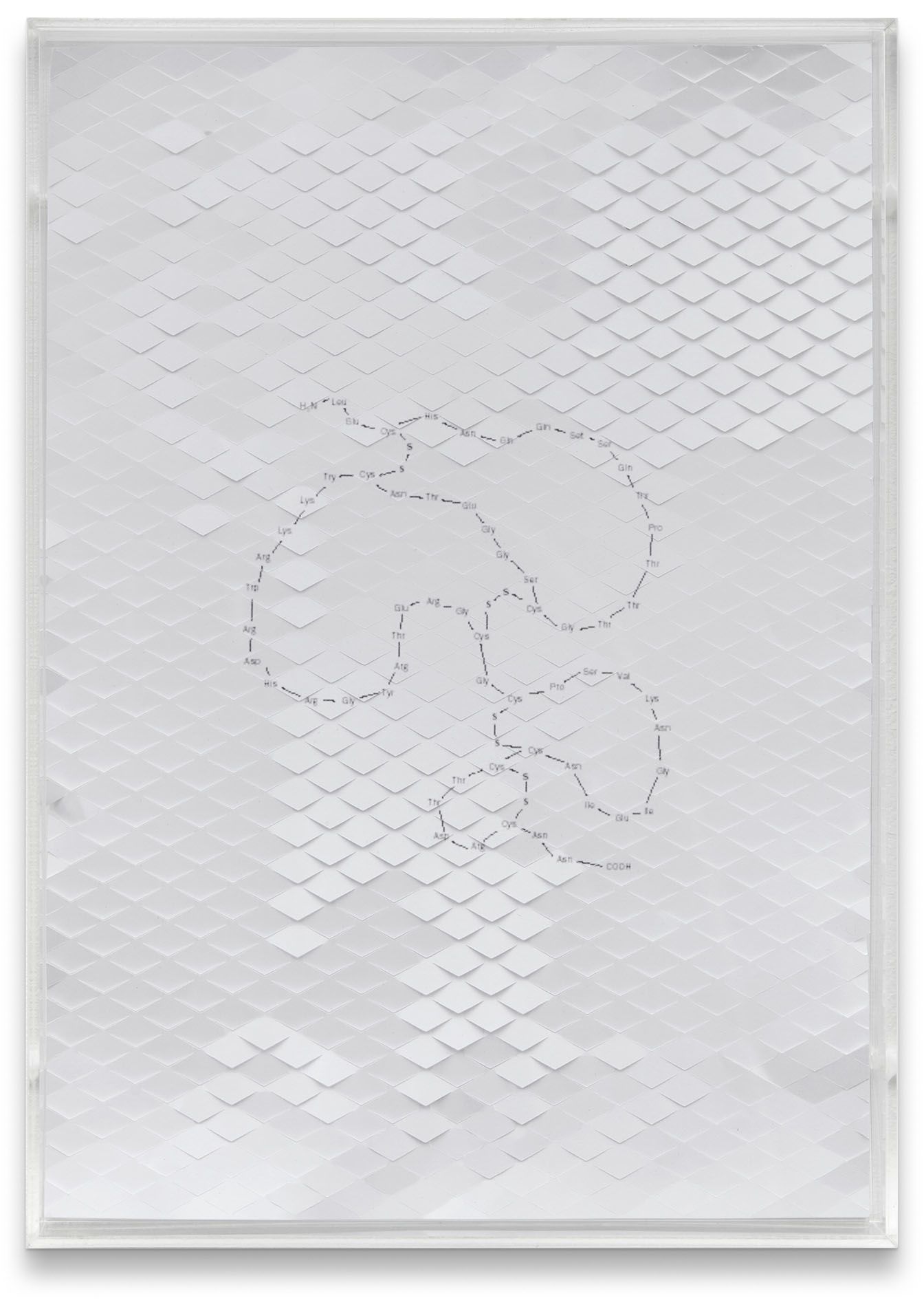 Kirigami skin, acrylic, perspex plinth, LED projector, light