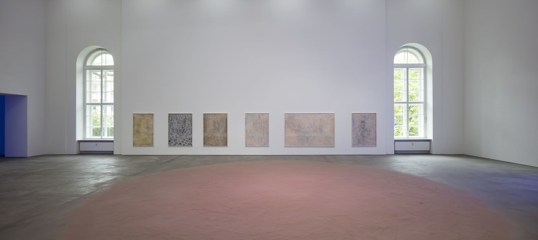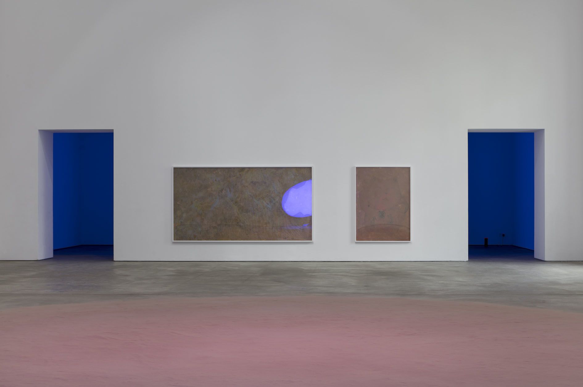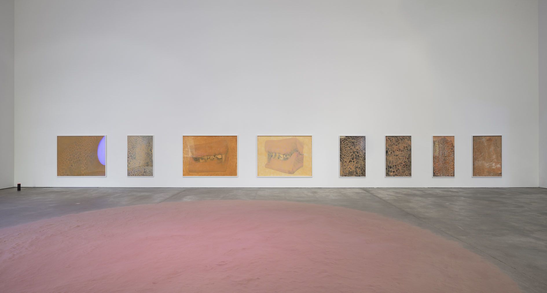 She Has No Mouth is Pamela Rosenkranz’s inaugural solo exhibition at Sprüth Magers, Berlin, for which she has developed a new series of paintings and an installation with light, scent, and sound. The works continue her longstanding engagement with the biological and evolutionary underpinnings of art, her investigation of materiality and immateriality, pigments and pheromones, microbes, colors, and scents.