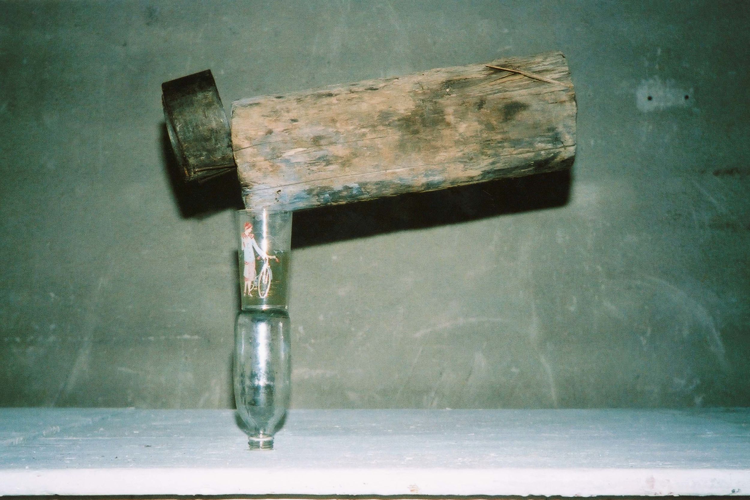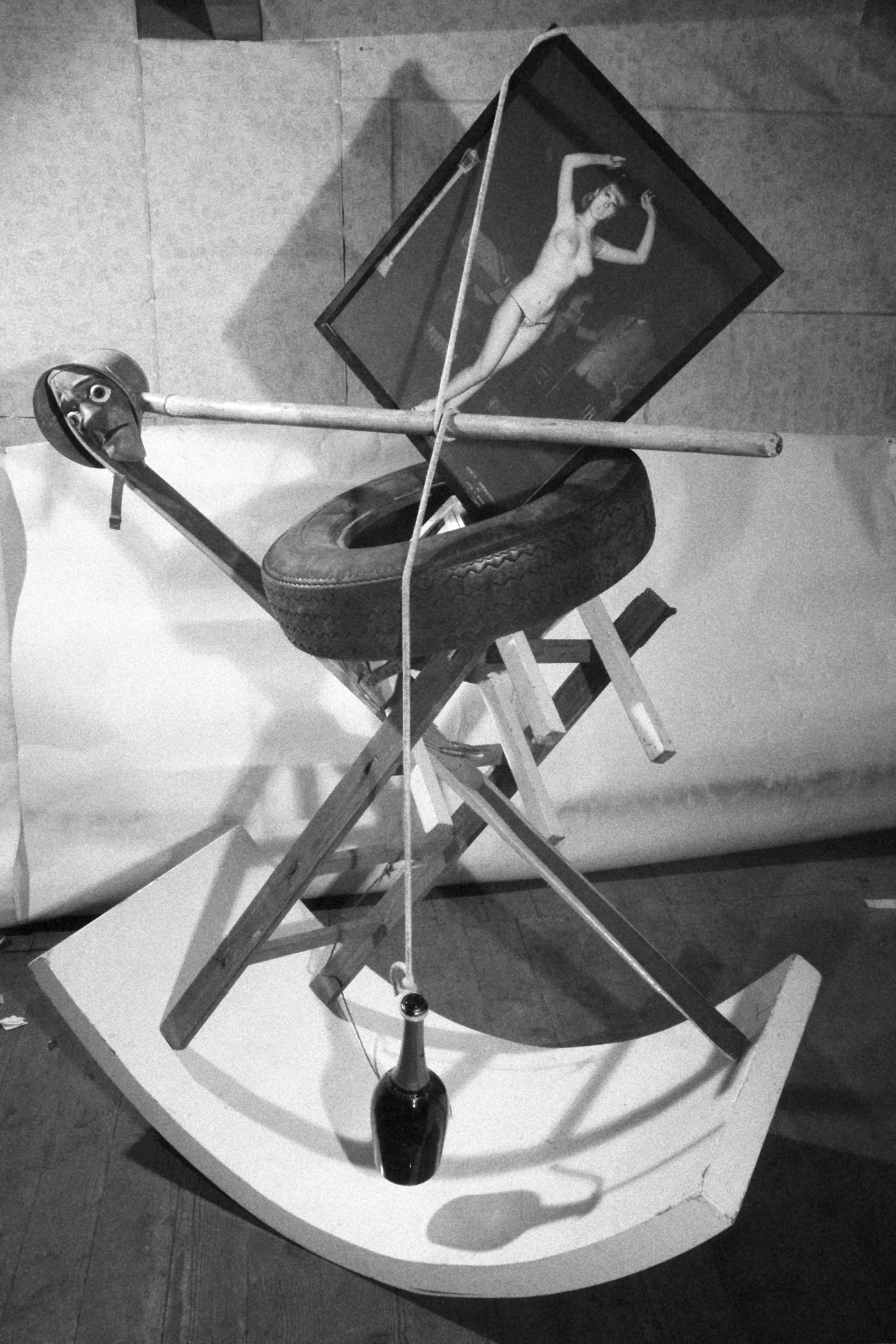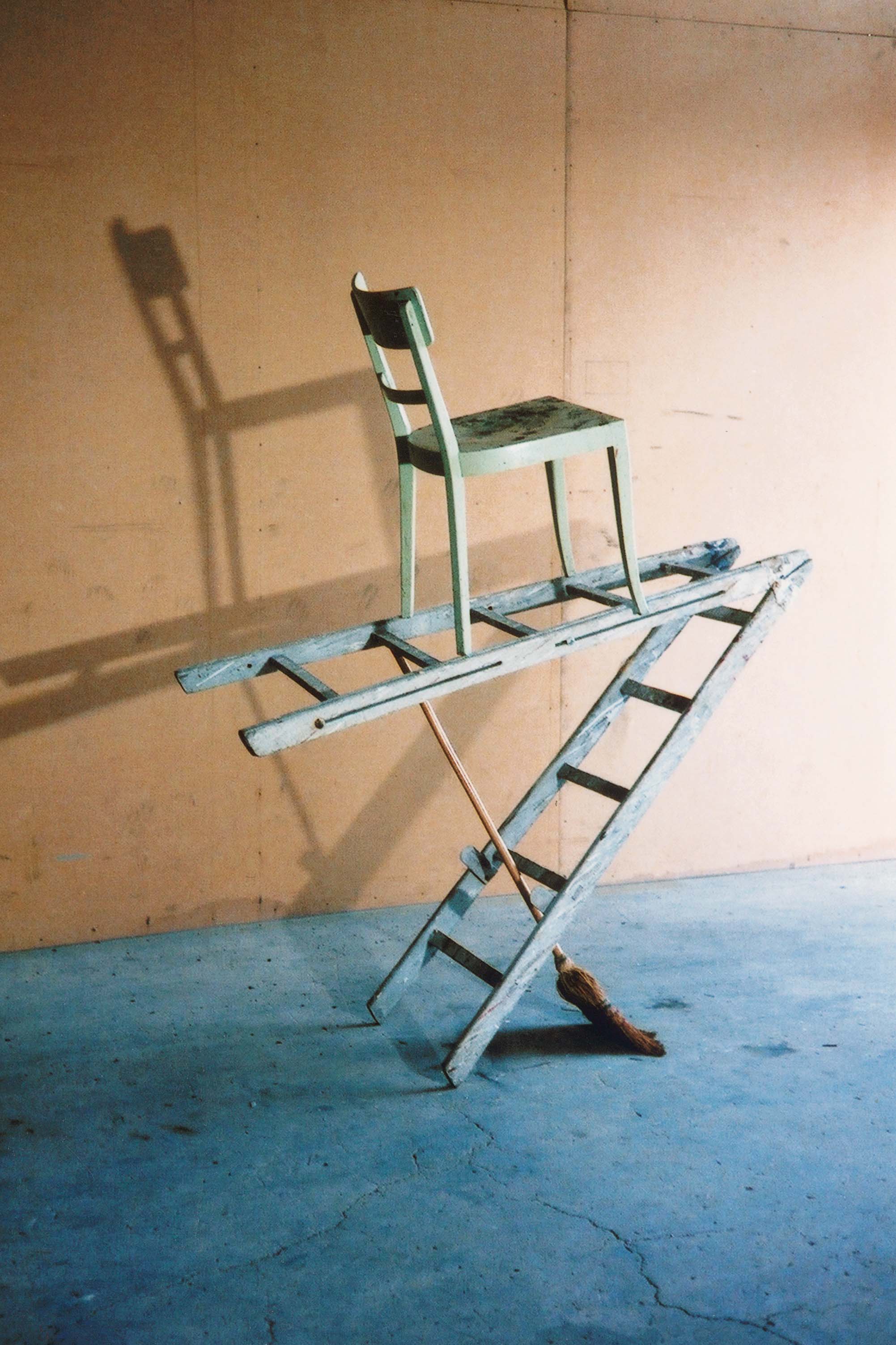 The photographs Equilibres were created in the years 1984 and 1986. It is a series of 82 black-and-white and colour photographs showing assemblages of everyday objects. The attention is drawn to a dizzying construction, with gravity seemingly working in reverse, creating a state of suspension which cancels the weight and the value of the individual components. This is also summarized in the subheading of the Equilibres of Peter Fischli and David Weiss: „Am schönsten ist das Gleichgewicht, kurz bevor’s zusammenbricht.“ („Balance is most beautiful just before it collapses.“)
