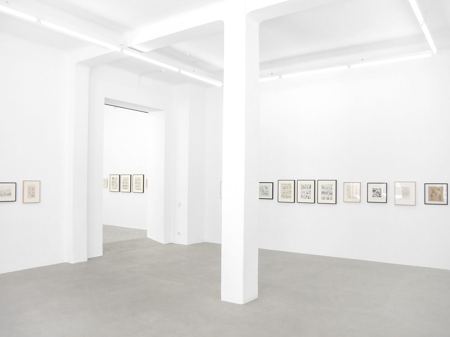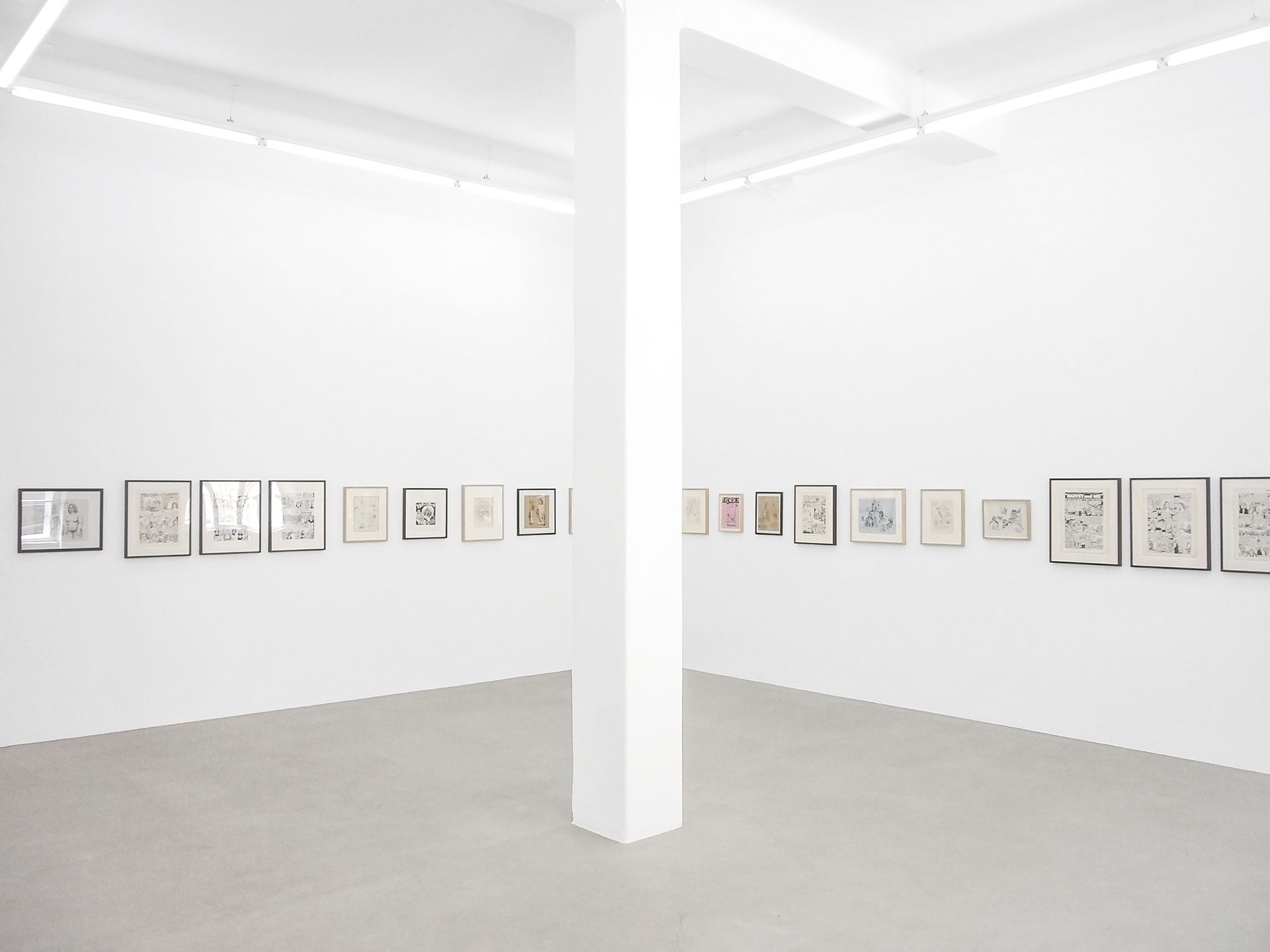 A solo exhibition of Robert Crumb’s work at Sprüth Magers Projekte features a selection of drawings from the 1960s and ‘70s to 2003, in formats ranging from multi-page and shorter comic strips to vignettes, scenes with or without text, sketches, and type studies.