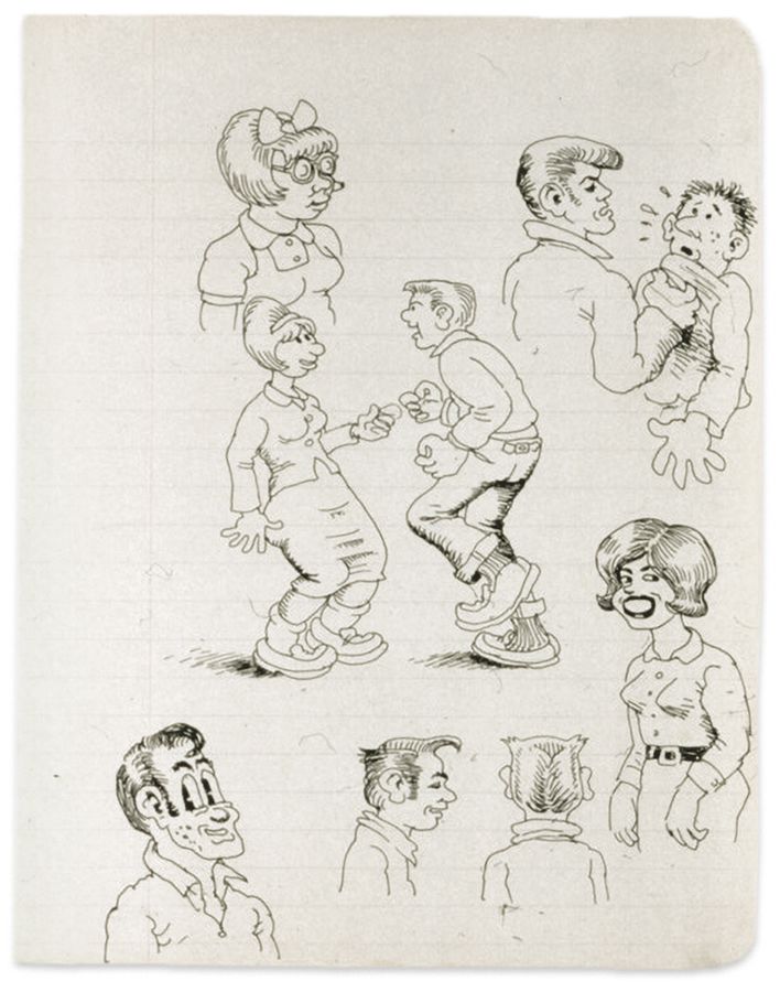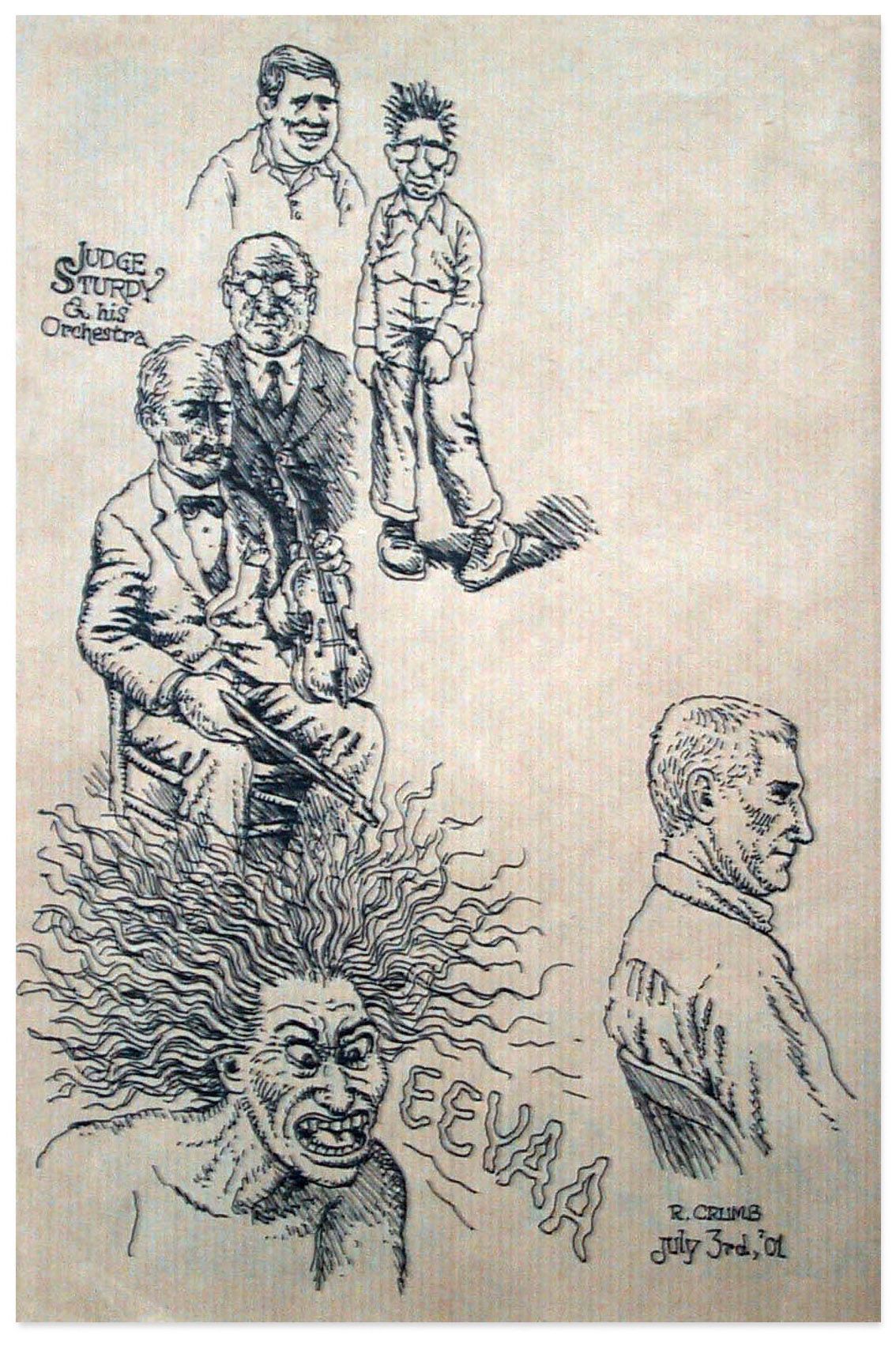 Crumb draws his characters from social observations and current events, rendering them meticulously with an affectionate, if unsparing eye. It is a gaze he has also invariably turned on himself, to the extent that a number of his figures are recognizable alter-egos of the artist.
