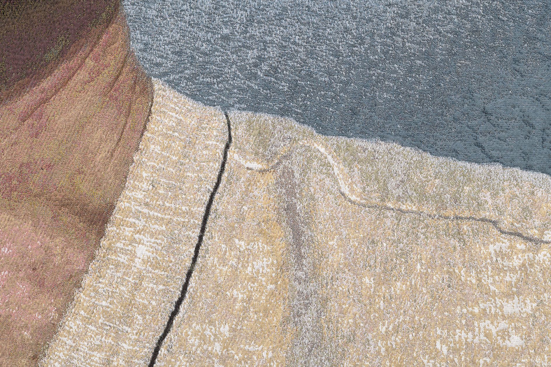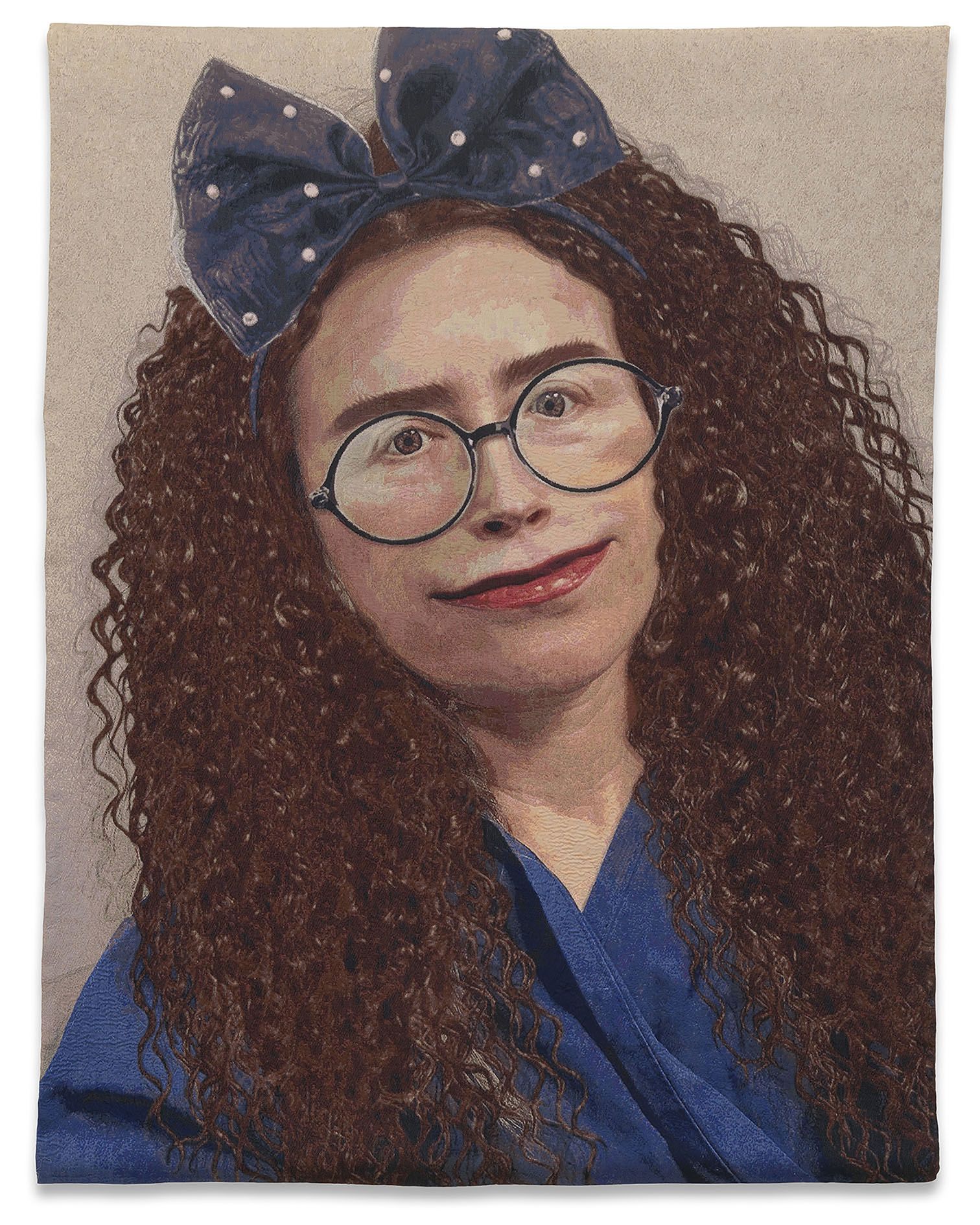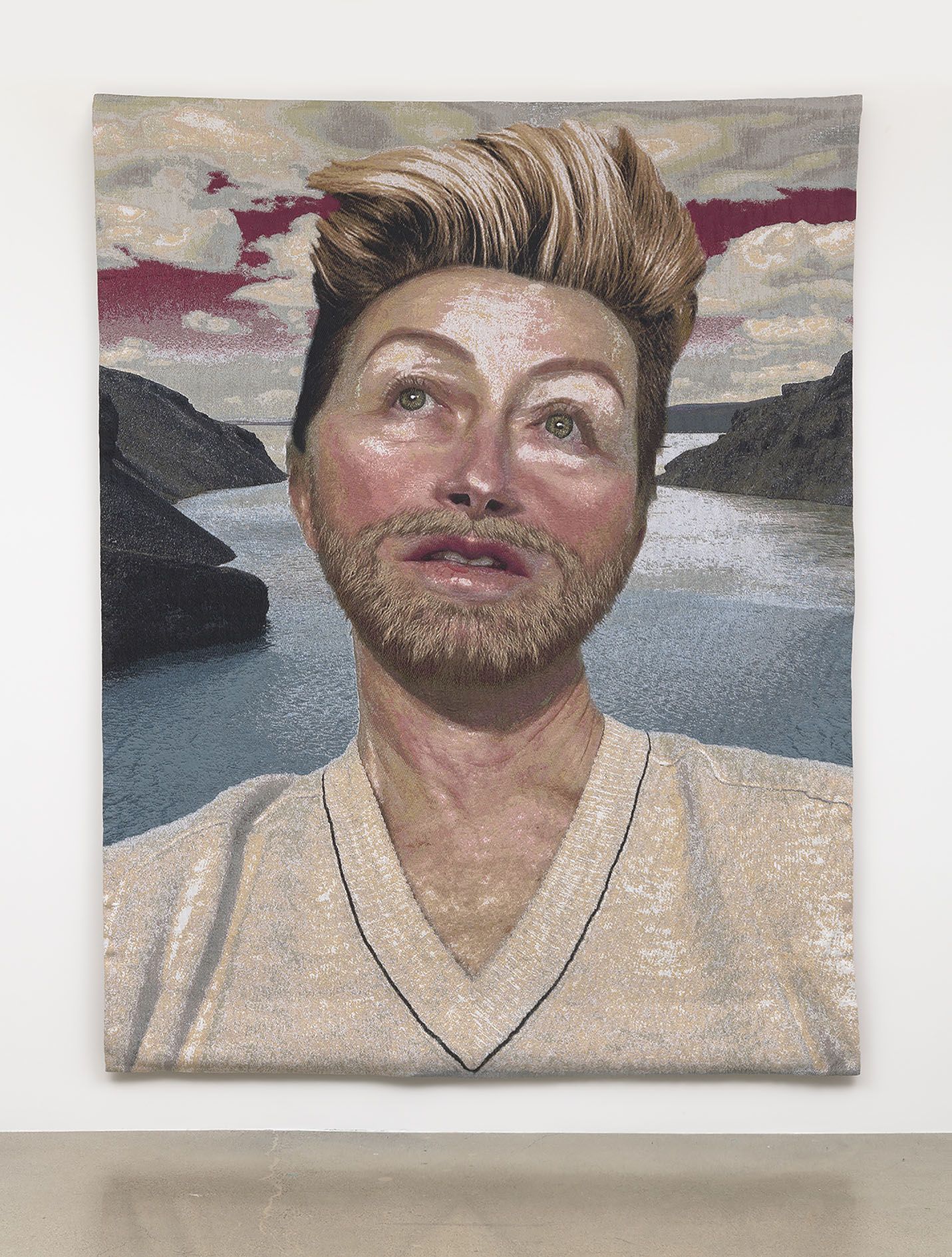 Historically, each work began with a “cartoon” of the image to be woven; the workshop would then set to work transposing that image into thread. Sherman’s tapestries tap directly into this history: Instead of a hand-drawn or painted cartoon, she provides the digitally manipulated image straight from Instagram. Sherman’s tapestries also share the larger-than-life scale of these predecessors, and many include finer, more luxurious silken threads.
