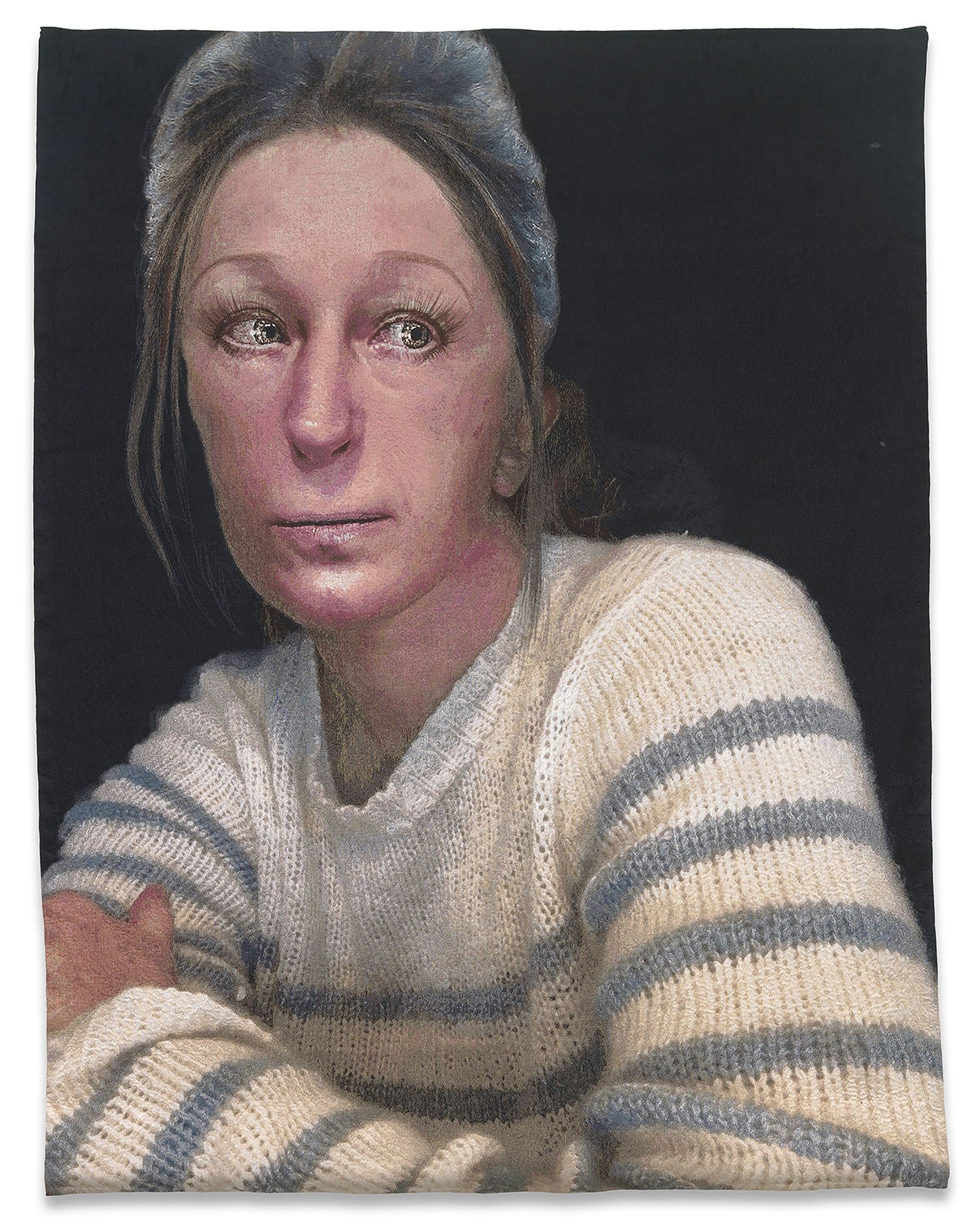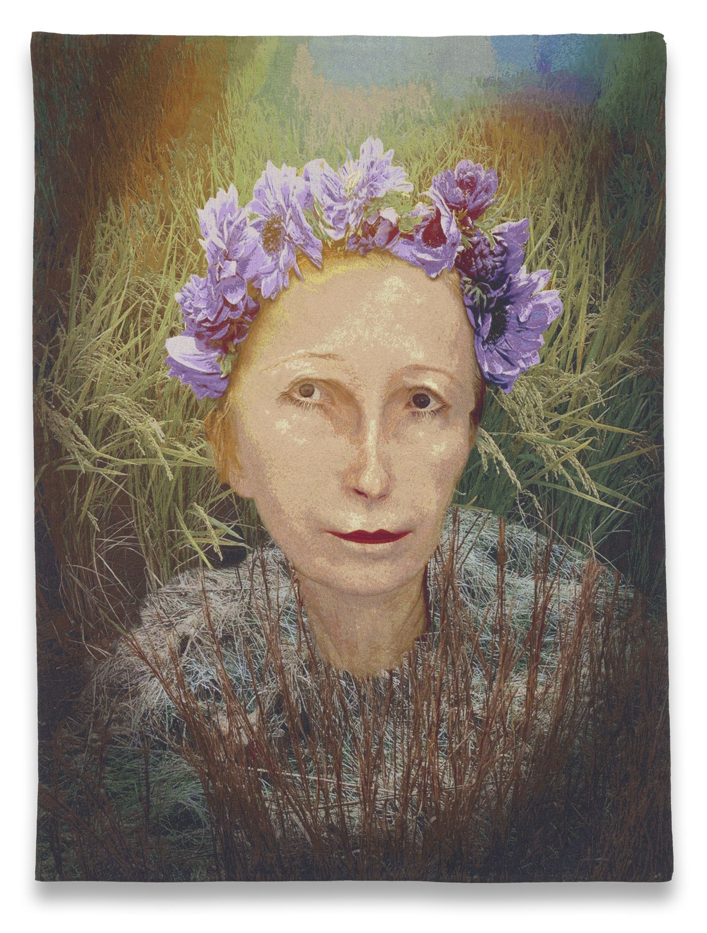 Sherman’s attention throughout her practice both to drama and to fashion connects the work to the long history of tapestry—a medium that in centuries past was valued even more highly than painting. Sherman’s works are produced in Flanders, which saw its golden age of tapestry beginning in the fifteenth and early sixteenth centuries, when weavers developed new techniques that expanded their range of textures and visual effects, as well as the scale and intricacy of their compositions.