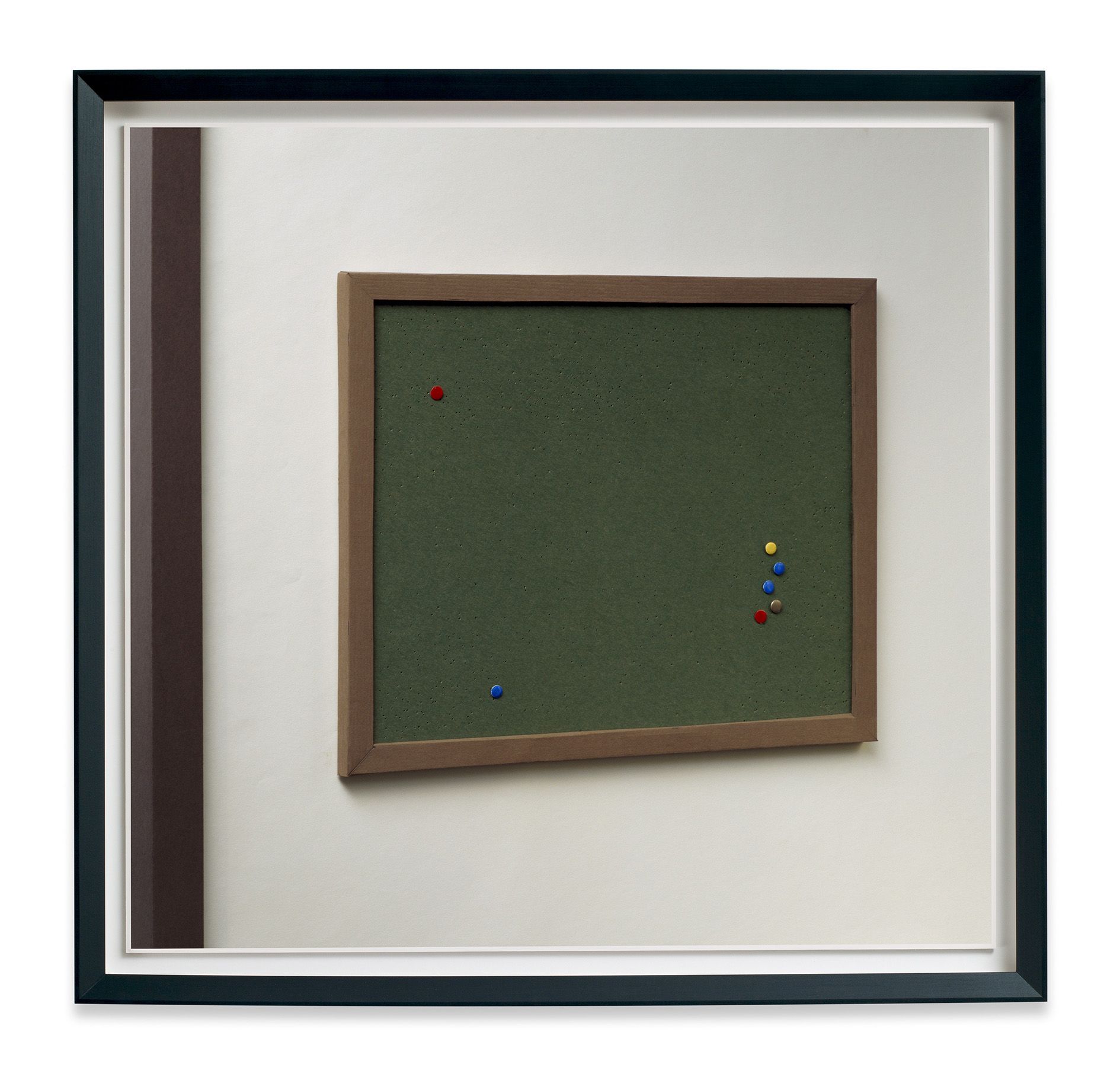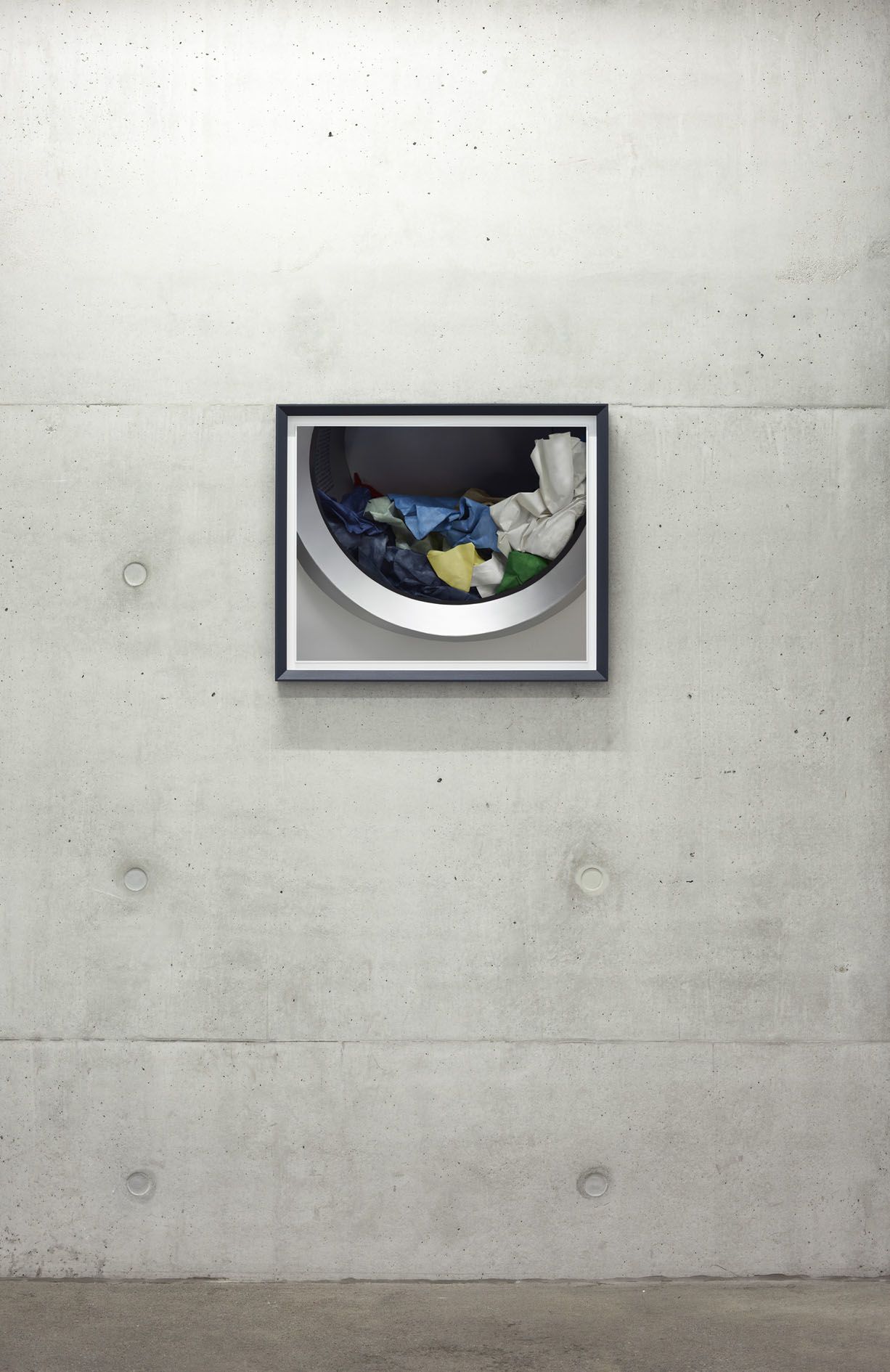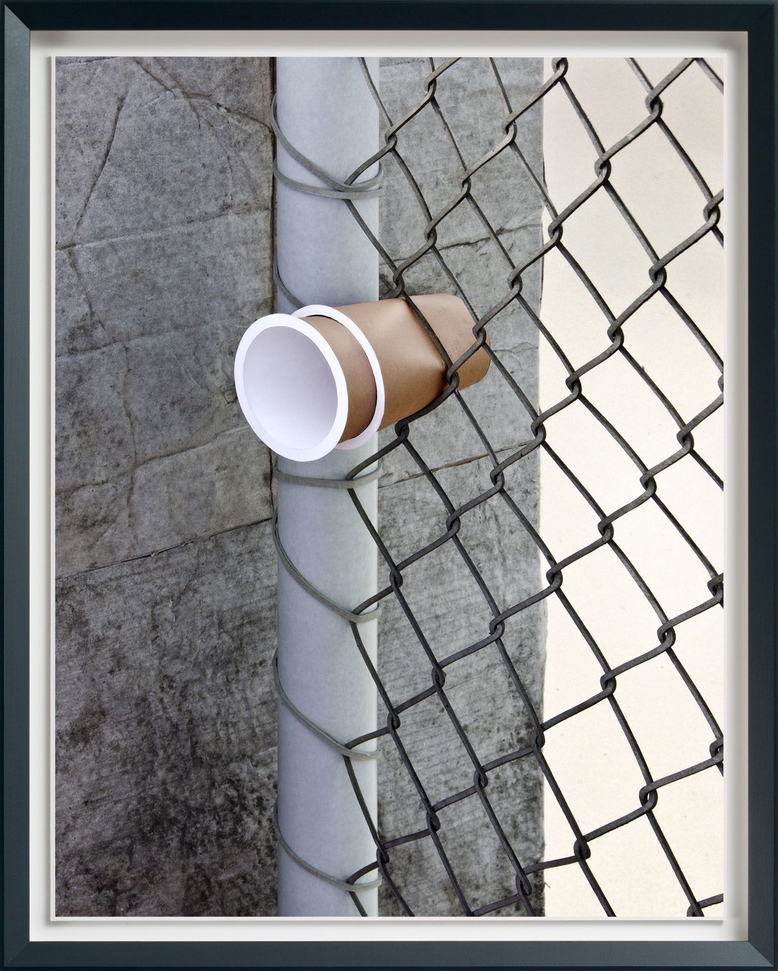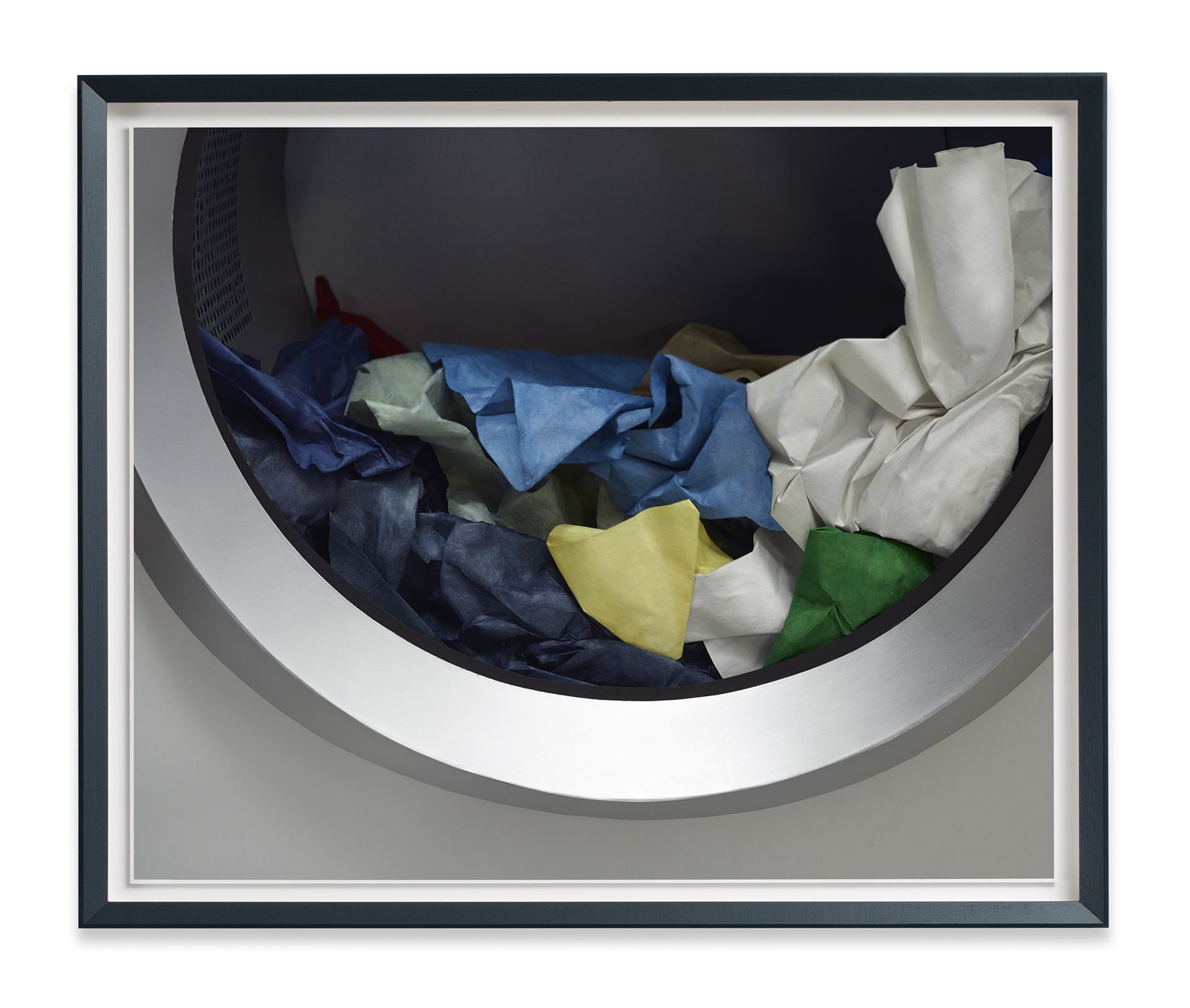 The everyday subject matter is put into sharp relief by the richness of the colours, which Demand achieves by making each print with the labour-intensive method of dye-transfer, a process that involves fixing dyes with gelatine to ordinary paper. Demand chose this process for its saturated colours, spatial depth, intense darkness, as well as the durability of the pigments, all elements that serve to emphasise the formal power of the photographs. Even if the photograph depicts little more than an ephemeral model of a straw and cup lid tossed onto the pavement, the print itself is a delicately crafted object.